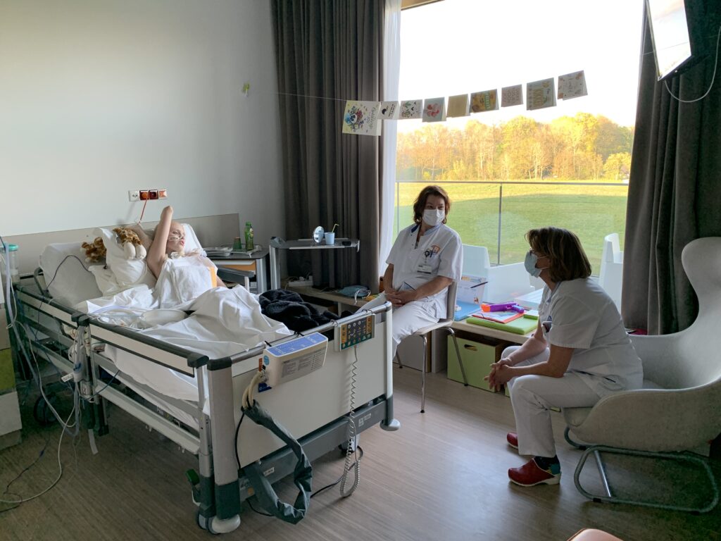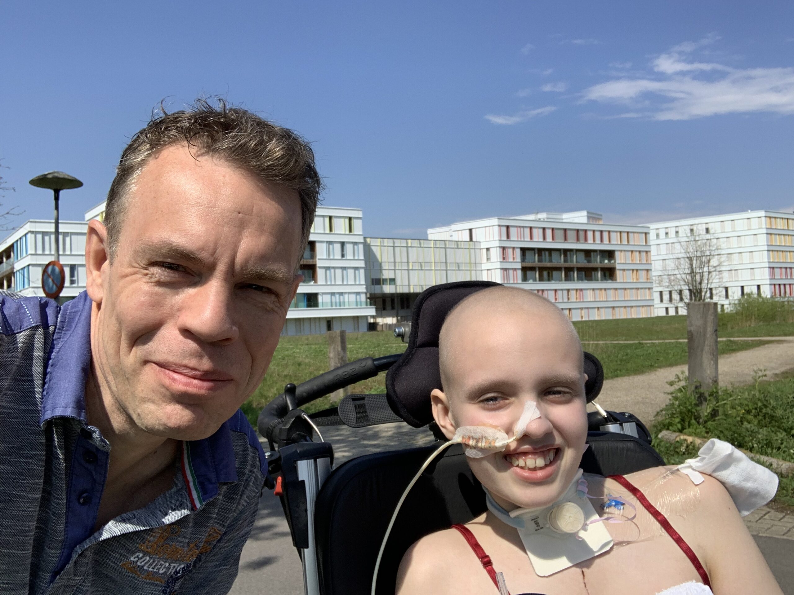 Na een kleine 2 weken radiostilte willen we jullie toch weer even vertellen hoe het met Anne gaat. De laatste update was best moeilijk en de dagen erna waren ook niet altijd even makkelijk. Toch heeft Anne leuke dingen gedaan in afgelopen periode, gaat het de ene keer beter dan de andere keer maar is Anne wel iedere dag wat sterker geworden. Vorige week heeft ze onder een roesje een nieuwe kleinere canule gekregen. De hechtingen zijn er inmiddels uitgehaald en iedere dag proberen we iets meer qua beweging en fysio te doen en ook dat gaat steeds beter. Afgelopen zaterdag voor het eerst zelfs onder de douche geweest en vandaag zelfs beneden in de sportzaal even badminton gespeeld. Vorige week hebben we ook de nieuwe flitsende rolstoel gekregen. De rugleuning was te smal maar deze week een nieuwe gekregen dus dat is heel fijn.