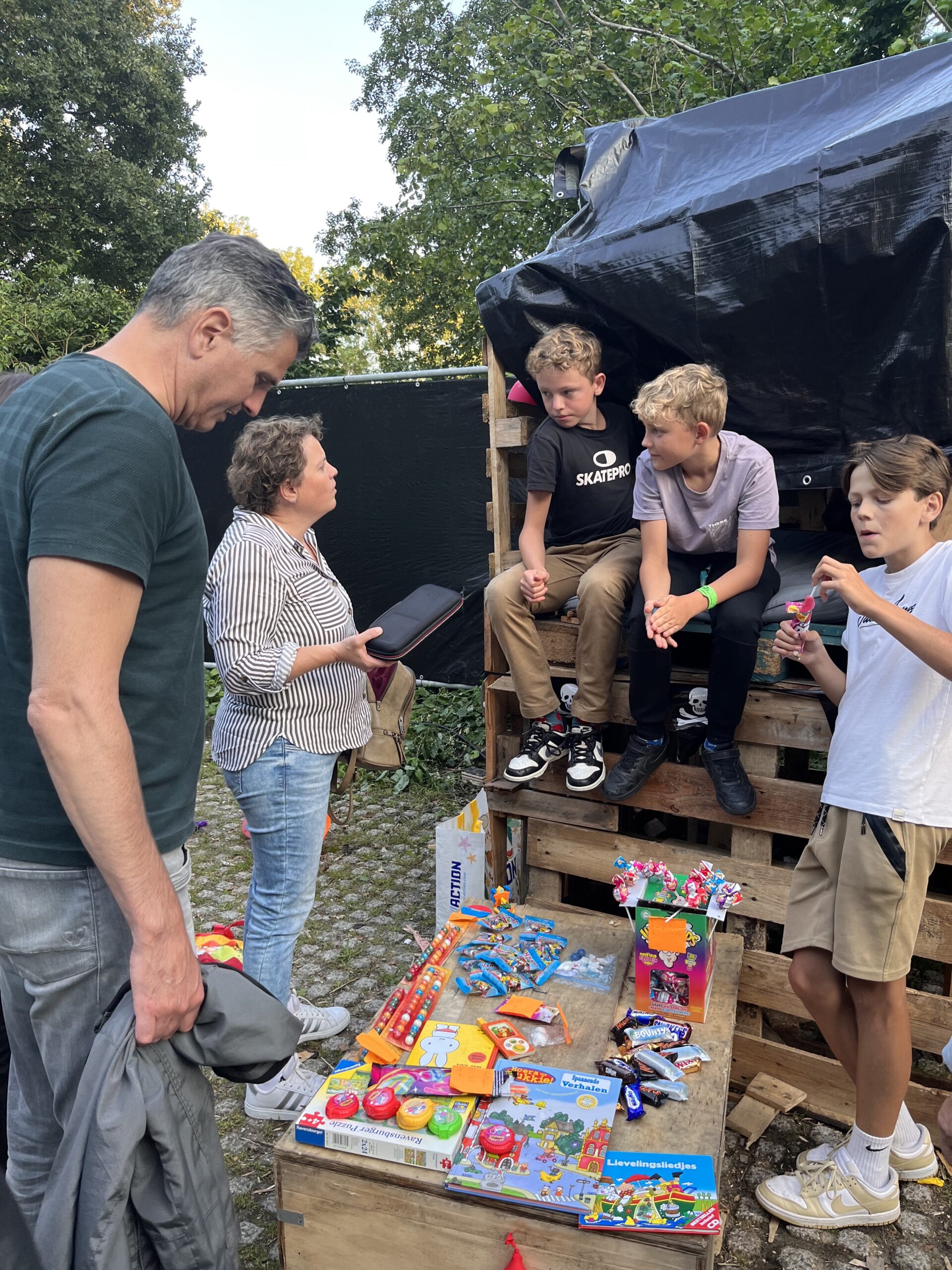 Vanavond zijn we na het eten nog even naar de huttenbouw geweest waar Stan samen met z’n vrienden Bodi en Melle deze hele week hebben gebouwd aan hun eigen hut en daar vanavond ook zullen blijven slapen (of waarschijnlijk vooral wakker zullen blijven).