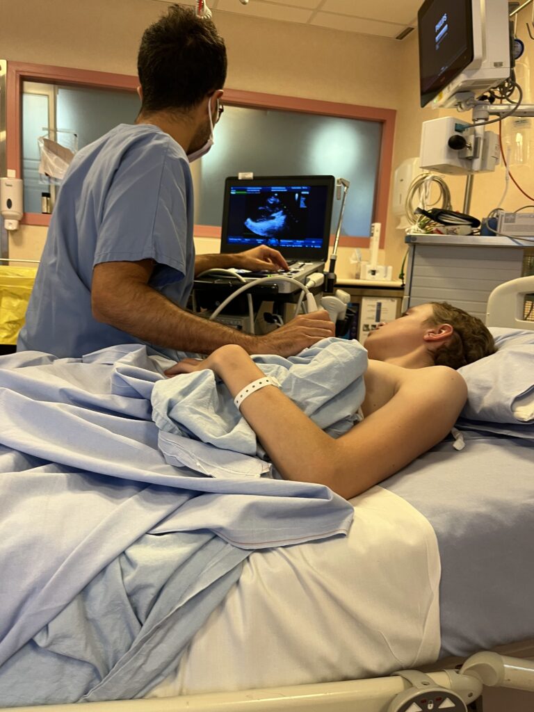 Vanuit de OK werden direct naar de IC gereden. Deze keer kregen we kamer 302 toegewezen. Dokter Alexandrova (professor leukaferese) kwam weer even met haar Bulgaars/Franse accent vertellen wat de bedoeling is en daarna ging men aan de slag. Eerst gingen ze alsnog de hartecho doen. Beetje laat want wat als het niet goed genoeg was maar gelukkig werd de hartfunctie stabiel bevonden en mochten we door met de leukaferese. De machine wordt aangesloten, alle draden voor controleren van hart en adem worden aangesloten en dan gaat het proces beginnen. Het bloed gaat via de katheter naar de machine, daar worden de leukocyten eruit gefilterd en opgeslagen in een zakje, de rest van het bloed gaat via de katheter weer terug het lichaam van Anne in. Anne is moe dus heeft veel geslapen. Na 3 uur en 45 minuten is het klaar en is iedereen tevreden met het resultaat. De man met het bekende rode tasje komt weer binnen, daar gaat het zakje met de bloedcellen in en hij zorgt ervoor dat het zo snel mogelijk de vriezer in gaat voor transport naar Amerika.