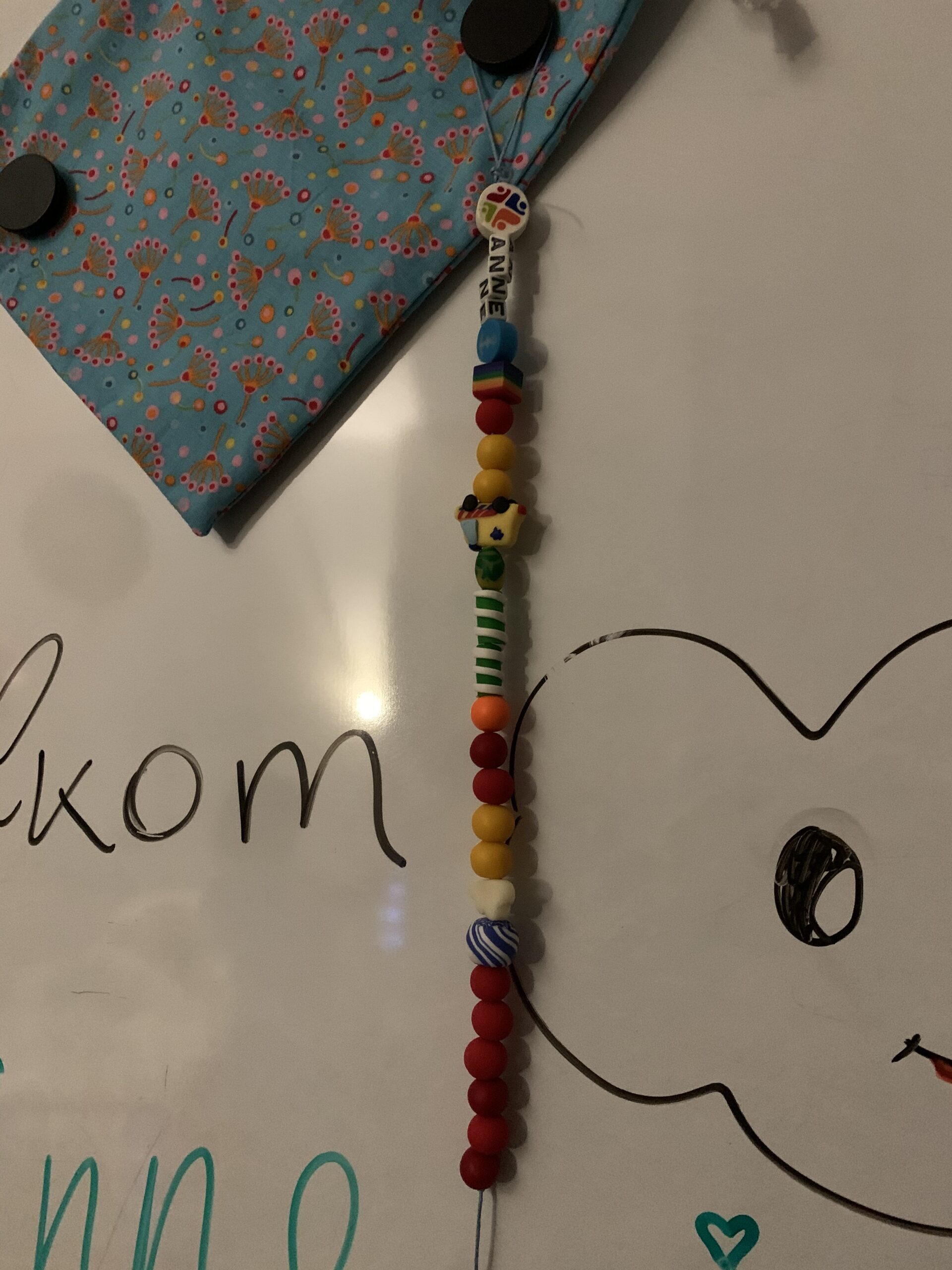 Na de echo kwam pedagogisch medewerker Simone om wat spelletjes te brengen en een begin te maken met de kanjerketting. Anne en Simone zijn niet verder gekomen dan donderdag 3 december want voor die dag alleen al kreeg Anne al 21 kralen!