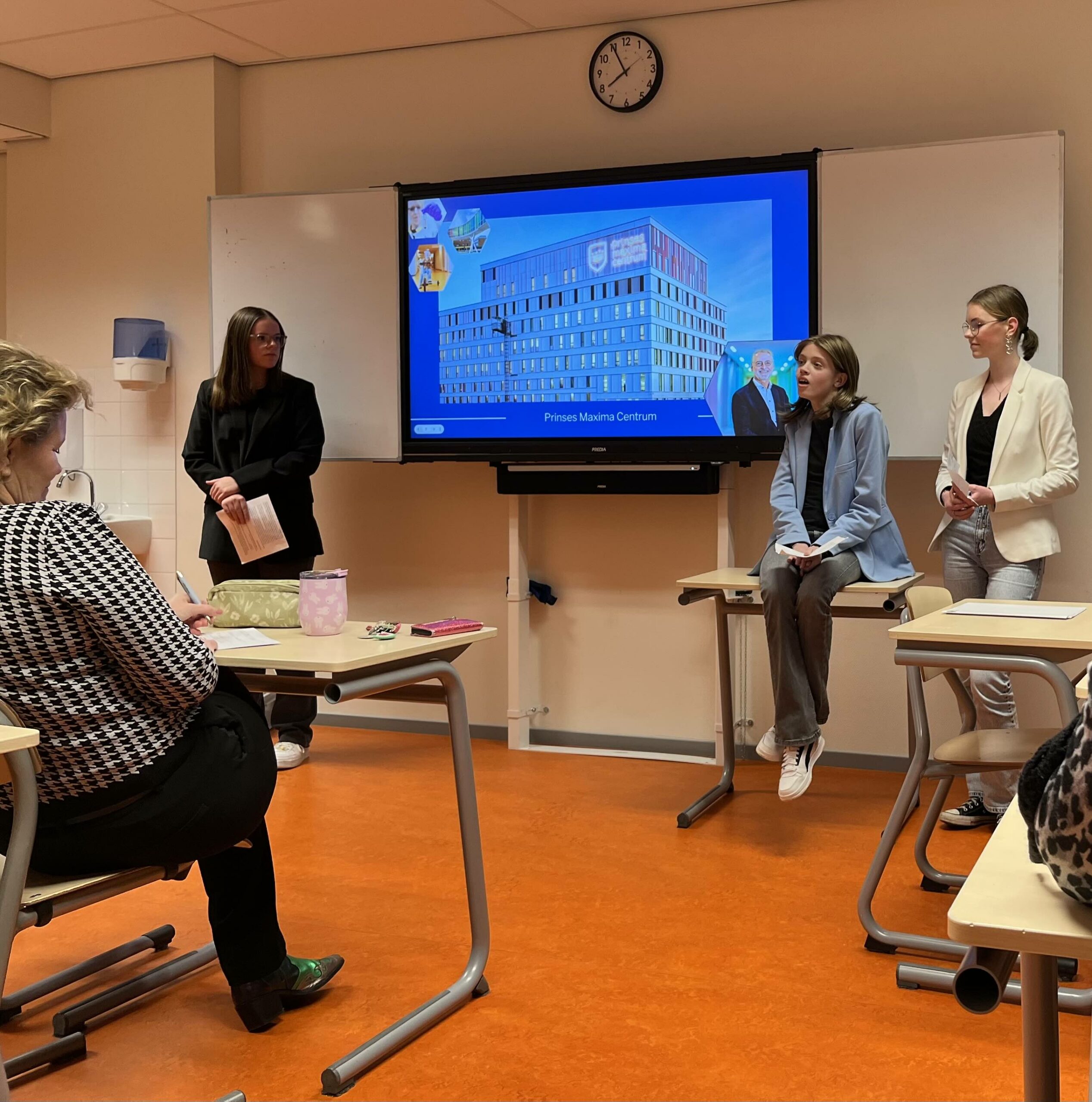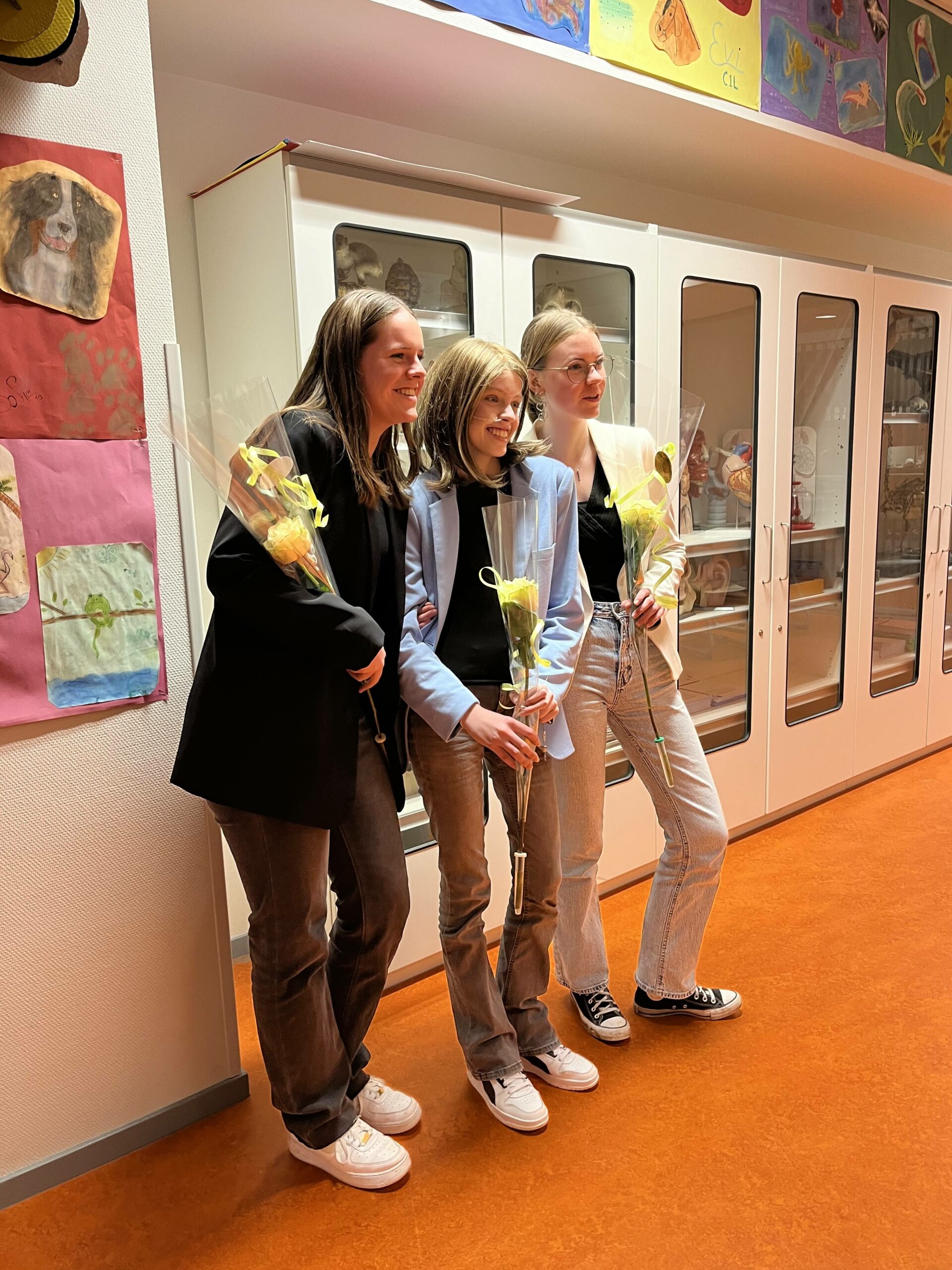 Vanavond om half zeven gaan Anne, Anita en ik naar school. Anne gaat alvast naar het lokaal om zich samen met de meiden voor te bereiden en wij krijgen in de aula met alle aanwezige ouders nog wat informatie of de laatste fase van dit examenjaar. Wij zitten er toch een beetje anders dan anders bij. Voortdurend schieten de gedachten door je hoofd wat Anne wel of niet kan of zal gaan doen/halen. Maar goed, we horen het aan en gaan daarna naar het lokaal waar het groepje van Anne en nog 3 andere groepjes hun PWS zullen gaan presenteren. Anne en de meiden mogen als 3e gaan presenteren voor de leerkracht en klas vol jongeren en ouderen. Superspannend natuurlijk maar ze deden het fantastisch en eerlijk is eerlijk, Anne deed het ook nog een het beste van allemaal (sorry, ik ben uiteraard niet objectief maar ik meen het wel). Niet normaal zoals ze daar vooraan op de tafel zat (ze mocht zitten i.v.m. haar ademhaling en benauwdheid); Stralend, duidelijk en energiek. Hoe ze de 1e vraag vanuit het publiek ook beantwoorde. Het was een vraag waar ze al een beetje bang voor was “Waarom hebben jullie dit onderwerp gekozen?”. Omdat de andere meiden niet reageerden pakte Anne het voortouw en gaf een duidelijk antwoord dat eindigde met “en ik heb er ook wel een beetje ervaring mee”. De rillingen lopen nu nog over mijn rug maar Anita en ik zijn vooral megatrots op hoe ze dit heeft gedaan. Ook blij (vooral voor Anne) dat het ook zo goed is gegaan. Weer een mijlpaal en voor Anne heel fijn dat dit hoofdstuk is afgesloten. De moeder van Sasja had voor alledrie nog een roos meegenomen. Erg leuk! Nog even snel een foto en daarna snel naar huis en genieten dat dit achter de rug is.