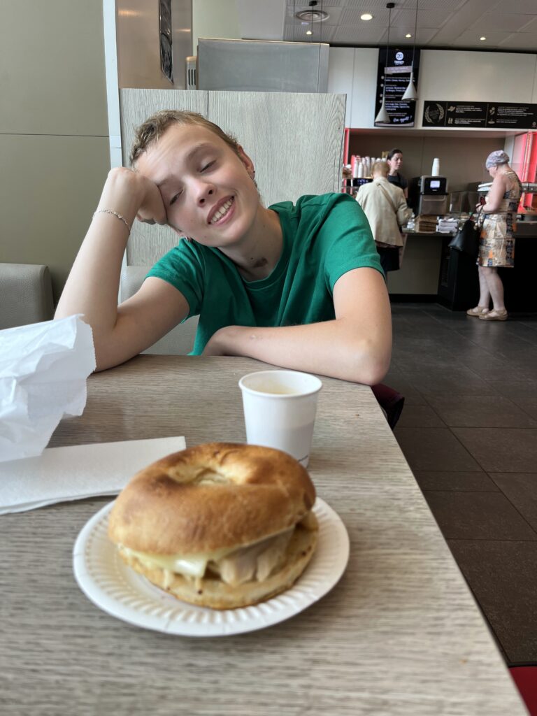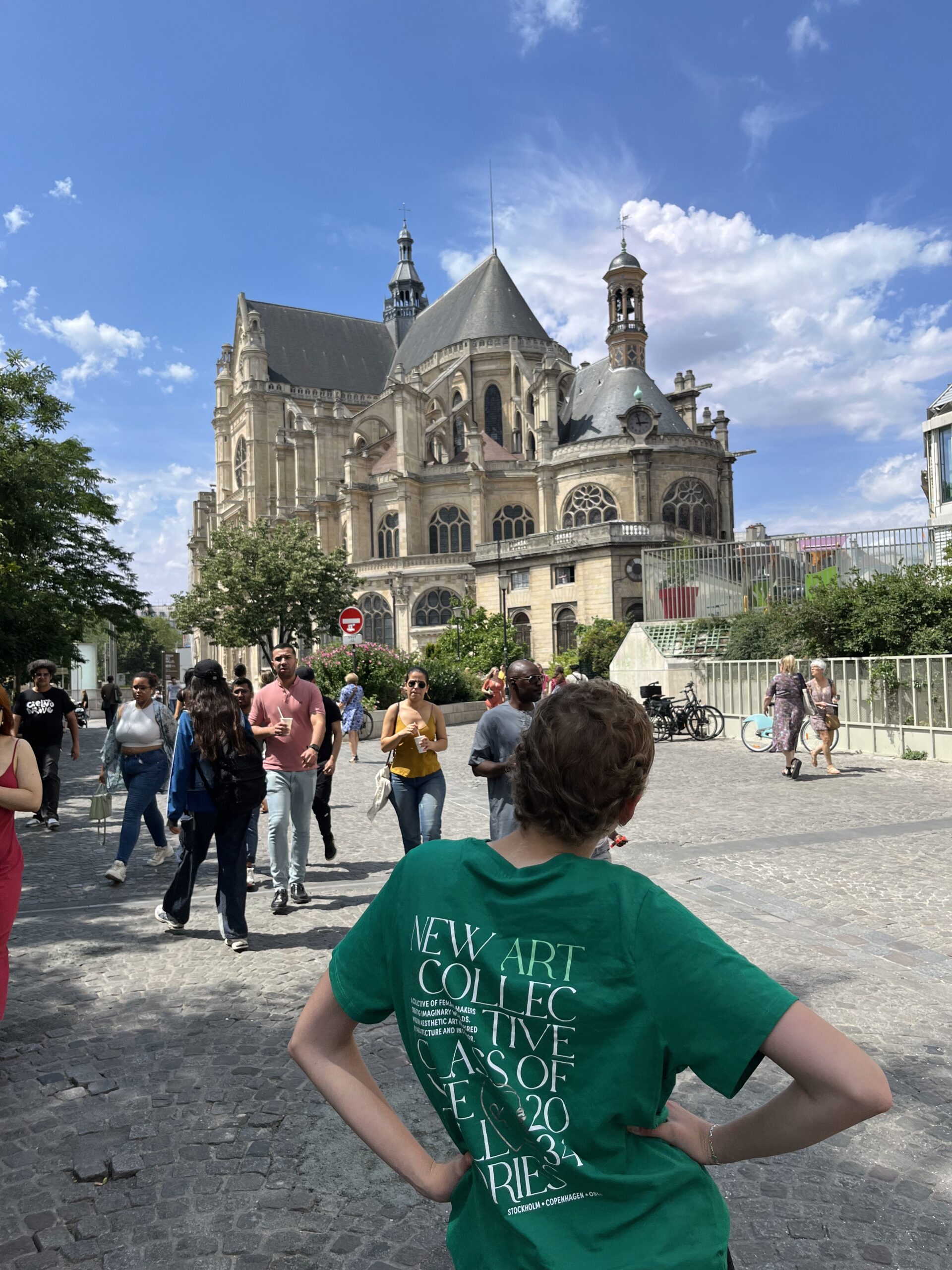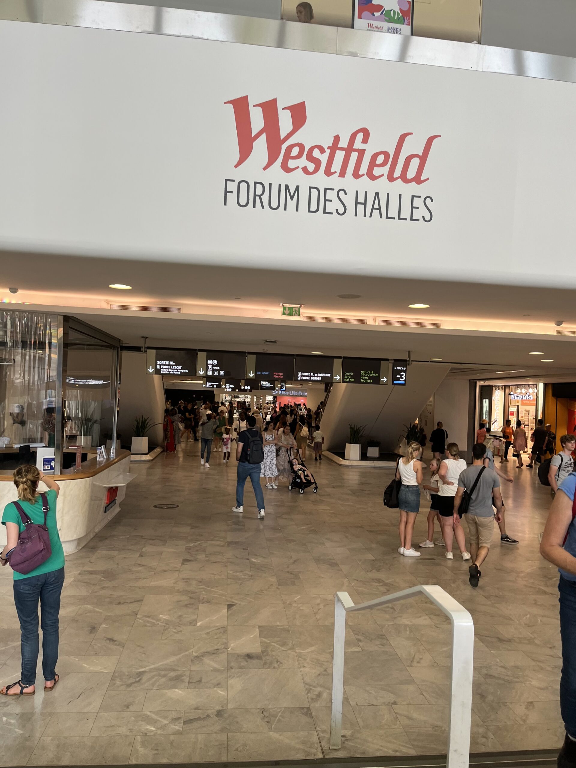 Via assistent Sassia wordt geregeld dat de taxi ons al om 12 uur komt ophalen. Bij station Gare du Nord bergen we eerst onze koffers op in een kluisje. Was nog wel een stukje lopen en we komen er achter dat Anne echt dood en doodmoe is. Ze voelt zich ook een beetje vreemd dus we besluiten tegenover het station in cafe Du Nord even lekker uitgebreid te gaan lunchen. we doen het rustig aan en genieten lang van onze lunch. Anne begint zich weer iets beter te voelen en besluiten toch nog even ergens naar toe te gaan aangezien onze trein pas om 17:25 uur zal vertrekken (we hebben nog wel gevraagd of we een trein eerder mochten nemen maar die zat al vol). We nemen metro 4 naar de Westfield Mall, daar hebben ze vast airco. Daar aangekomen vliegen er heel veel oude en nieuwe vliegtuigen en straaljagers laag over. Waarom weten we eerlijk gezegd niet maar was bijna een soort van eng. De Westfield mall blijkt megagroot te zijn en lekker koel dus daar hebben we anderhalf uur geshopt en heeft Anne nog het een en ander kunnen scoren ook. We lopen daarna nog even de mega grote kathedraal in die daar net naast staat (Les Halles) en daarna pakken we de metro terug naar het station.