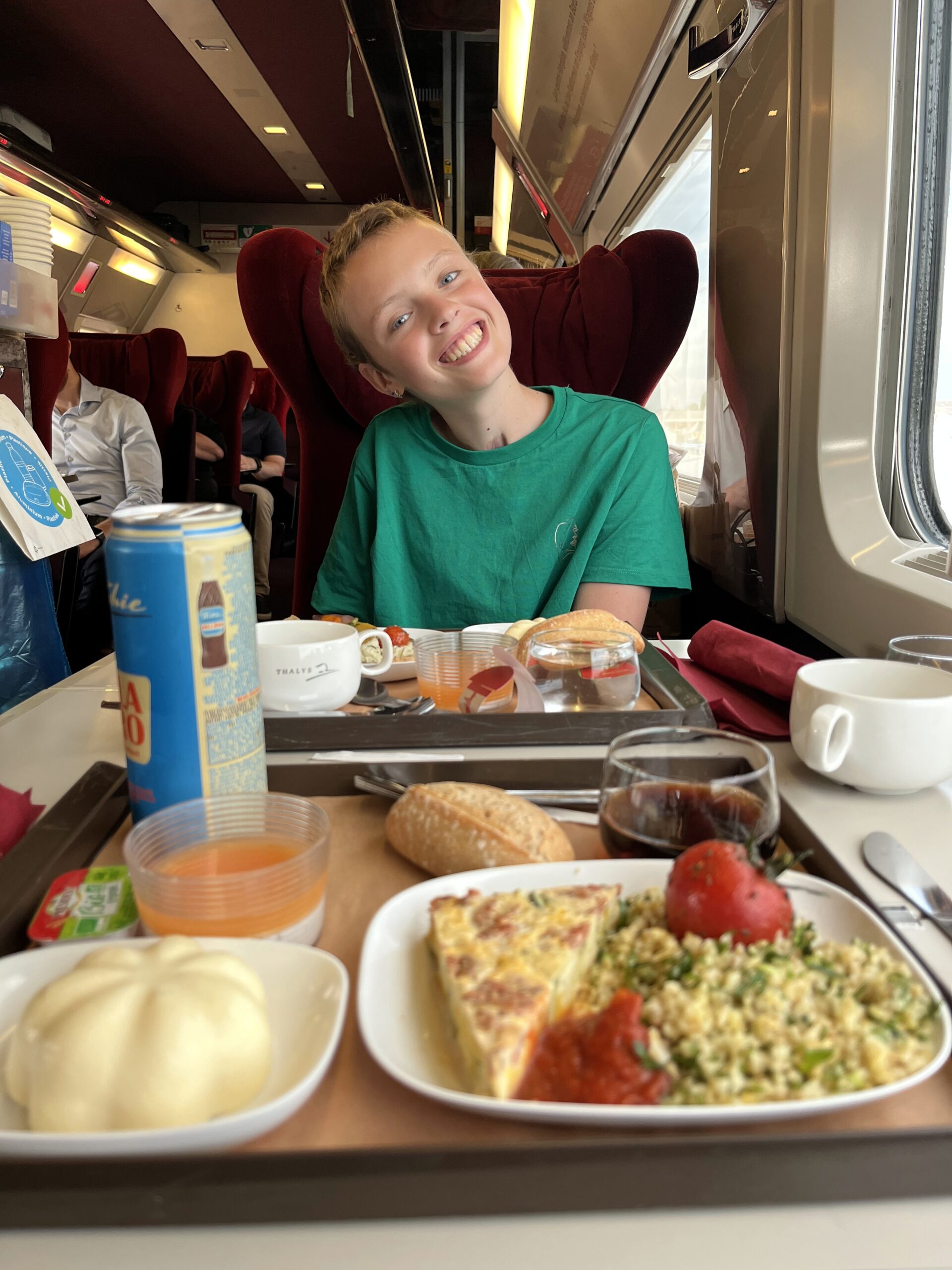 We doen het allemaal perfect qua planning want na het ophalen van de koffers mogen we bijna direct de trein in. We blijken het voorste treinstel te moeten hebben en dat is ver lopen maar dan hebben we ook wel wat. Eerste klas premium en dat is te merken. Heerlijke stoelen, superaardige bediening, lekkere hapjes en drankjes en ook nog een diner. Kortom een heerlijk relaxte reis terug naar huis. We hebben een ticket naar Amsterdam CS maar we stappen uit in Schiphol en pakken daar de bus naar huis. We zijn 2 minuten voor de bus vertrekt bij de halte dus wederom perfecte timing en om 21:30 uur komen we aan op station Alphen aan den Rijn. Daar staan Anita en Stan ons op te wachten (lief!) en lopen we samen naar huis.