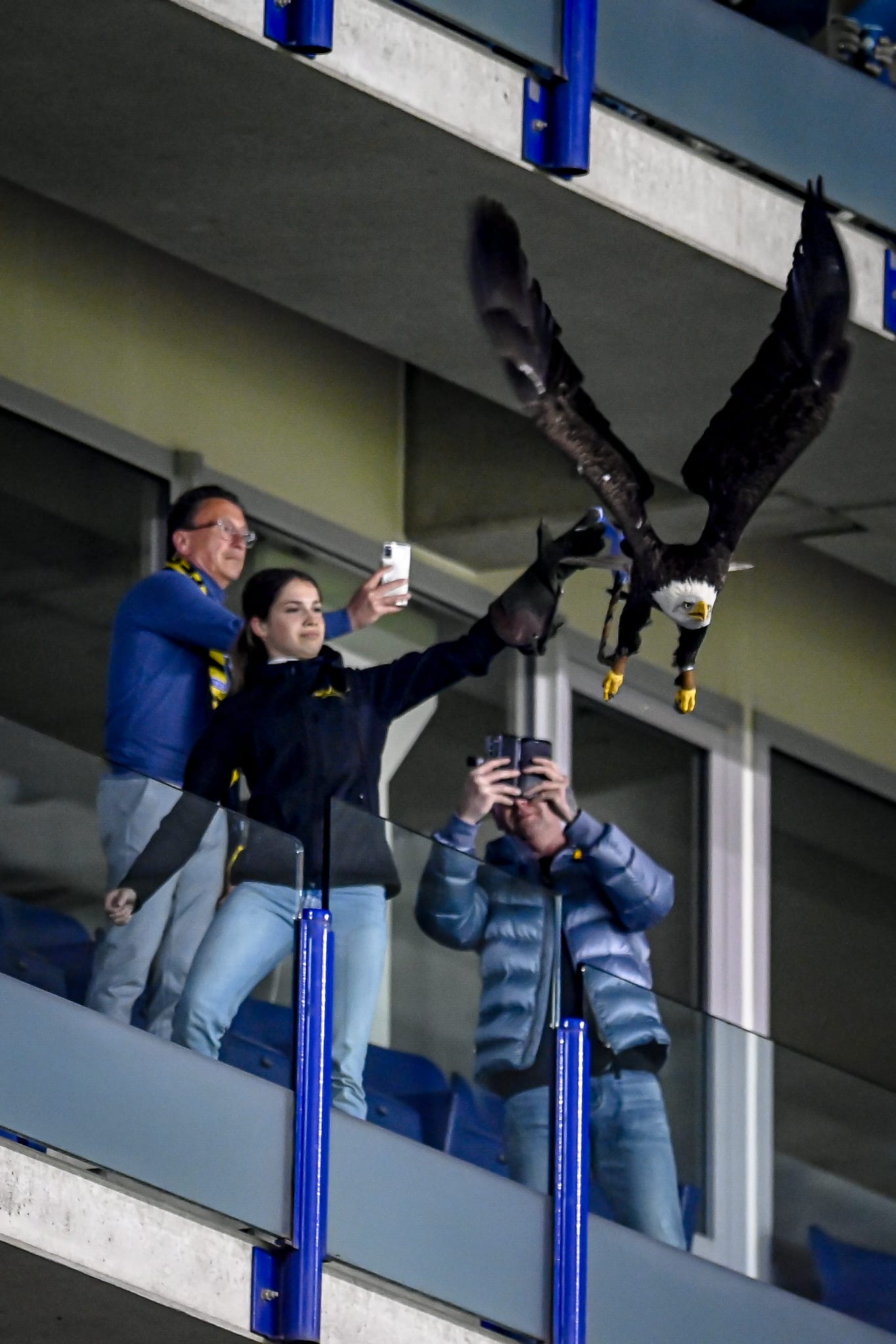 Zaterdag ontvang ik van Gerard mooie foto’s van Hertog, de zeearend die door het Gelredome stadion vliegt voorafgaand aan de voetbalwedstrijd van Vitesse. Ilse wilde graag iets doen en heeft bedacht dat de arend deze avond met een lila lint (favoriete kleur van Anne) door het stadion zal vliegen en voor deze ene keer mocht de arend vanaf de hand van Ilse wegvliegen. Een prachtig gebaar als eerbetoon aan Anne waar duizenden mensen getuigen van mochten zijn.