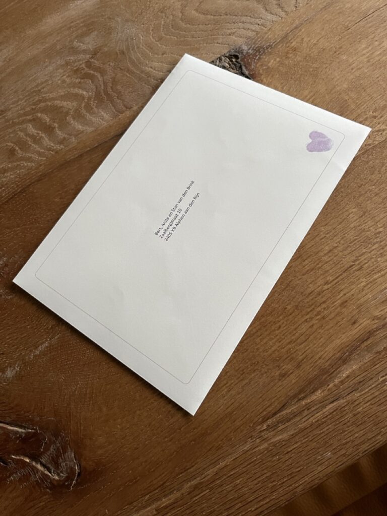 De tekst op de kaart hebben we samen met Esther eigenlijk ook best wel snel gedaan. We wilden niet een gedicht. Die zijn vaak wel mooi maar voelen ook vaak net niet echt. We wilden Anne in een paar woorden duiden en bij Anne konden we alleen maar hele mooie positieve woorden bedenken. Niet teveel want dan verliest het weer z’n kracht. Al snel stonden de woorden Sprankelend, Bijzonder, Sterk en Lief op papier. Nog even getwijfeld of het Stralend of Sprankelend moest worden maar Sprankelend zegt eigenlijk nog meer dan Stralend dus daarvoor gekozen. Michou heeft een aantal versies gemaakt qua design die we de volgende dag konden bekijken. Esther hield de kaarten even tegen zich aan voordat ze deze aan ons liet zien. “Hou je vast Anita en Bert, je gaat nu echt de kaart met Anne voorop zien en ik kan je vertellen dat dit heel veel impact gaat hebben. Dat had het al bij ons op kantoor dus bereid je er even op voor want dit gaat ook bij jullie echt binnenkomen”. Wat fijn dat ze dat zo deed want inderdaad, bij het zien van de kaart met de sprankelende Anne op de voorkant waren we even stil en kwamen de tranen vanzelf bovendrijven. Maar het was ook mooi. De envelop prachtig gemaakt door Michou en Anita en ik waren er binnen een paar seconden over uit welke van de 4 designs we wilden gebruiken voor de kaart. Daarna hebben we nog een half uurtje met Michou en Esther gewerkt aan de details. De kleur van de tekst aangepast, de uitlijning van de tekst wat aangepast, Stan stond eerst onder ons genoemd maar we wilden hem op dezelfde regel hebben (allemaal even belangrijk), het vlindertje tussen geboortedatum en overlijdensdatum toegevoegd (prachtig) en de tekst “Wat zullen we je missen, maar je blijft voor altijd in ons hart.” bedacht en definitief gemaakt. We hadden eerst de tekst “We missen je nu al.” maar na een nachtje slapen had ik daar helemaal geen goed gevoel bij. Het klopte wel dat we Anne nu al missen maar voor ons ontbrak er urgentie, kracht, ik weet het niet precies maar het klopte op de een of andere manier niet. De tekst die nu op de kaart staat deed en doet het wel voor ons en dat komt vooral door het woordje ‘Wat’ waarin we voelen en willen uitdrukken hoe enorm we Anne zullen gaan missen en ja natuurlijk missen we haar nu al maar dat begrijpt iedereen vast wel. De tekst “Hakuna Matata!” hadden Anita en ik vanaf het begin al bedacht en wilden we absoluut op de kaart hebben. Deze twee woorden hebben een hele persoonlijke lading voor Anne en voor ons en daarmee willen we een krachtige boodschap aan Anne geven en met jullie allemaal als getuigen als anker gebruiken voor ons gezin. Het proces van het ontwerp van de kaart ging heel mooi en we zijn erg blij met het resultaat. Het is niet een kaart die je als ouder in de fotokist wil hebben liggen maar als er dan toch zo’n kaart moet zijn dan absoluut deze. Wat ons betreft kon het niet mooier. Theo gaat de kaarten en de enveloppen drukken en dat is letterlijk en figuurlijk een kadootje voor ons. Woensdagochtend leveren we de definitieve adressenlijst en in de middag komt Theo ze al brengen en helpt mee met het plakken van de postzegels. Heel fijn!