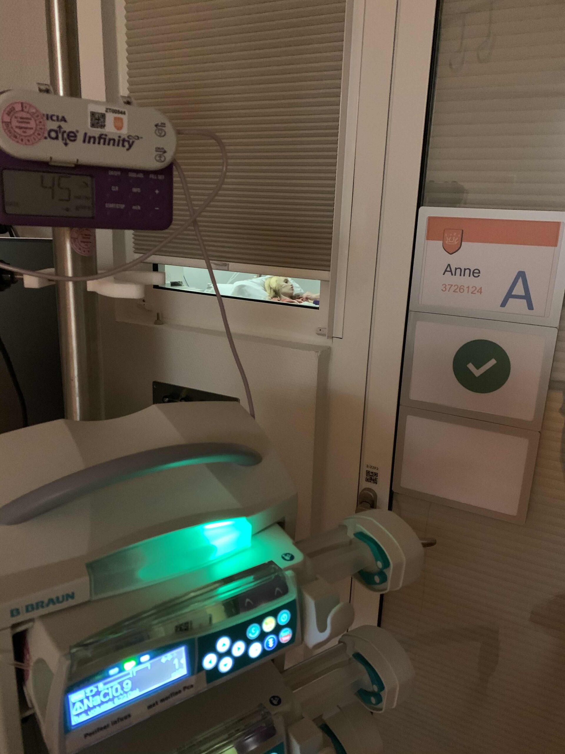 Anne had een onrustige nacht met koort en veel pijn in de buik. Daarom extra morfine gekregen om in slaap te komen. Al met al toch nog wel wat uurtjes slaap gepakt.