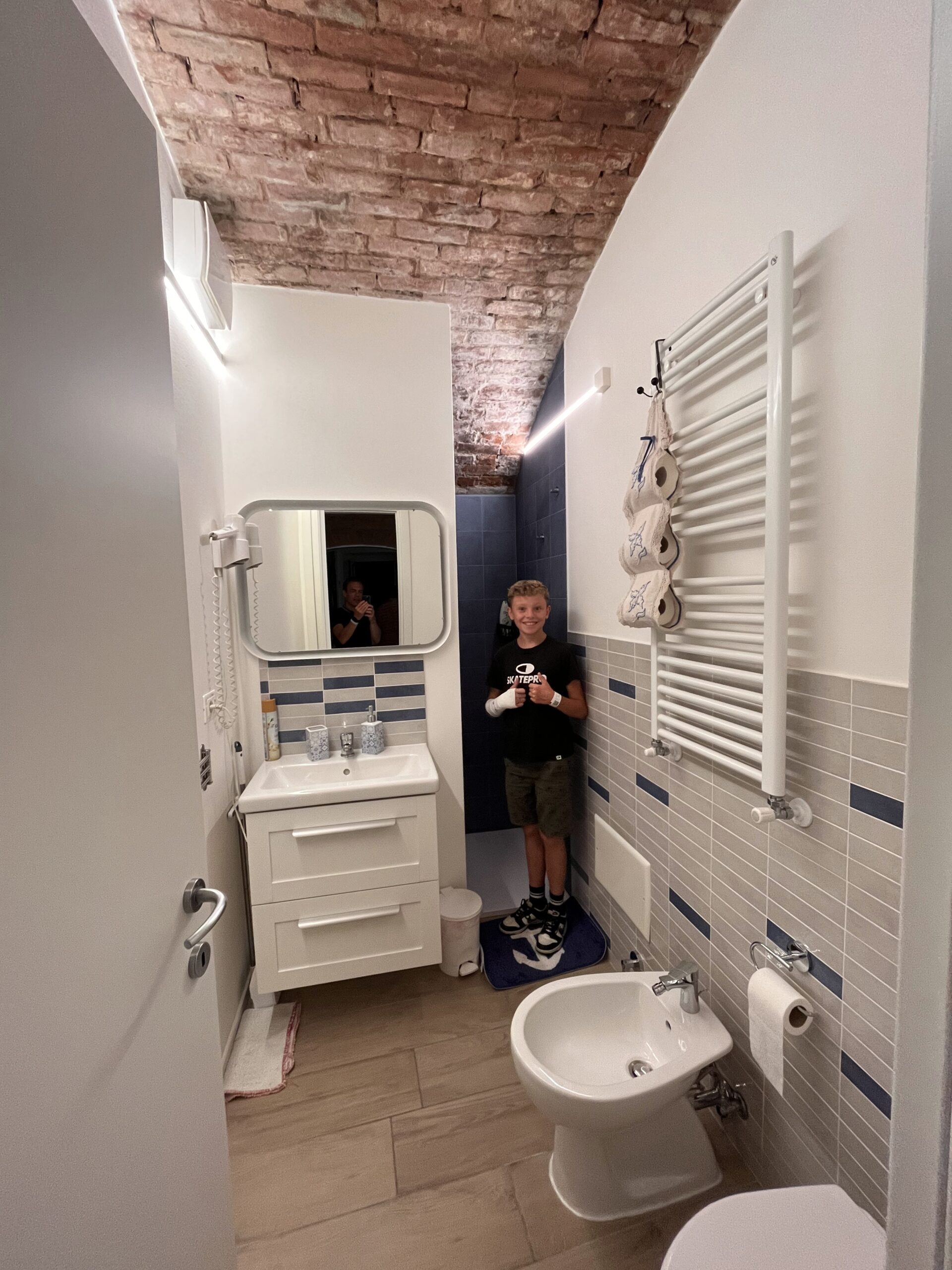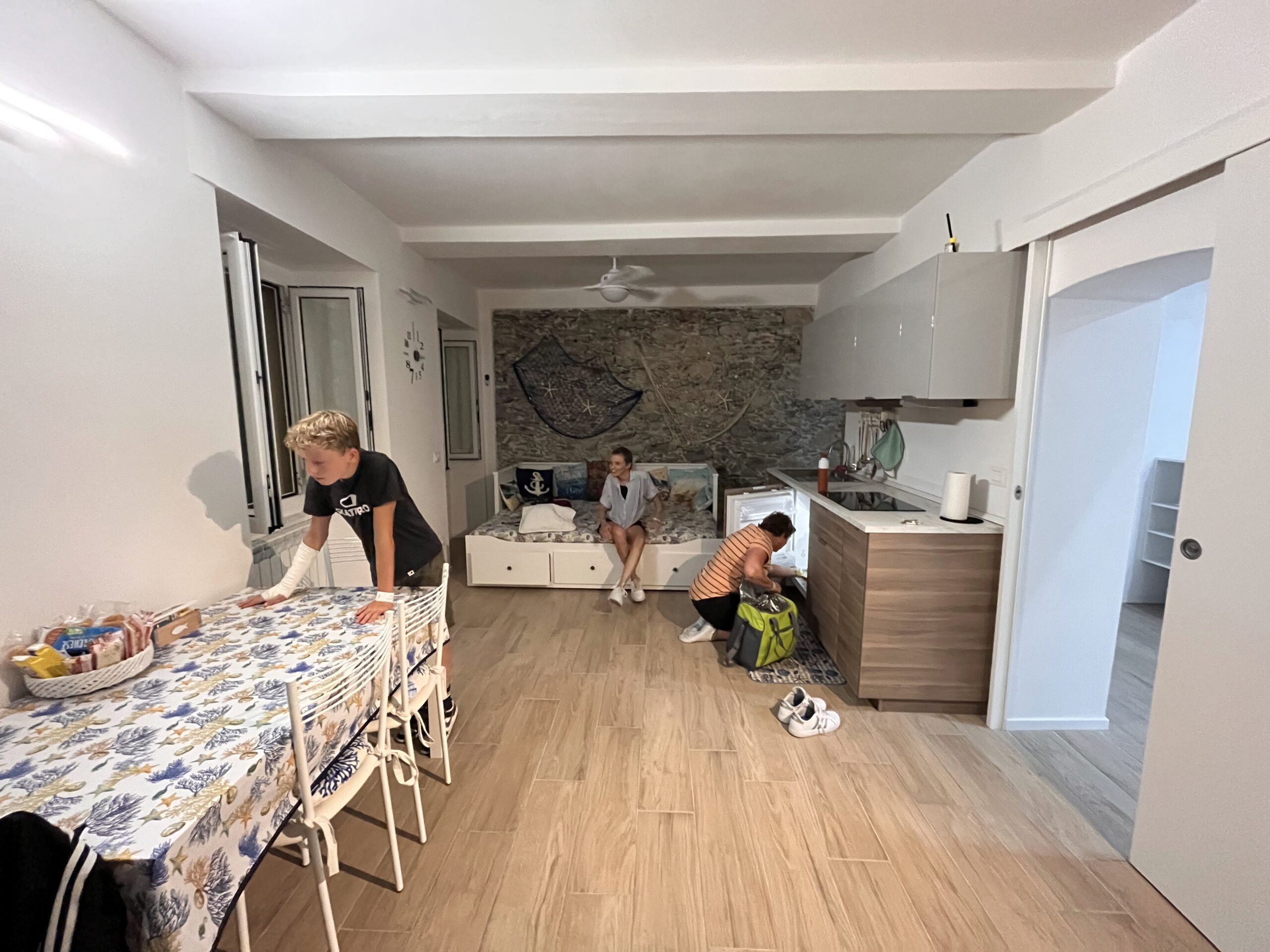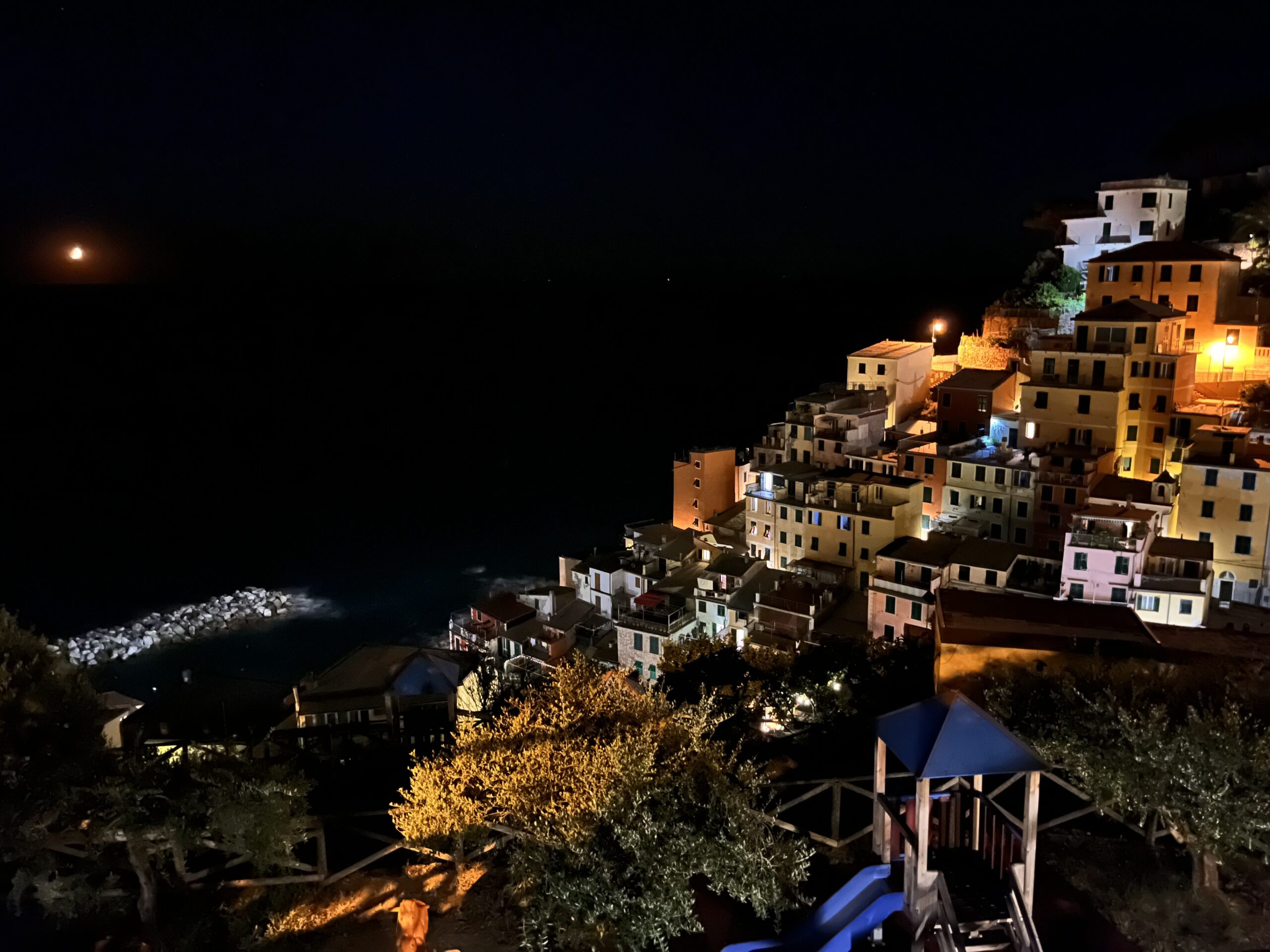 Arjan, de broer van Anita was superlief. Hij organiseerde eerder dan initieel gepland een werkoverleg voor woensdag in Milaan. Op het vliegveld daar kon hij nog net de laatste (sorry, er was ook nog een kleine) auto huren waarmee hij naar onze camping kwam. De mooiste en grootste auto waar we ooit in hebben gereden en waarschijnlijk ooit zullen rijden. Een dikke BMW met alles erop en eraan. We gooien de auto vol met onze koffers en brengen Arjan naar zijn werk in Manarola en vandaar vertrekken we toch nog richting Cinque Terre waar we rond 22:45 uur aankomen.