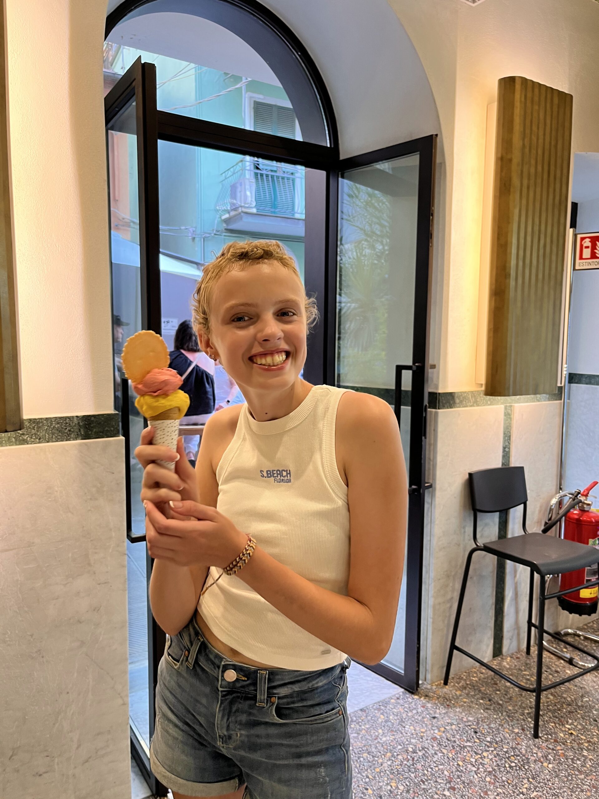 Op maandag 24 juli hebben we overdag de auto grotendeels al ingepakt zodat we de volgende dag voor 10 uur kunnen vertrekken richting Riomaggiore. Onze mooie tijd aan het Gardameer wilde we graag waardig afsluiten en daarom zijn we ’s avonds naar Lazise geweest. Een prachtig stadje op zo’n 30 minuten rijd. We hebben heerlijk Italiaans gegeten en als toetje een ijsje gekocht bij bij de beste gelateria aan het Gardameer. Een supergezellige avond en rond 21:30 uur waren we weer thuis. We doen nog een gezellig spelletje samen als het rond 22:40 ineens heel hard begint te hagelen. Een immens lawaai en door de glazen deur zien we dat het echt hele grote hagelstenen zijn. Na een paar minuten is het over. Anne pakt een hagelsteen bij de deur om daar een foto van te laten maken. We zien er op dat moment de lol nog wel van in totdat we veel mensen buiten zien lopen en ons beginnen te realiseren dat dit een heftige hagelstorm is geweest. Als we naar buiten lopen zien we dat alle auto’s zwaar beschadigd zijn. Ook onze auto ziet er niet uit. De vooruit is volledig aan diggelen, de rechter zijruit ligt er helemaal uit en de hoeveelheid (grote) deuken zijn ontelbaar. We staan te kijken naar een totaal onbruik geworden auto. We hebben ineens een probleem.