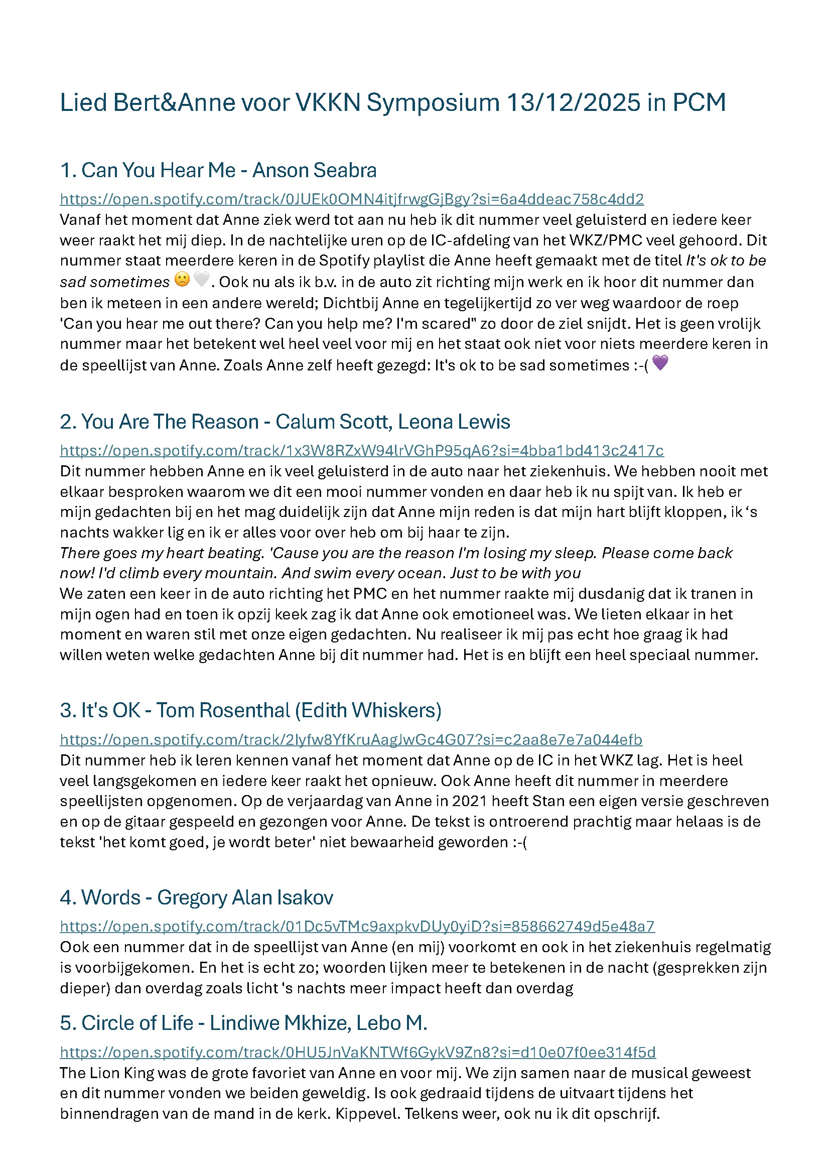 Welke muziek kies je dan als ze vragen met welk nummer je een speciale binding hebt en past bij mijn/ons verhaal? Hieronder de verzameling waaruit ik uiteindelijk de keuze hebt gemaakt…
