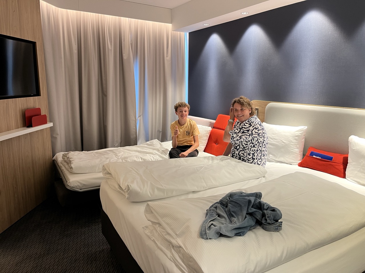 Vandaag gaan we naar onze 2e en laatste tussenstop. We gaan naar het hotel in Heilbronn waar we ook op de heenreis een tussenstop hebben gemaakt. We hebben daar de allerbeste biefstuk gegeten en dat wil Stan (maar ik ook en inmiddels Anita ook) graag nog een keer meemaken om de vakantie in stijl af te sluiten. Qua afstand is het ook allemaal mooi verdeeld. Gisteren 408 kilometer, vandaag 553 km naar Heilbronn en dan morgen nog 563 kilometer naar huis. We beginnen met een heerlijk ontbijt in de mooiste ontbijtkamer die we tot op heden hebben gehad (je moet wel van de stijl houden, zoals Stan aangaf gaan wij ons huis niet zo inrichten maar toch). Om 10:00 uur vertrekken we met onze auto uit Milaan. Milaan in ging supergoed maar Milaan uit zonder per ongeluk in milieuzone area C te rijden was nog best een uitdaging. Het ging uiteindelijk eigenlijk best prima maar was toch meer een uitdaging dan de binnenkomst. We rijden de eerste helft veel door bergen en dat schiet niet echt op. De omgeving is echter wel prachtig. We dachten voor de vakantie dat we niet door Zwitserland zouden rijden (hadden al vignet voor Oostenrijk) maar dat is echt teveel omrijden dus bij de grens kopen we noodgedwongen een vignet voor 44 euro (voelt toch een beetje belachelijk, leuk dat deze maandenlang geldig is maar wij hoeven maar een paar uurtjes in Zwitserland te rijden. Afijn, het is niet anders). Er zijn vandaag veel ongelukken op de weg waardoor we genoodzaakt worden af en toe door dorpjes te rijden. In het begin leuk maar op een gegeven moment ben je daar ook wel beetje klaar mee. Onderweg pauzeren we even bij een tankstation, kopen daar lekkere broodjes en wat beleg en eten dat buiten op. De parkeerplaats blijkt een tussenstop te zijn van dure sportauto’s (vooral porsches) te zijn dus dat vond Stan wel mooi. We hebben onze auto brutaal tussen de porsches geparkeerd en ik vond dat niet misstaan (Stan was het daar niet helemaal mee eens). We hebben het restaurant voor vanavond 19:30 uur gereserveerd maar we hebben zoveel file dat we onderweg bellen dat het wat later gaat worden. Tijdens de reis heb ik veel gelegenheid om mijn gedachten de vrije loop te laten. Stan zit op de achterbank te luisteren naar muziek of filmpjes te kijken en Anita doezelt wat of zit op haar telefoon waardoor het stil is in de auto. Dat vind ik eigenlijk wel fijn maar zorgt er ook voor dat ik veel aan Anne denk en mijn ogen regelmatig vol met tranen zitten. Wat zou het toch fijn zijn geweest als Anne nu naast mij in de stoel had gezeten, deze vakantie met ons had kunnen meemaken. Ze had niets hoeven zeggen, er alleen maar zijn. Dat probeer ik me dan zoals vandaag in te beelden, soms lukt dat maar ook vaak niet en dan knijpen alle spieren samen en doet het letterlijk pijn als je je opnieuw realiseert dat Anne er niet is en ook nooit meer naast je in de stoel zal zitten. Soms wordt de stilte mij teveel en dan zet ik online radio 1 op om te luisteren naar de Olympische Spelen (werkt goed) of zet ik muziek op (vind ik fijn maar werkt minder goed). Zo rijden we vandaag zo’n 580 kilometer. Ondanks alle files valt het nog mee en komen we om 19:00 uur aan bij ons hotel. We frissen ons wat op en gaan dan naar het restaurant om deze vakantie in stijl af te sluiten. Stan denkt al de hele vakantie aan de lekkere biefstuk die ze hier serveren (ik stiekem ook) dus het risico dat het zou tegenvallen was best wel aanwezig maar het was opnieuw heerlijk (Anita vond het wel gaan). Het was een gezellige en fijne afsluiting van deze vakantie. We lopen nog even door Heilbronn (het is gezellig druk) en gaan dan naar ons hotel voor onze laatste overnachting in een vreemd bed. We kijken er eerlijk gezegd ook best wel naar uit om weer thuis te zijn en in ons eigen bed te kunnen slapen maar dat is voor morgen.