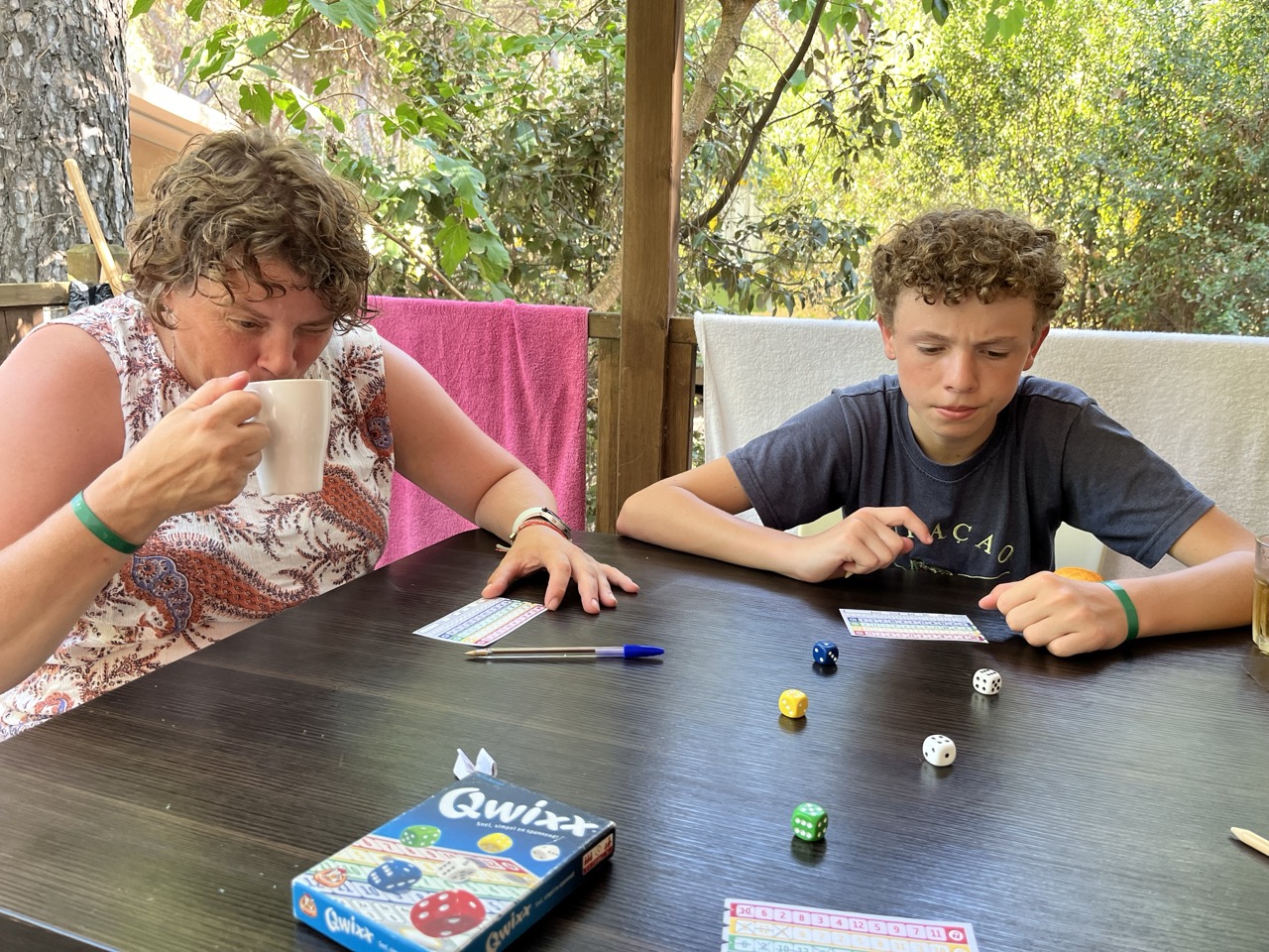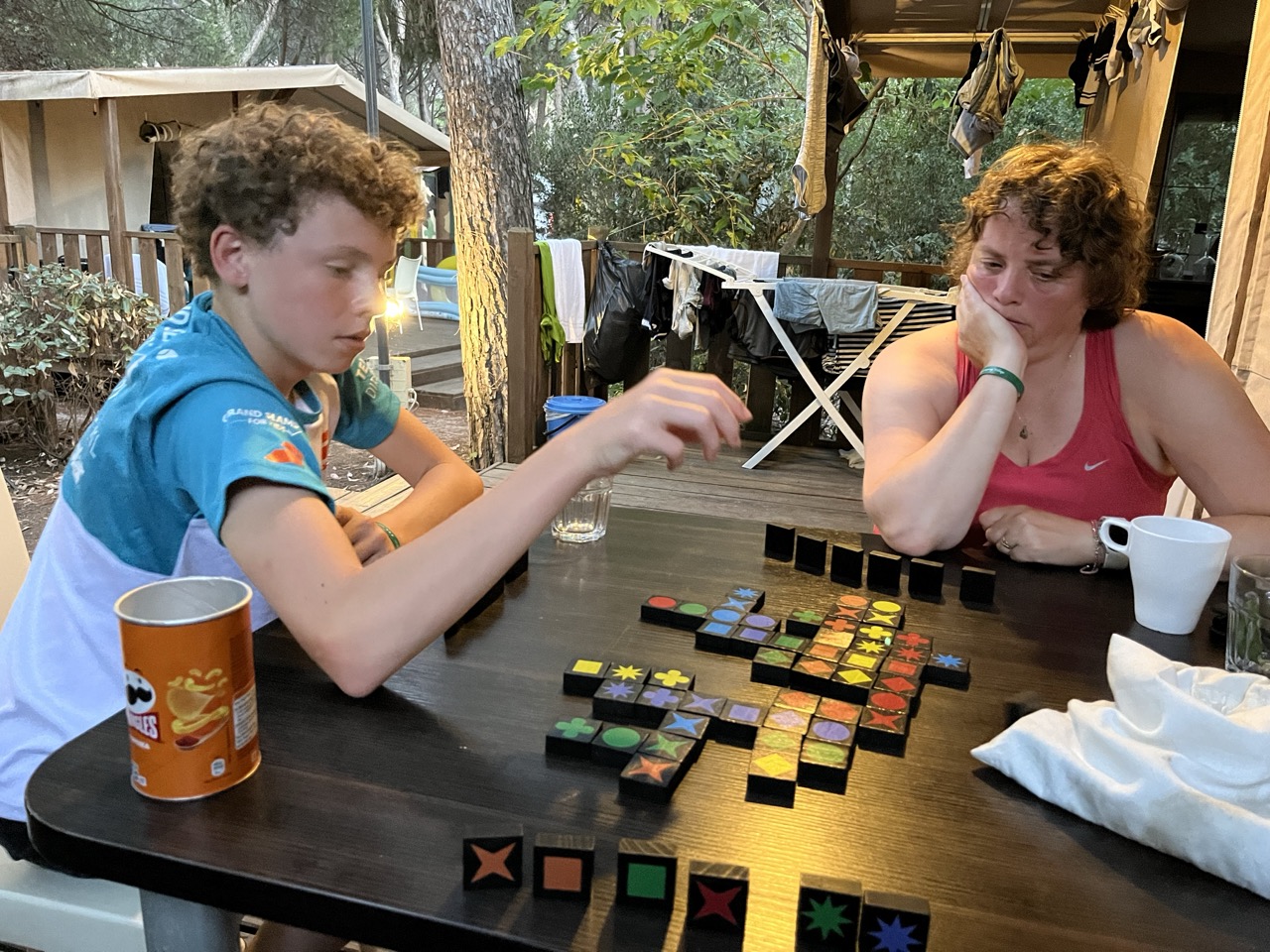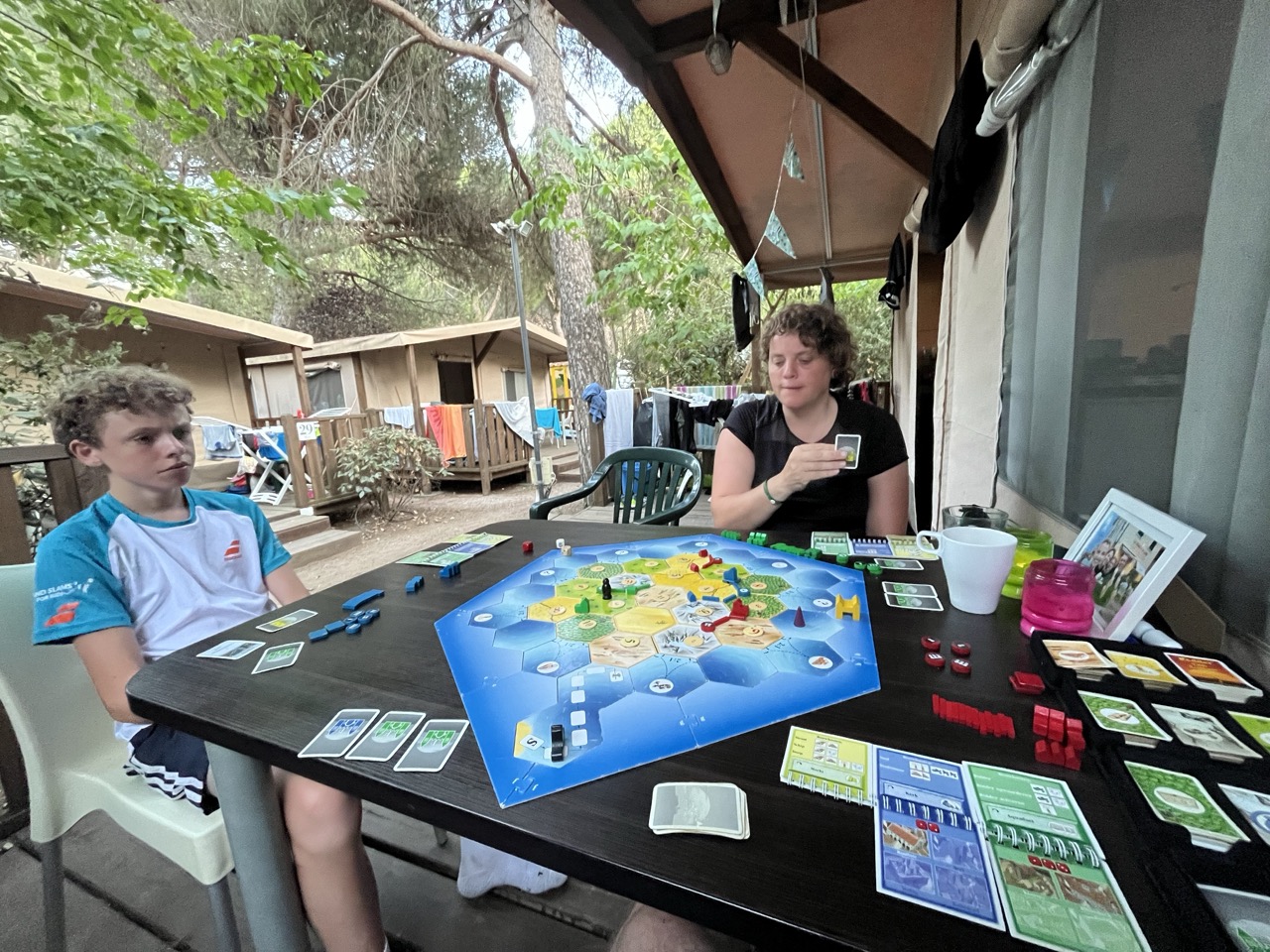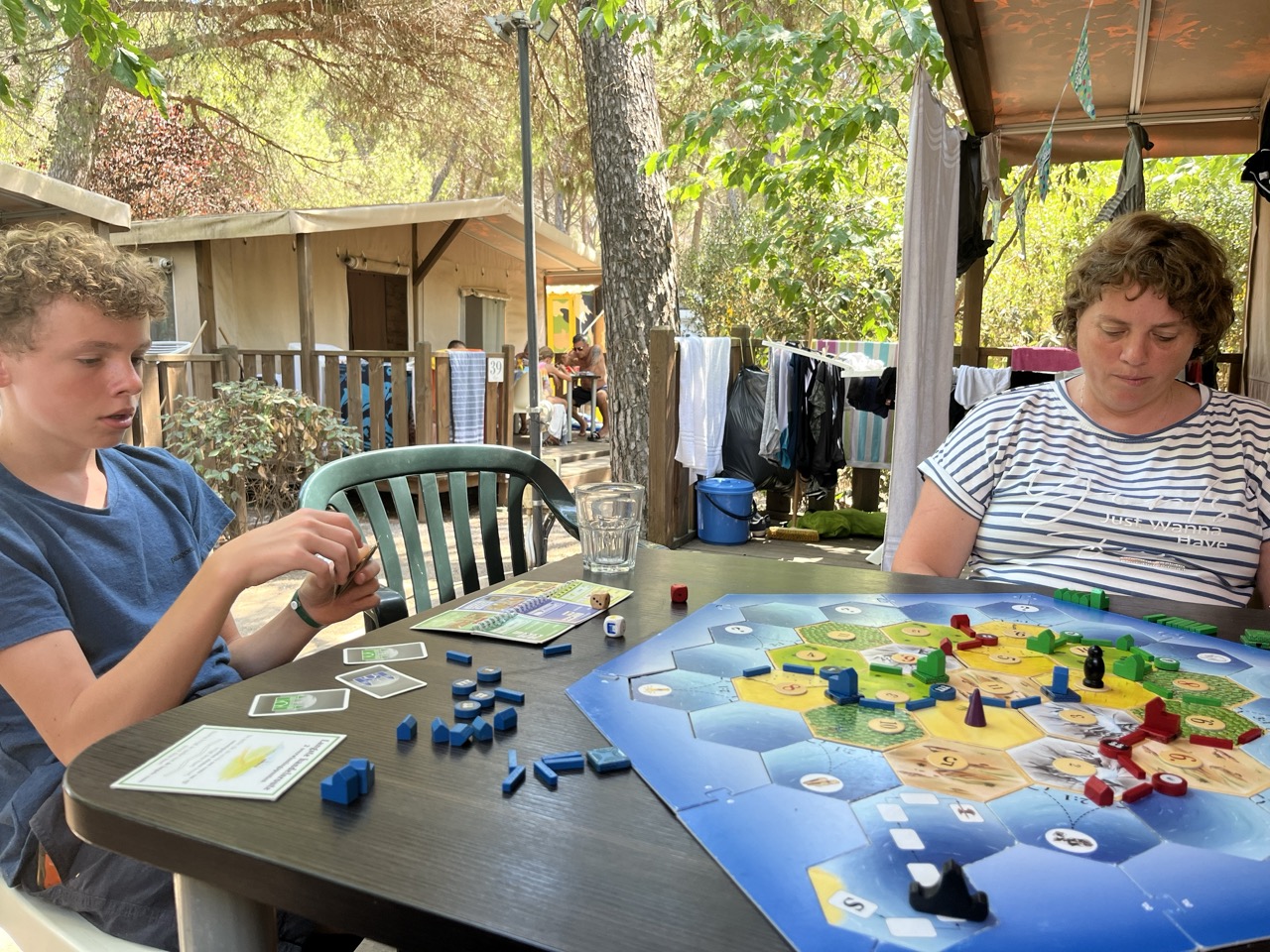 Vandaag waren we moe en hadden we geen zin om al teveel te gaan ondernemen. Vanochtend eerst onze fietsen teruggebracht en ontbeten. Om 10 uur hadden we een belafspraak staan met Maud en haar moeder. Maud was vorig jaar mee op de Zuiderzeevaart en daar hadden Anne en Maud een heel fijne en mooie klik. Anne heeft regelmatig aangegeven dat ze het zo jammer vond dat ze niet wat dichter bij elkaar woonden zodat ze wat makkelijker konden afspreken. Toen Anne in het ziekenhuis lag kwam er 1 dag voor het overlijden van Anne een appje binnen van Maud op de telefoon van Anne met de vraag ‘Hey Anne, hoe was de musical in Londen?’. Het contrast was voor ons toen zo groot dat we dat berichtje even hebben laten rusten maar later heb ik wel contact met haar opgenomen en met elkaar afgesproken om elkaar ook nog een keer telefonisch wat uitgebreider te spreken. Het was een mooi, open, eerlijk en fijn gesprek. Ik snap dat Anne een klik had met Maud, ze klonk bijna als een 2e Anne die bijna hetzelfde heeft meegemaakt (nog steeds eigenlijk), en zowel Maud als haar moeder begrijpen zonder veel woorden wat Anne, wat wij mee hebben gemaakt en wat de impact daarvan is op ons leven. We hebben nog geen lotgenoten gesproken, de behoefte was er ook niet echt maar na dit gesprek merk ik dat het toch wel fijn is en het voor ons goed zou zijn om wat vaker met lotgenoten te praten. Na dit gesprek zijn we even naar het zwembad geweest, hebben we het spel Kolonisten van Catan gespeeld (deze keer met uitbreiding Steden en Ridders, weet Stan nu ook hoe dat gaat). Aan het einde van de middag doen we alledrie weer mee aan het padeltoernooi. Deze keer was het niveau flink hoger dan de vorige keren maar dat is alleen maar leuk. Stan ging met Anita en kwamen in de halve finale. Ik werd gekoppeld aan een Braziliaan die in Italië woont en wij haalden de finale maar daarin verloren ook wij. Klinkt misschien alsof ik heel goed ben maar in alle eerlijkheid speel ik deze dagen eigenlijk best wel slecht en als ik heel eerlijk ben vind ik Stan nog beter dan ik (maar dat houden we verder maar voor ons 🙃). Na soep met brood (waren even klaar met alle pasta) hebben we vanavond nog een keer Kolonisten van Catan gespeeld en kwam er een einde aan deze rustige dag.