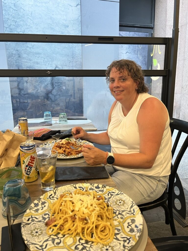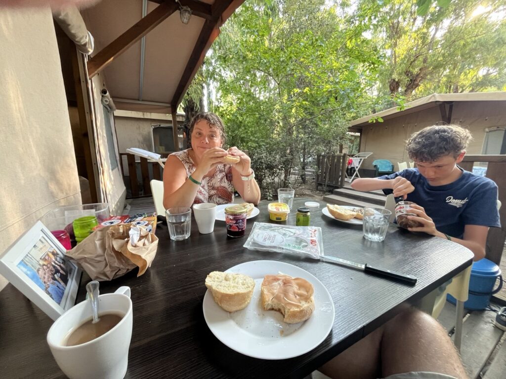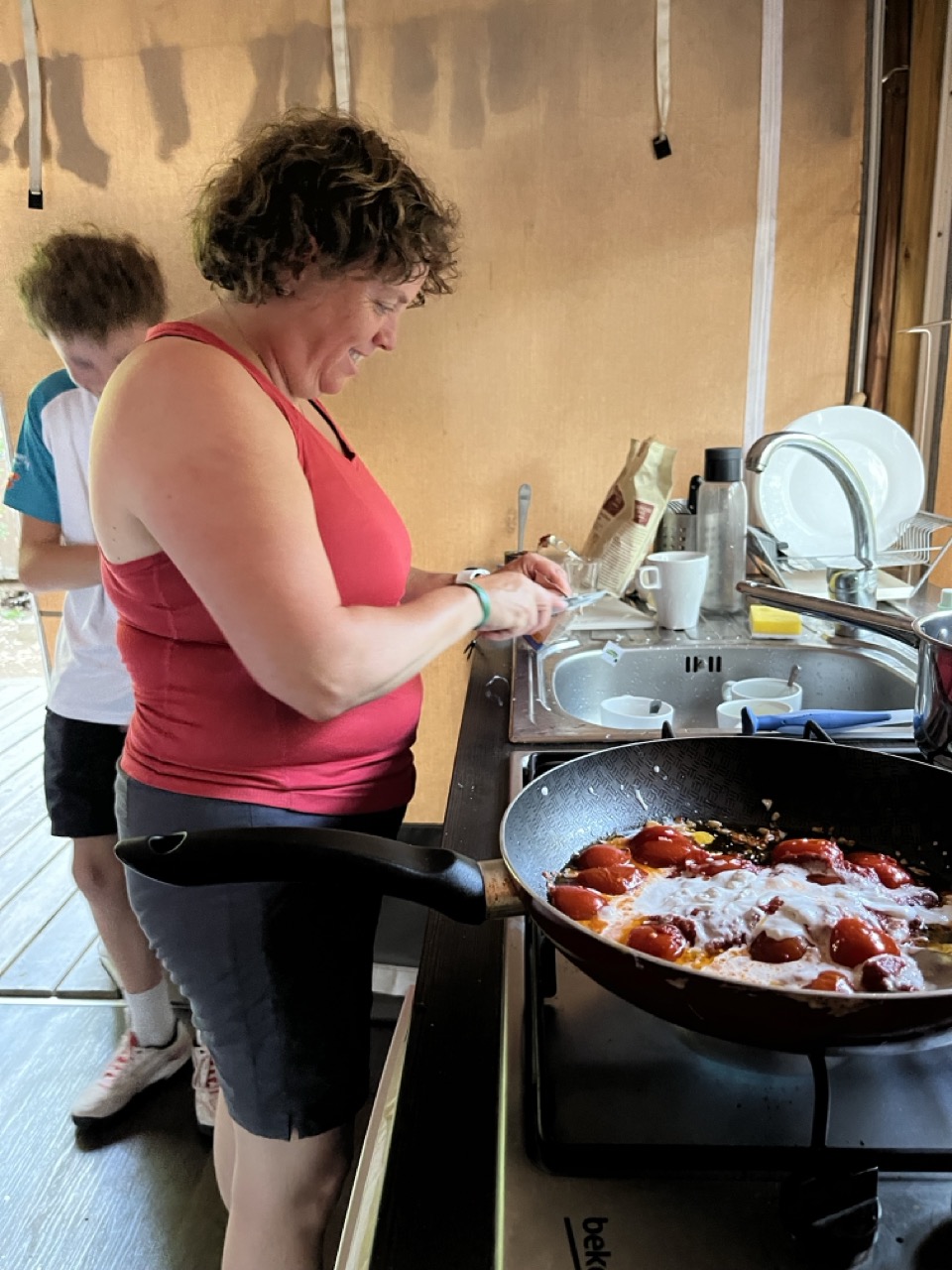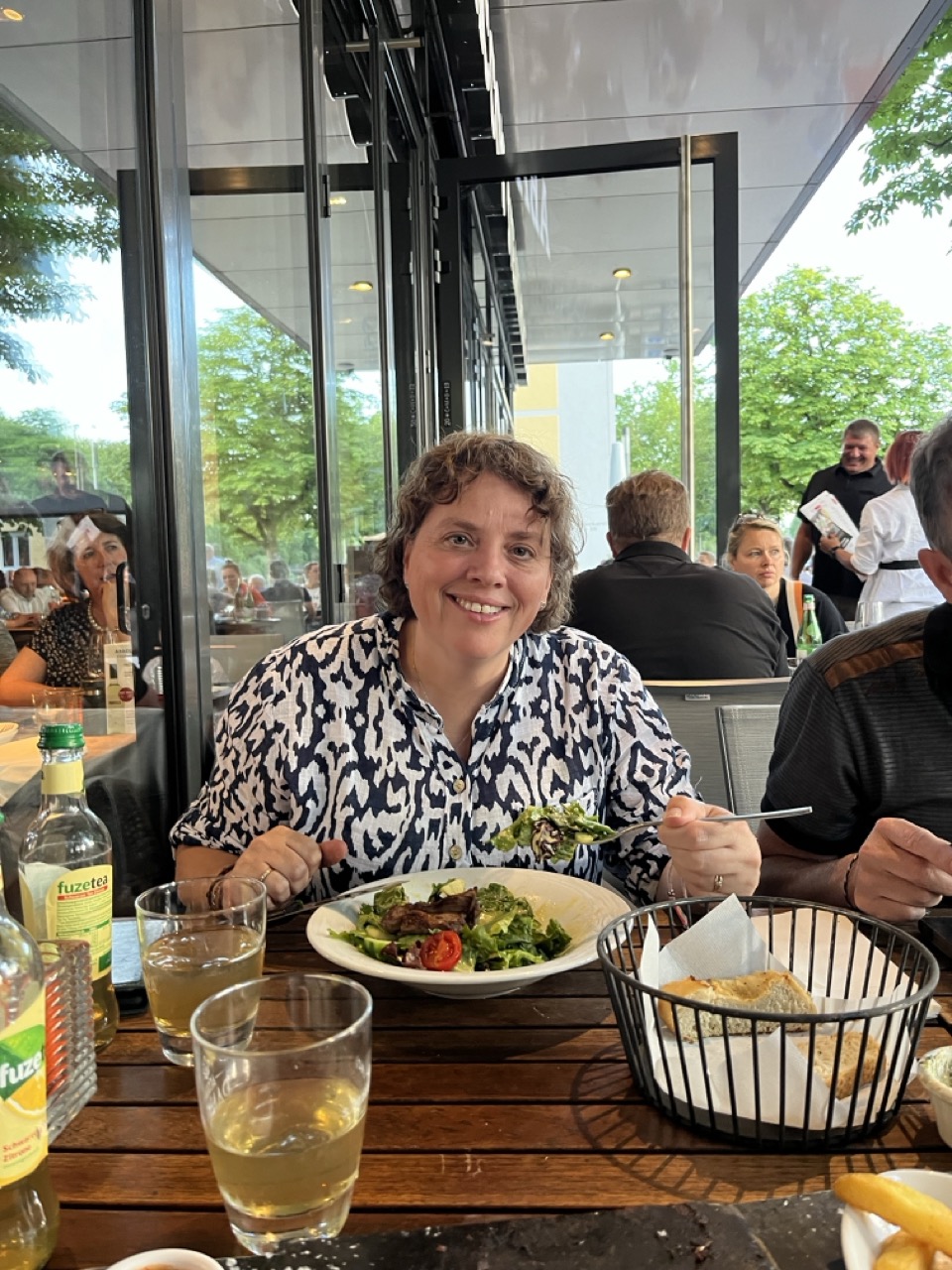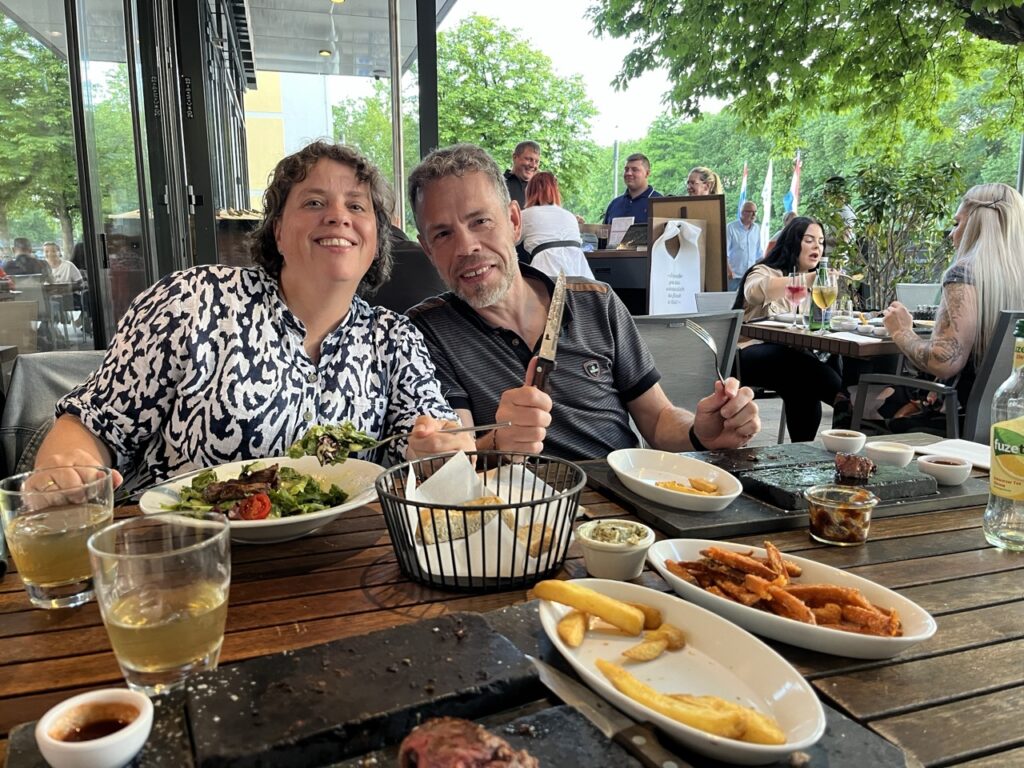Vandaag waren we moe en hadden we geen zin om al teveel te gaan ondernemen. Vanochtend eerst onze fietsen teruggebracht en ontbeten. Om 10 uur hadden we een belafspraak staan met Maud en haar moeder. Maud was vorig jaar mee op de Zuiderzeevaart en daar hadden Anne en Maud een heel fijne en mooie klik. Anne heeft regelmatig aangegeven dat ze het zo jammer vond dat ze niet wat dichter bij elkaar woonden zodat ze wat makkelijker konden afspreken. Toen Anne in het ziekenhuis lag kwam er 1 dag voor het overlijden van Anne een appje binnen van Maud op de telefoon van Anne met de vraag ‘Hey Anne, hoe was de musical in Londen?’. Het contrast was voor ons toen zo groot dat we dat berichtje even hebben laten rusten maar later heb ik wel contact met haar opgenomen en met elkaar afgesproken om elkaar ook nog een keer telefonisch wat uitgebreider te spreken. Het was een mooi, open, eerlijk en fijn gesprek. Ik snap dat Anne een klik had met Maud, ze klonk bijna als een 2e Anne die bijna hetzelfde heeft meegemaakt (nog steeds eigenlijk), en zowel Maud als haar moeder begrijpen zonder veel woorden wat Anne, wat wij mee hebben gemaakt en wat de impact daarvan is op ons leven. We hebben nog geen lotgenoten gesproken, de behoefte was er ook niet echt maar na dit gesprek merk ik dat het toch wel fijn is en het voor ons goed zou zijn om wat vaker met lotgenoten te praten. Na dit gesprek zijn we even naar het zwembad geweest, hebben we het spel Kolonisten van Catan gespeeld (deze keer met uitbreiding Steden en Ridders, weet Stan nu ook hoe dat gaat). Aan het einde van de middag doen we alledrie weer mee aan het padeltoernooi. Deze keer was het niveau flink hoger dan de vorige keren maar dat is alleen maar leuk. Stan ging met Anita en kwamen in de halve finale. Ik werd gekoppeld aan een Braziliaan die in Italië woont en wij haalden de finale maar daarin verloren ook wij. Klinkt misschien alsof ik heel goed ben maar in alle eerlijkheid speel ik deze dagen eigenlijk best wel slecht en als ik heel eerlijk ben vind ik Stan nog beter dan ik (maar dat houden we verder maar voor ons 🙃). Na soep met brood (waren even klaar met alle pasta) hebben we vanavond nog een keer Kolonisten van Catan gespeeld en kwam er een einde aan deze rustige dag.