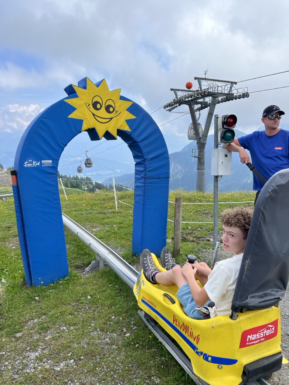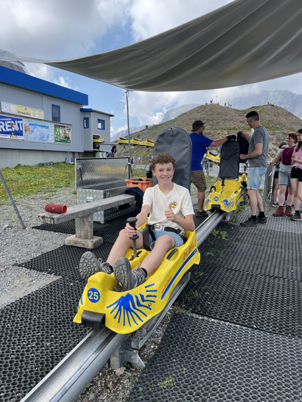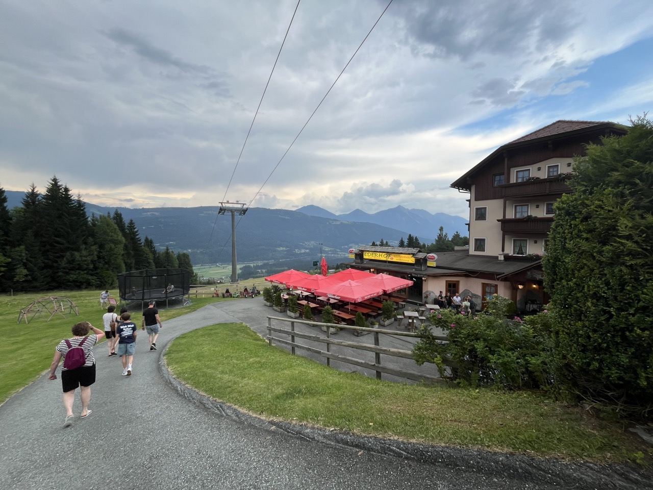 Vandaag gingen we in de ochtend met de lift naar de toppen van de bergen gegaan om daar even wat rond te lopen. Daar was ook een mooie en lange rodelbaan waar we wel zin in hadden. Stan en ik kregen dat cadeau van David en Kristel voor onze komende verjaardagen. Iedereen had lol bij het naar beneden sjezen maar de een gebruikte wel wat meer de rem dan de andere 😀 Vanmiddag zijn we naar het meer in de buurt (strandbad Hermagor) geweest om lekker te zwemmen en te ontspannen. Vanavond hebben we met z’n allen 30 seconds gespeeld en daarna hebben Stan, Anita en ik nog even een wandeling door het dorp gemaakt.