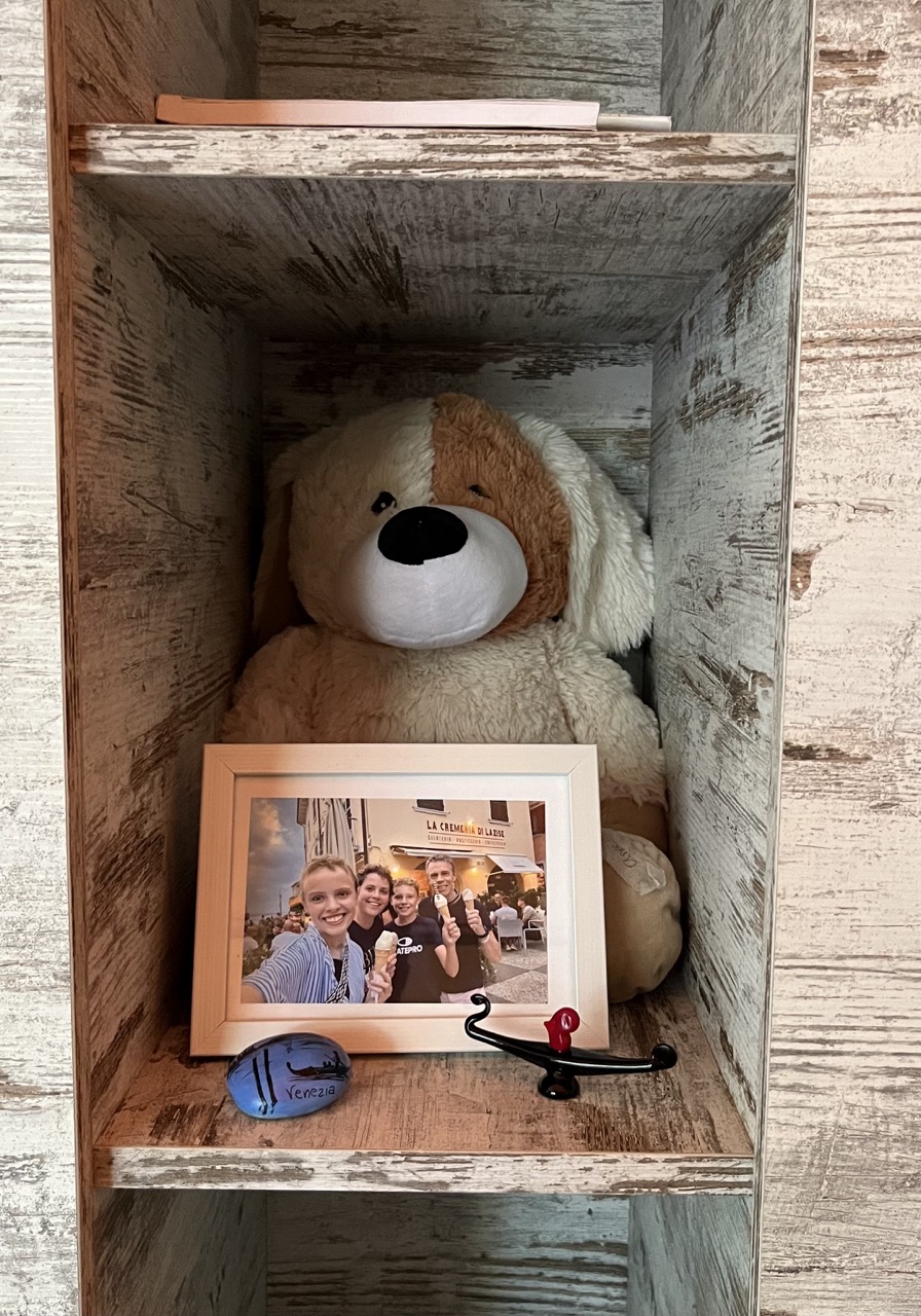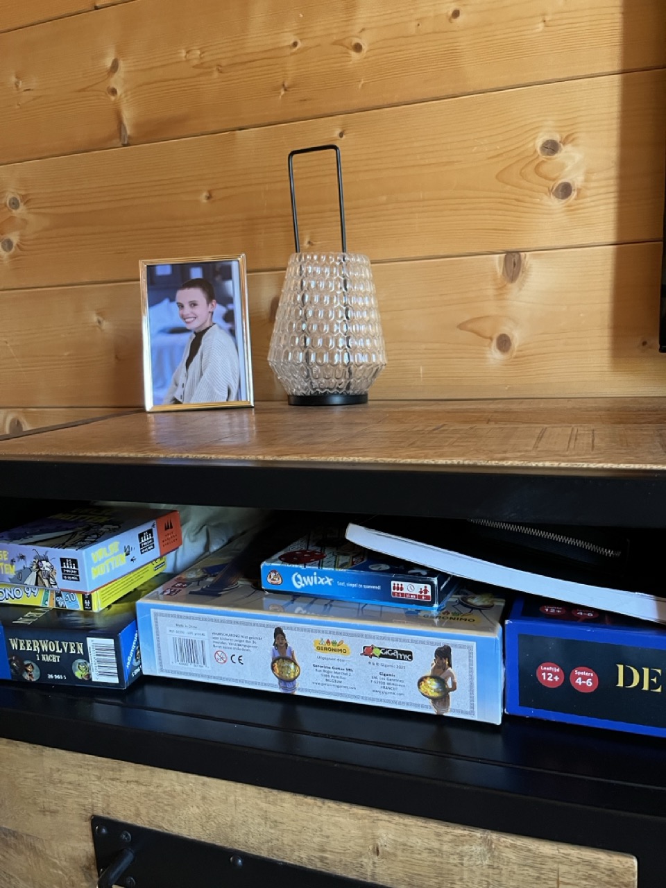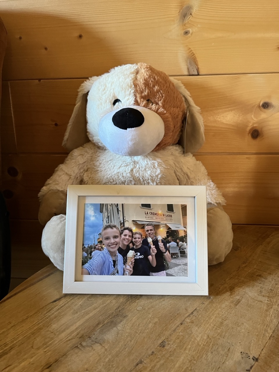 In het huisje hebben we 2 foto’s van Anne neergezet. We hebben ook de pratende beer die Anne voor ons heeft gekocht (en ingesproken) meegenomen op de achterbank en deze beer staat nu ook in de woonkamer. We praten nog niet heel veel over Anne maar ze is vrijwel continu in onze gedachten ♥️