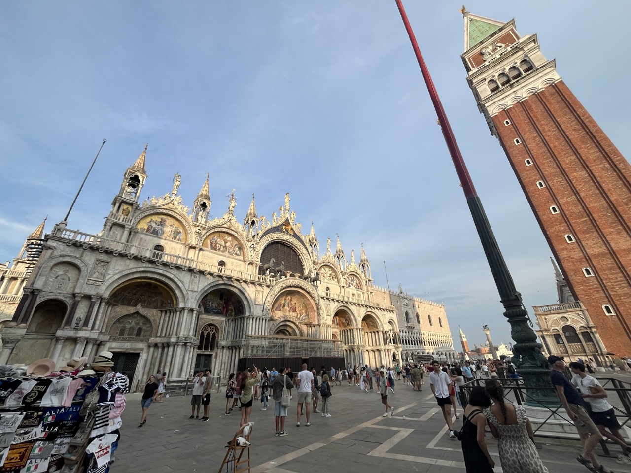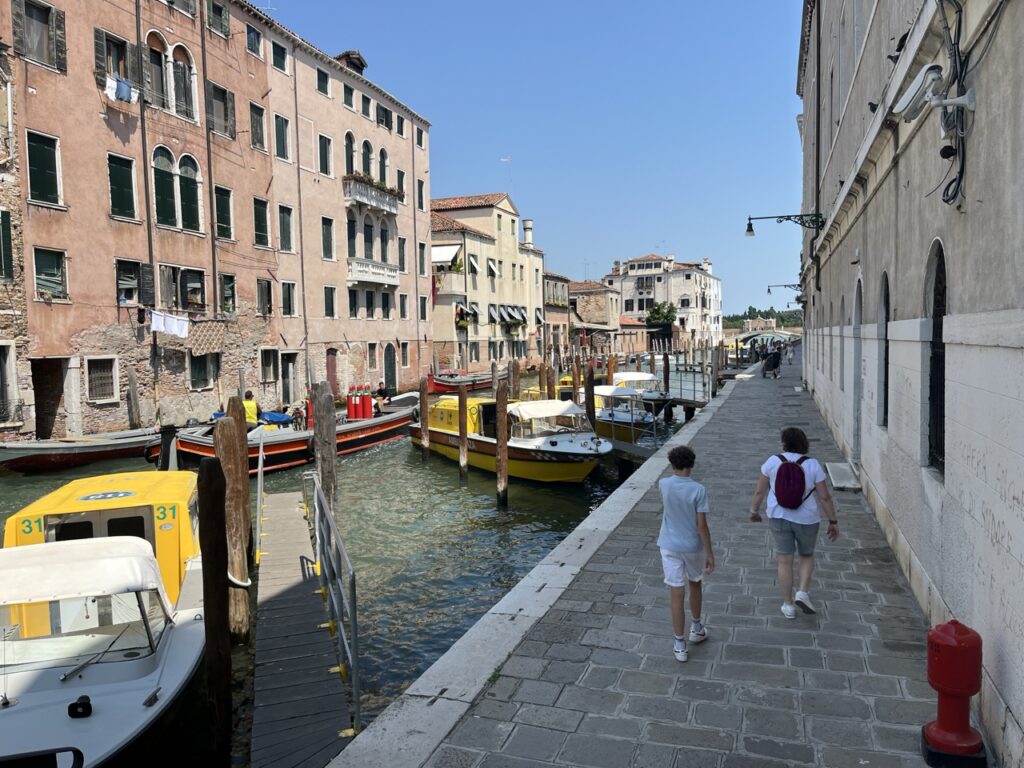Vandaag laten we David, Kristel en Eva achter in Oostenrijk en vertrekken wij richting Italië. Na een korte maar wel echte bergrit komen we na een 2 uur en 50 minuten aan in de haven van Venetië. Parkeerplaats is geboekt en ik had ook dagtickets voor de watertaxi al geregeld maar dat had ik beter niet kunnen doen. Die dagtickets waren niet geldig voor de taxi vanuit deze haven naar Venetië, hmm niet handig Bert. Maar snel vergeten, tickets voor deze watertaxi gekocht en kwamen precies op tijd aan om naar het centrum van Venetië te varen. We besluiten om te lopen naar ons hotelletje ‘Case sul Molo’ in het centrum van Venetië. Het hotel is klein maar fijn en ligt perfect. We doen meteen een avondwandeling door de stad, zien een heerlijk plekje aan de voet van de Rialto brug om te eten en lopen vandaar met een omweg weer terug naar ons hotel. Het valt ons op dat het aantal (mooie) gondels echt enorm is. Wel leuk om te zien maar dat gaan wij waarschijnlijk niet doen (erg duur, we lazen dat gondelier het best betaalde beroep hier is, verdienen zo’n 130.000 euro in het jaar). In het hotel nog even uitgerust, een spelletje gedaan en daarna nog een nachtwandeling gemaakt. Het San Marco plein was gezellig, overal prachtige live muziek en gezellige drukte. Nu tijd om te slapen. Het is in Venetië behoorlijk warm maar wij hebben gelukkig airco in onze kamer.