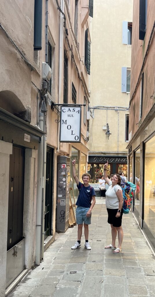 De dag is heel goed verlopen en we hebben ook niets te klagen maar bij het lopen door de straatjes van Venetië kan ik het niet helpen dat de gedachte ‘wat een slecht idee dit’ regelmatig door mijn hoofd spookt. Bijna ieder winkeltje doet denken aan Anne; tasjes, prullaria, mooie jurkjes, hoedjes, Italiaanse ingrediënten en ga zo maar door. Anne had dit super gevonden en dat maakt zorgt ervoor dat je toch met enige regelmaat denkt wat zijn we aan het doen. Tegelijkertijd probeer ik die gedachten weg te duwen en te genieten van de omgeving en van elkaar.
