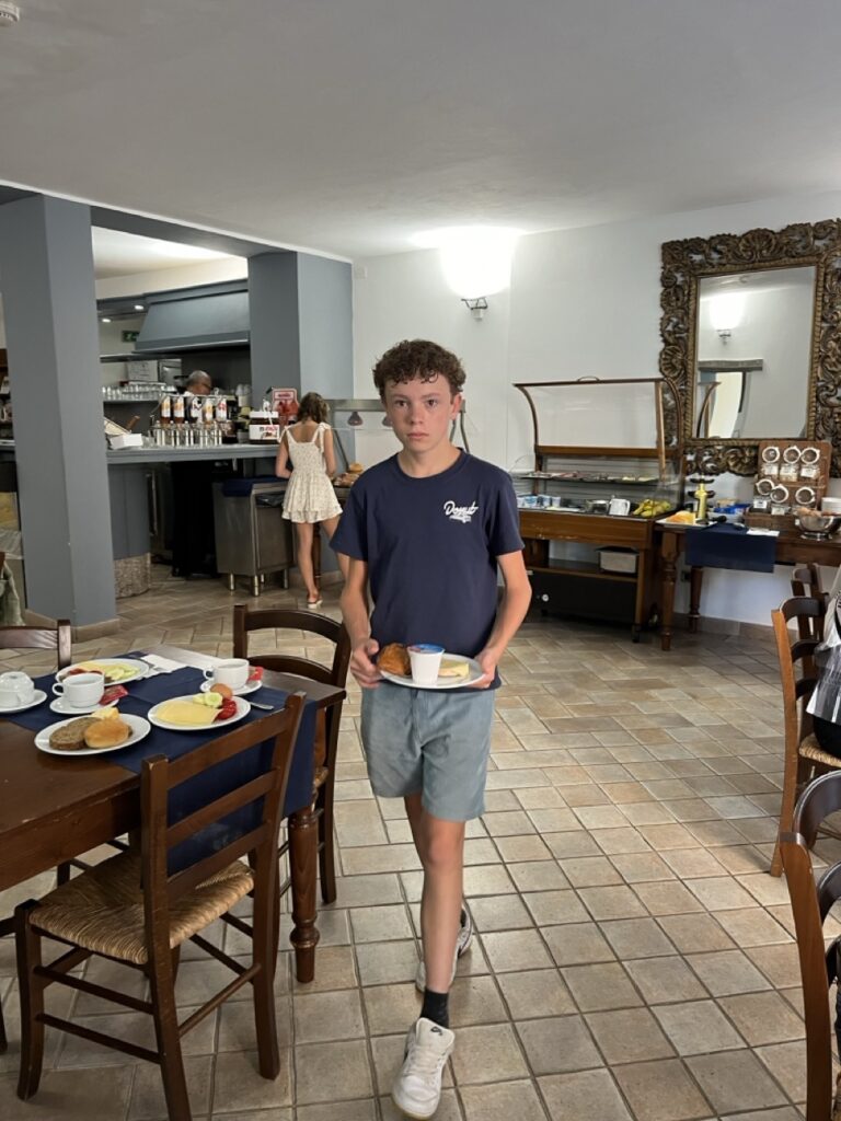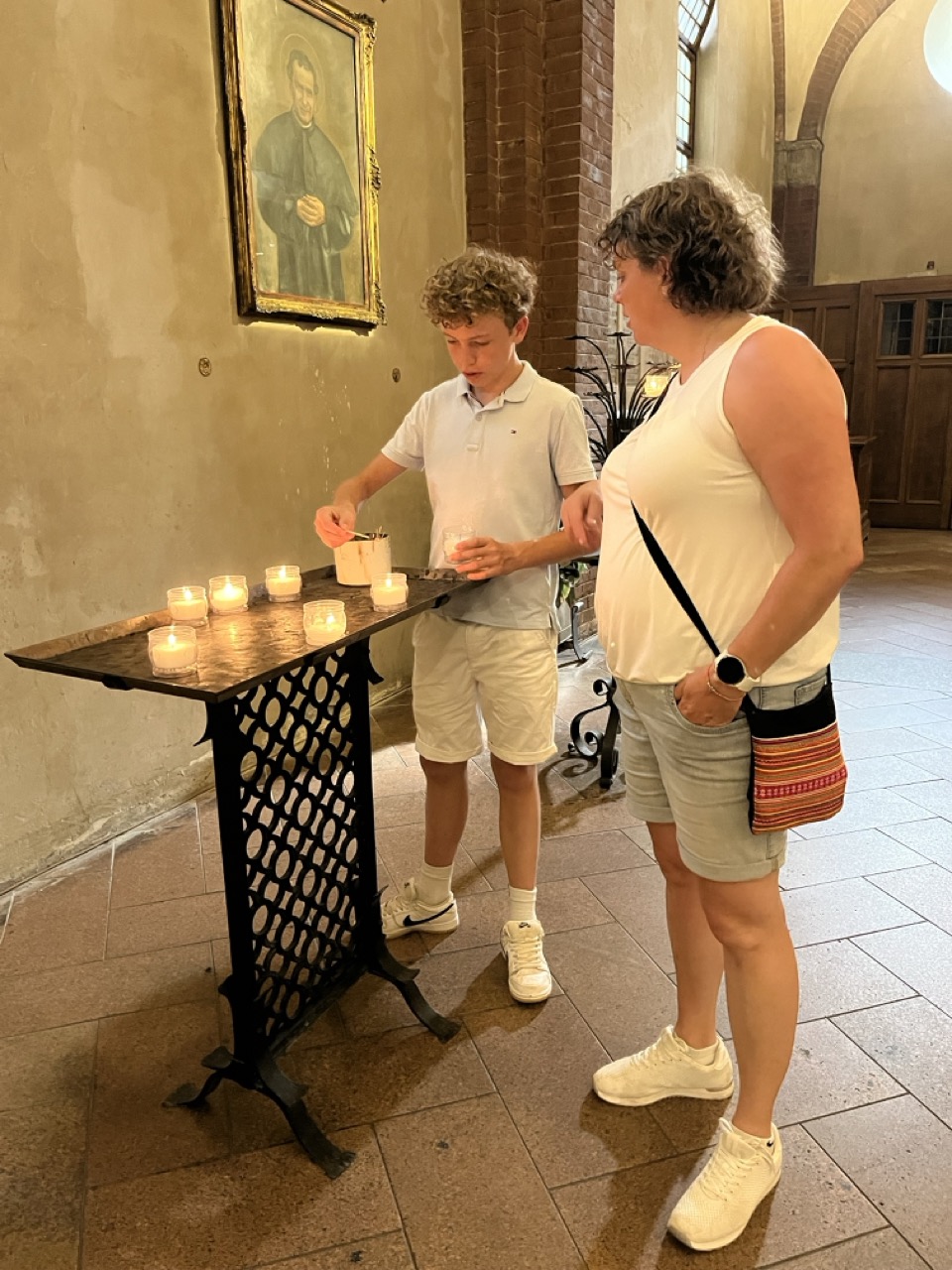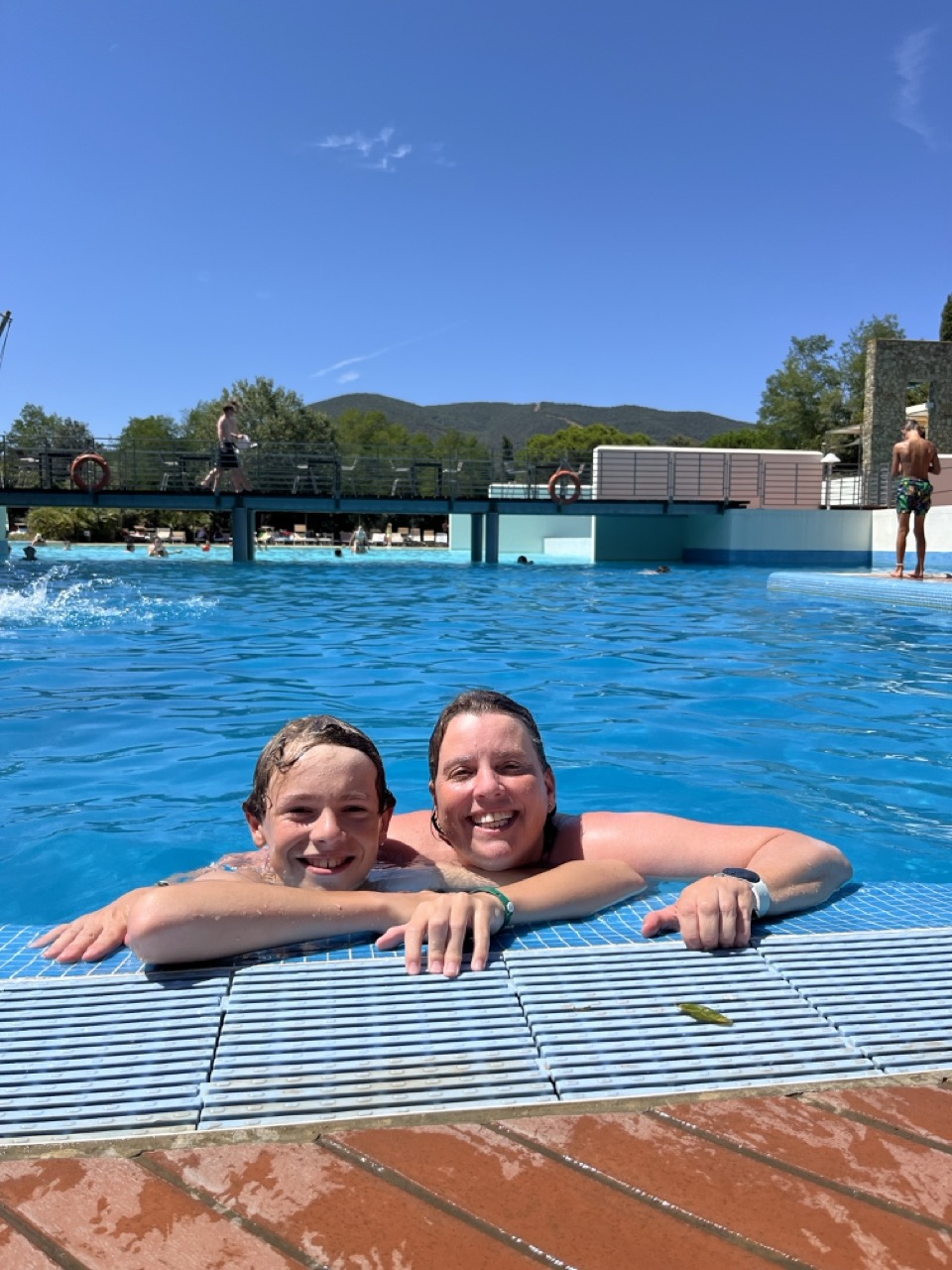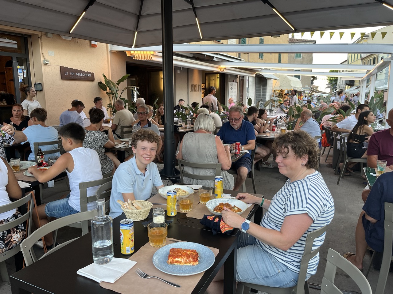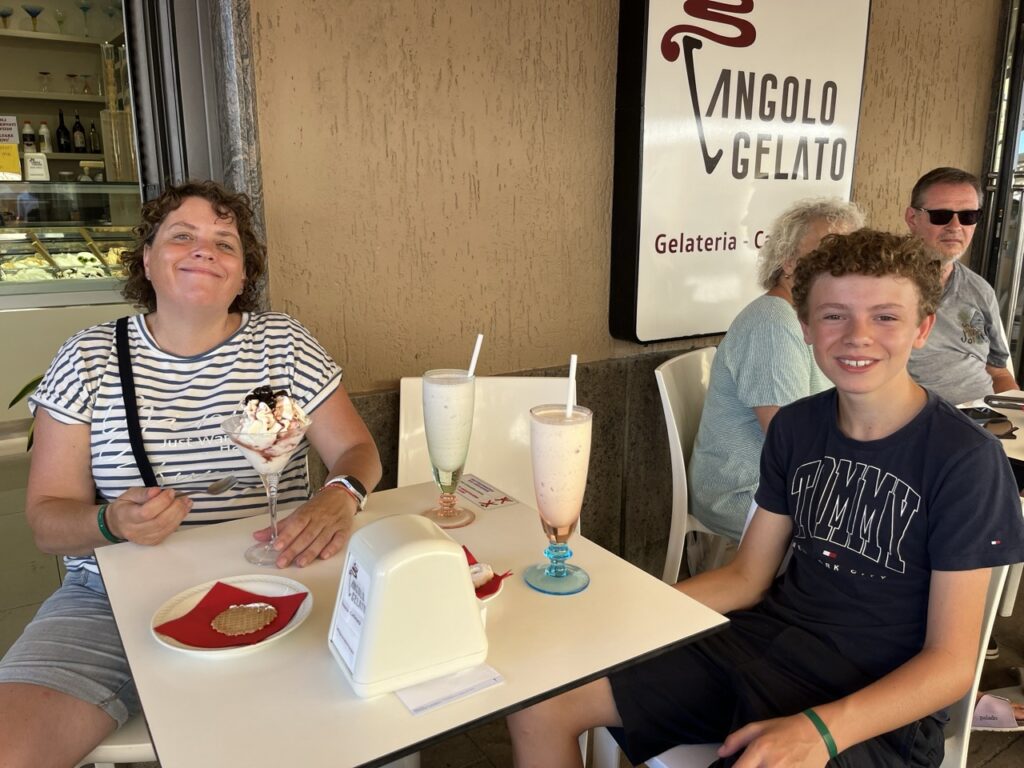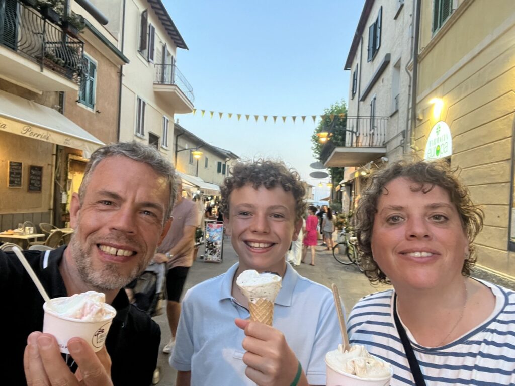 Vannacht heb ik alvast slingers opgehangen in en bij de tent want ja onze lieve Stan is jarig. 14 jaar al weer! Dit gaat natuurlijk weer zo’n dag worden waar naast een beetje feest ook herinneringen naar boven komen die ons verdrietig maken en terugverlangen naar die mooie tijd waar Anne nog fysiek bij ons was. Dat zal ook voor Stan gelden maar het moet toch ook een leuke dag voor onze Stan worden. Opa en oma videobellen in de ochtend met Stan om hem te feliciteren en daarna gaan we even het stadje Castiglione verkennen. Het is markt en druk en daarom lastig een parkeerplekje te vinden. Dus wat verder lopen dan gehoopt. Het is een erg leuk stadje maar we willen er vanwege de warmte ook weer niet te lang zijn. Bij het kasteel op de berg is ook een kerkje waar we nog een kaarsje voor Anne hebben aangestoken. Daarna lopen we terug het oude centrum in naar een gelateria waar Stan en ik een heerlijke Frappé en Anita een chique ijsje nemen en dan gaan we weer terug naar de camping. Vanmiddag nog even in het zwembad actief geweest maar verder niet veel gedaan. Stan was moe vandaag dus doen het rustig aan (vinden we zelf ook best prima). Vanavond zijn we opnieuw naar Castiglione gegaan om vanwege de verjaardag van Stan lekker en gezellig te gaan eten. Parkeren was opnieuw een probleem maar nu omdat het parkeergeld alleen met munten betaald kon worden. Na veel gedoe uiteindelijk via een Italiaanse parkeer app kunnen regelen. Daarna was het gezellig. Het oude centrum met het kasteel is authentiek, mooi en het was gezellig druk. Lekker op het terras in de straat eten. Typisch Italiaans sfeertje zoals we het het liefst zien en ervaren. Na het eten verwennen we onszelf nog met een heerlijk ijsje (Stan is tenslotte jarig) en dan gaan we terug naar de camping. Onze Italiaanse vrienden hadden al geappt of we om half 9 wilden padellen maar dat ging niet. Terwijl Anita bij de tent blijft gaan Stan en ik even tennissen (kort omdat Stan weer last krijgt/heeft van zijn overbelaste arm) en vanaf 11 uur tot ruim na twaalven staan Stan en ik met Hannibal en Malena op de padelbaan. Het was hun laatste avond en dit was een leuke afsluiting. Nadat we de baan afliepen werden we meteen aangeschoten door een Nederlandse jongen die vroeg of wij morgenavond samen met hem en zijn vader wilden padellen. Natuurlijk willen we dat dus onze volgende date staat al weer. We hebben niet echt met elkaar over Anne gesproken, dat blijft lastig. Wel hebben we alledrie van verschillende mensen ontzettende lieve berichtjes ontvangen en dat doet ons veel (goed). Dankjewel ♥️