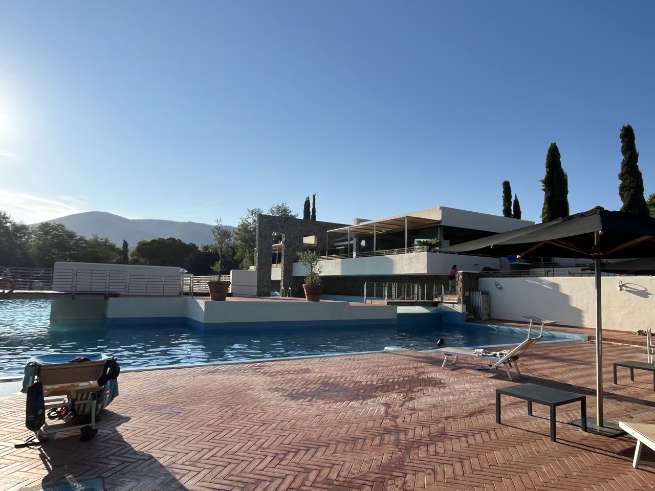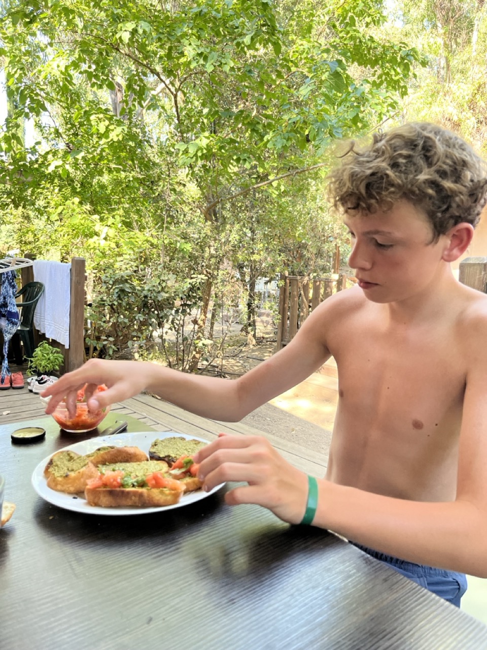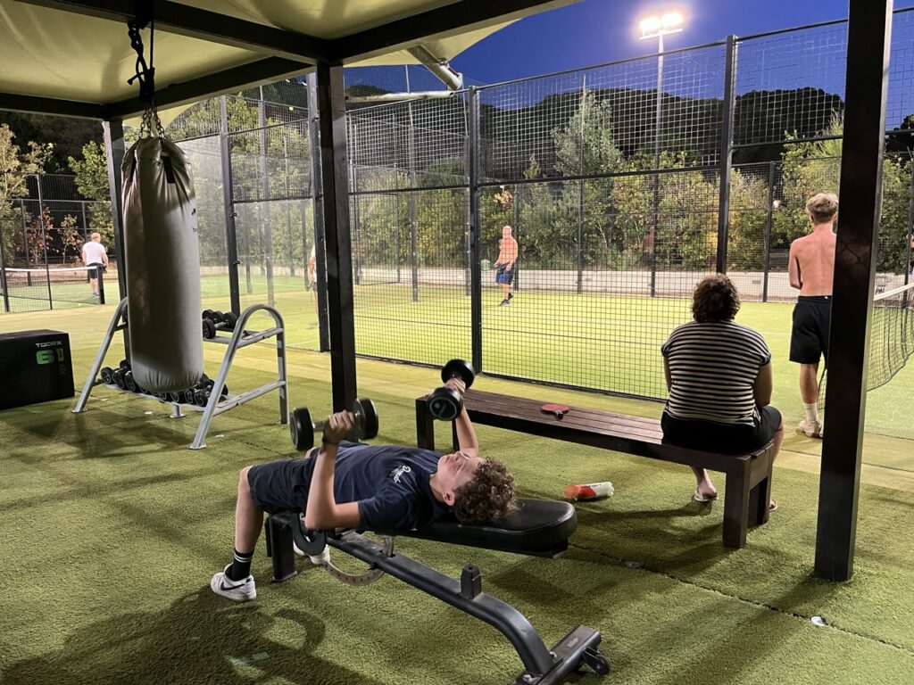 Vandaag zijn we naar de zee en het strand gegaan. Het is zo’n 10 minuutjes lopen dus prima te doen. Het is er druk maar het is wel een heerlijk zandstrand en het water van de zee heeft een heerlijke temperatuur. Anita op het ligbedje op het water en Stan en ik vaak aan het beachballen of iets anders actiefs. Het is vandaag een relaxdag en dat is best prima. Anita ging aan het einde van dag naar het zwembad voor Aquagym maar dat blijkt pas morgen te zijn, Stan en ik hebben toen in de hitte nog even getennist (veel te warm dus niet te lang). Daarna was het gezellig samen koken met Stan als kok voor het maken van de Bruschetta’s als voorgerecht, heerlijk! Vanavond nog even wat gesport (tafeltennis, tennis, fitness en padel kijken) en daarna was het tijd voor de nacht.