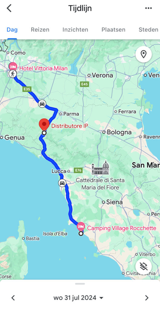 Vandaag is het tijd om richting huis te gaan. De afstand naar huis is bijna 1.500 kilometer dus we hebben besloten de reis relaxed te doen in 3 dagen. Onze eerste tussenstop (wilde Stan ook graag) is Milaan. We ontbijten eerst rustig en vertrekken dan rond 10 uur van de camping. Na veel gedoe (3 pogingen voor ander hotel waarbij ik alle gegevens had ingevuld en dan bij de stap betalen het bericht kreeg dat het hotel net door iemand anders was geboekt, frustrerend!) is het gisteravond gelukt om een hotel te boeken in Milaan. Kreeg een erg goede aanbieding maar was alsnog duurder dan mijn eerste opties maar ja maar snel vergeten en blij dat we iets hebben en weten waar we naar toe gaan. De reis brengt ons dichtbij Cinque Terre waar we vorig jaar met z’n vieren zo’n fantastische tijd hebben gehad. Veel herinneringen gaan door het hoofd, mooie herinneringen maar het doet ook pijn en maakt verdrietig. De omgeving is wel prachtig. Het is wel relatief druk op de weg maar uiteindelijk valt het wel mee en komen we rond kwart voor drie aan in de parkeergarage. In 1x, geen problemen, alle milieuzones kunnen ontwijken en de auto fijn in de parkeergarage op 100 meter afstand van het hotel. We checken in en gaan daarna meteen de stad in. Het is ongeveer 15 tot 20 minuten lopen naar de kathedraal van Milaan. Een prachtig gebouw maar om naar binnen te gaan moet je best wel veel betalen dus dat gaan we vandaag niet doen. Stan krijgt steeds meer last van zijn oor, lijkt een oorontsteking te zijn dus kopen eerst oordruppels bij een apotheek, hopelijk gaat dat helpen. We bekijken Milaan maar zijn eigenlijk vooral in de shopping modes. Niet direct om iets te kopen maar om ons te vergapen aan alle dure merken en de prachtige gebouwen waar deze winkels in zitten. Zo zijn we in de Apple store geweest waar je door een waterval heen een aantal trappen af moet lopen om in de ondergrondse winkel te komen. We doen een (veel te duur) drankje op een terrasje en in de avond (zeer betaalbaar om het drankje van vanmiddag te compenseren) lekker eten. Onderweg naar het hotel komen we nog langs een mooie kerk waar Stan een kaars aansteekt voor Anne. Het is fijn om op ook op die manier in gedachten even extra stil te staan bij Anne. We zijn te kort in Milaan en hebben te weinig gedaan om iets zinnigs over Milaan te zeggen maar voor nu was het prima en best een relaxte dag. Nu terug in ons hotel waar we 2 aan elkaar geschakelde kamers hebben; Wij een kamer en Stan een complete kamer voor zichzelf. Wat een luxe! Nu maar snel slapen want morgen staat ons een route van 553 kilometer naar Heilbronn (onze 2e en laatste tussenstop) te wachten.