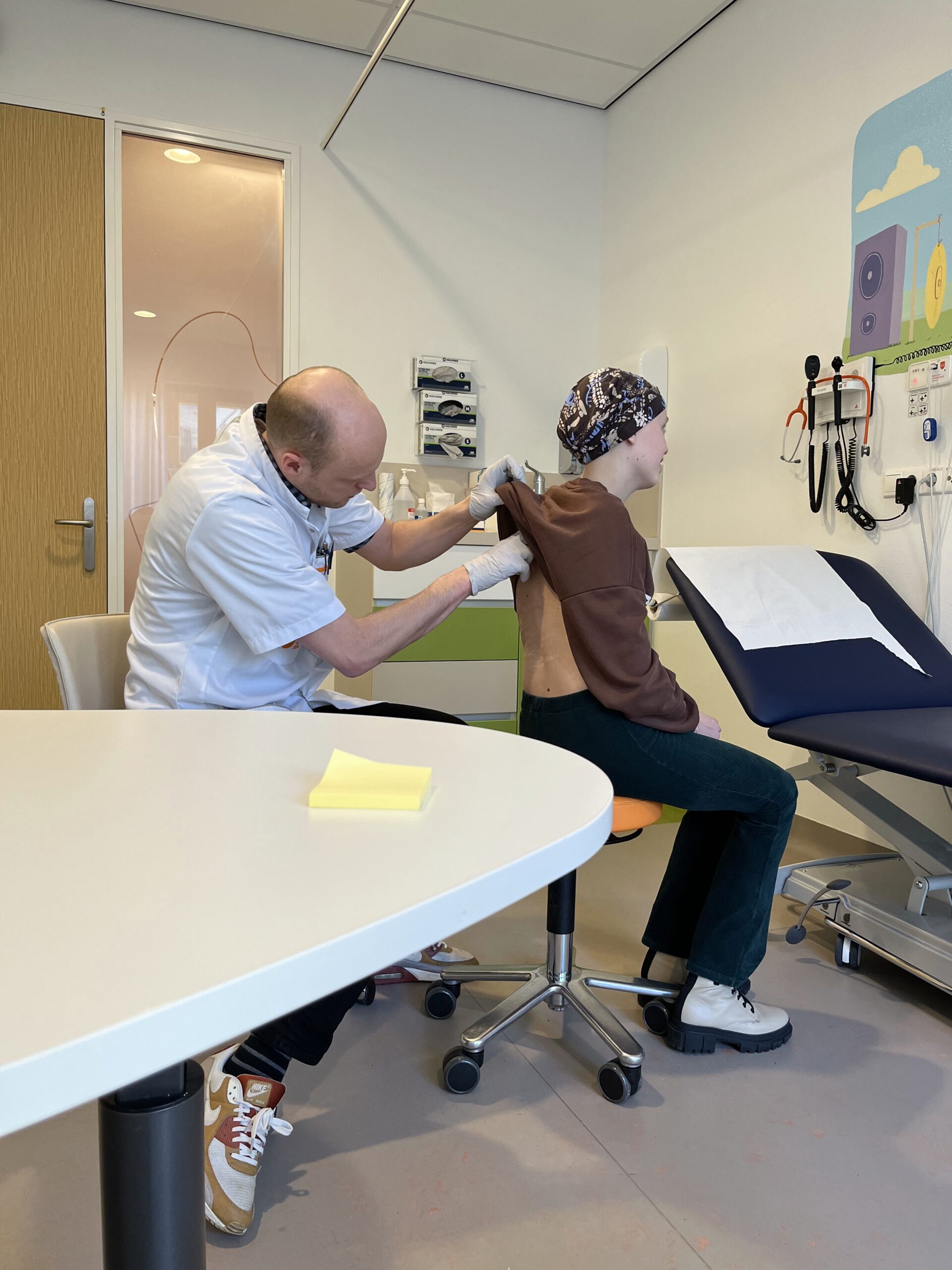 Na dit gesprek hadden we ons gesprek met de pijndokter. Helaas niet dezelfde dokter als de vorige keer omdat hij zich vanochtend ziek had gemeld. De pijn van Anne blijft een beetje gissen maar komt vrijwel zeker door de scoliose. Omdat de medicatie voor de nacht redelijk goed lijkt te werken wordt besloten ditzelfde medicijn ook overdag te namen. In de avond is het 50mg in tabletvorm maar dat maakt haar suf dus voor overdag kiezen we druppels zodat we in stapjes van 2,5mg kunnen sturen en hopelijk een balans kunnen vinden tussen pijnvermindering en zo min mogelijk last van bijwerkingen. We beginnen met 2x per dag 5 druppels en als het na 2 dagen niet voldoende werkt dan 2x 10 druppels. Volgende week maandag hebben we dan telefonisch overleg om te zien hoe het gaat en of we iets moeten aanpassen.