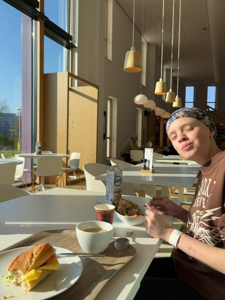 Anne en ik zijn daarna even naar het restaurant gegaan om wat te eten en drinken. Er zat best wel een gat tussen de scan en ons gesprek met dokter Smetsers maar ze riepen ons al eerder op in de hoop dat we dan vandaag wat vroeger naar huis zouden kunnen. Helaas was er nog geen bericht uit Parijs/Amerika en konden we dus ook nog niet heel veel concreet bespreken. We willen eerst de uitslag van de MRI en de reactie vanuit Parijs/Amerika afwachten. Pas dan kan er eigenlijk echt een plan worden gemaakt. Gelukkig zagen de bloeduitslagen er best okay uit. Anne zit laag in de afweercellen maar dat was te verwachten. Het fosfaatgehalte was nog steeds te laag dus vanaf nu moet Anne nog wat meer fosfaatdrank innemen (3x 15mm i.p.v. 3x 10mm). Alles werd weer even doorgenomen, naast gezondheid ook dingen zoals school, leuke dingen doen etc. Anne werd daar ook deze keer weer emotioneel van en gaf aan het mentaal moeilijk te hebben. Daarop heb ik in overleg met Anne besloten de kamer tijdelijk te verlaten en Anne even alleen te laten praten met dokter Smetsers. Dat geeft Anne de mogelijkheid en vrijheid om (hopelijk) wat vrijer te kunnen praten en alles te zeggen waar ze mee zit. Heel fijn dat we iemand hebben als dokter Smetsers. Naast kundig is ze ook een heel fijne, warme en empathische persoonlijkheid die een mooie en bijzondere klik met Anne heeft. Na een tijdje ‘mocht’ ik weer terugkomen en hebben we nog even kort gesproken over de pijn die Anne heeft en het hoesten dat in afgelopen weken weer erger is geworden. Afgesproken dat als dit nog erger wordt we opnieuw een zwaardere antibiotica kuur tussendoor zullen doen. Verder afgesproken dat dokter Smetsers ons sowieso aan het einde van vandaag zal terugbellen. Hopelijk weet ze dan al wat meer over de MRI en anders maken we daarvoor een nieuwe afspraak.