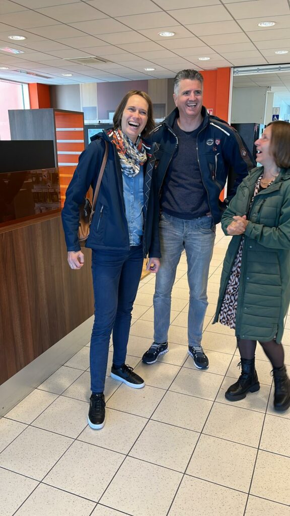 Vanochtend kreeg ik van Theo en Aartje 2 foto’s toegestuurd waarop ze samen met David en Kristel op de foto stonden. Het duurde even voordat ik begreep waar ik naar zat te kijken maar Theo en Aartje zijn onderweg naar een Normandie voor een korte vakantie en David en Kristel zijn onderweg naar Anne in Parijs. Hoe toevallig?! Komen ze elkaar onderweg tegen bij een tankstation. Grappig.