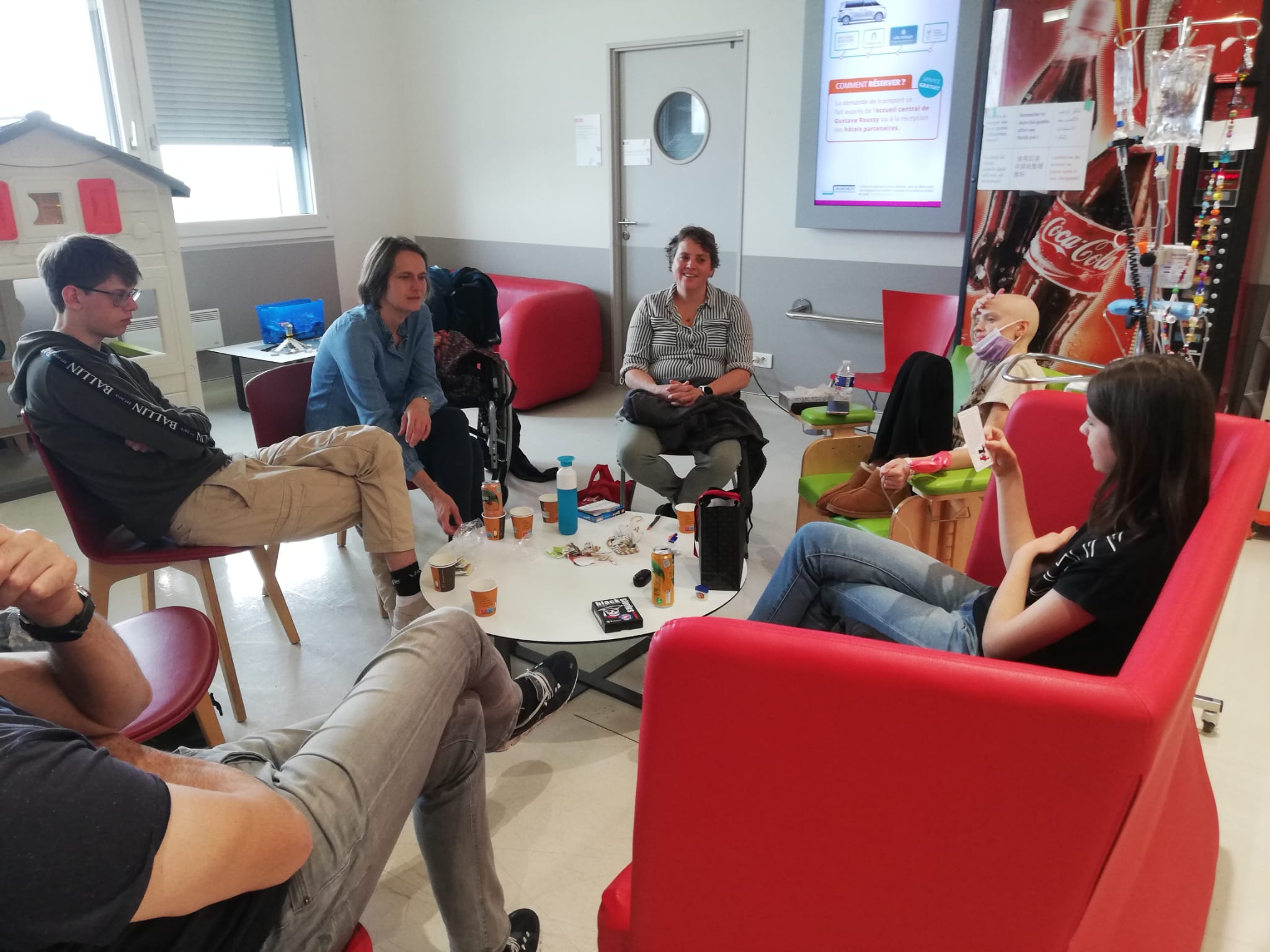 Om 15.00 uur stonden Kristel, David, Tim en Eva op de stoep van het RMD huis en gaf ik ze een rondleiding door het huis en deden we de bestelling van Anne (lekker brood en smeerkaas) in de diepvries. Anne wilde dat we de rolstoel meenamen en zo liepen we naar het ziekenhuis. We zochten de speelkamer op waar een fijne stoel staat en kon Anne de vakantiegangers begroeten. Ze kreeg van Eva een tasje vol cadeautjes, zoals heerlijke pepernoten in een chocolade jasje, een lippenbalsem en BRUINE mascara, die Anne graag wilde maar nergens te koop was. We speelden 3 kaarten van de black stories en toen werd het tijd om naar hun Parijse onderkomen te gaan. Anne wilde mee naar beneden om ze uit te zwaaien. Anita nam Anne weer mee naar boven waarna Anne bijna gelijk in slaap viel, Het was misschien toch te vermoeiend voor Anne, dus morgen even aankijken om het bezoek wat aan te passen.