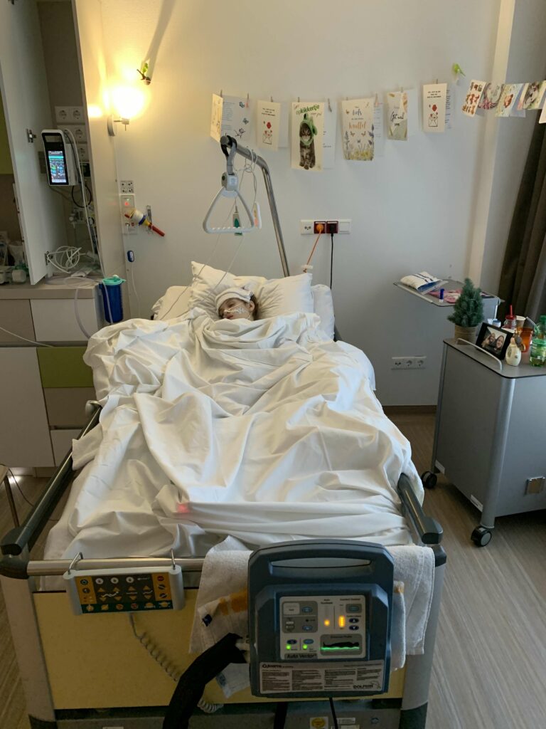 We krijgen zojuist te horen dat we morgen al om 8:30 in het UMC (zo’n 20 minuten rollen met het bed) moeten zijn om de beugel eruit te laten halen dus dat wordt een vroegertje morgen. Verder staat er (nog) niets op de planning voor morgen dus laten we hopen dat dit zich de komende dagen zo doorzet. Groetjes uit het PMC.