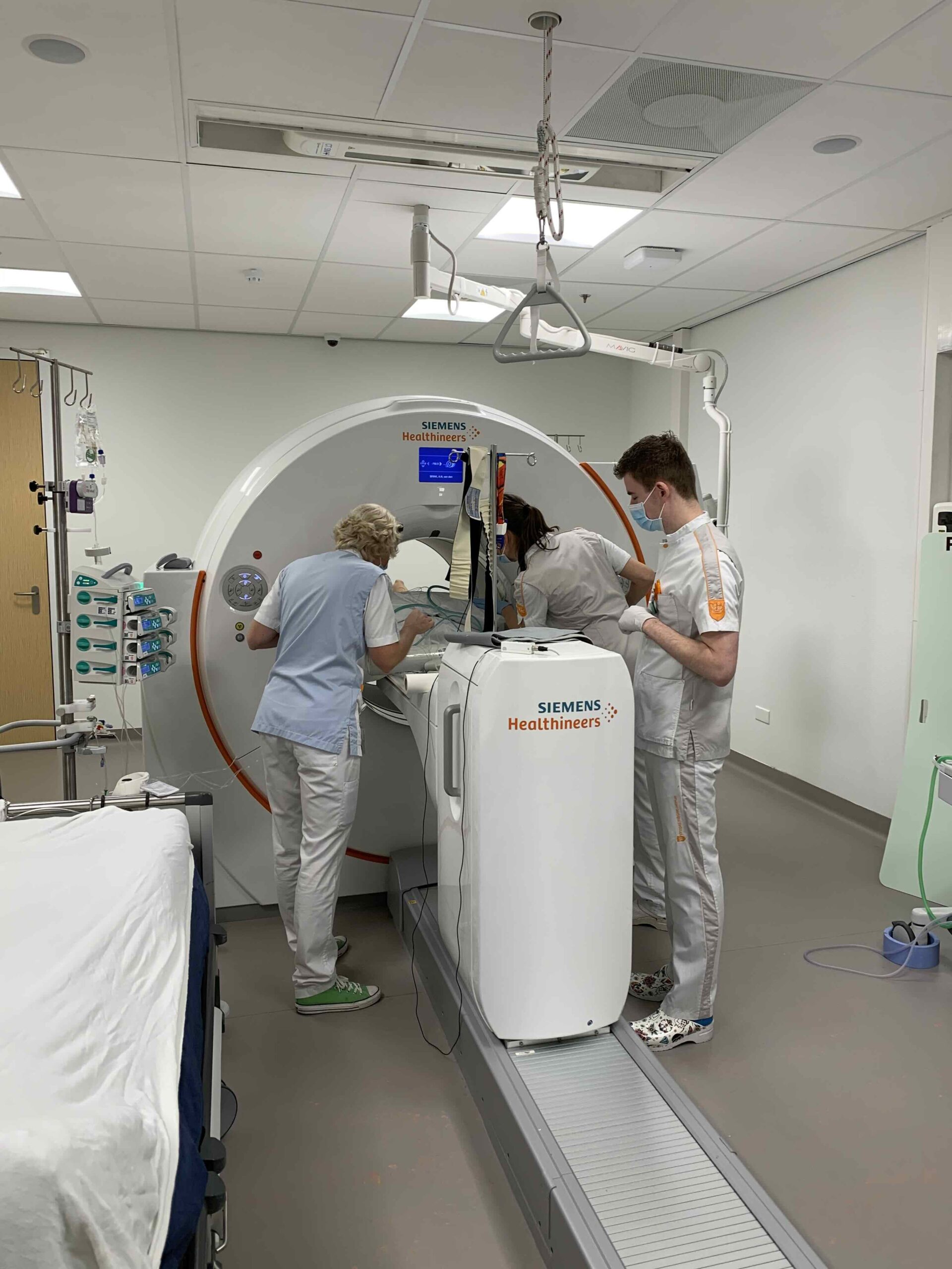 Vanochtend kwamen ze de echo op haar kamer doen om haar zo min mogelijk te vermoeien. Tot op heden geen uitslag ontvangen (geen nieuws is denk ik goed nieuws). Vanmiddag stond in het teken van de PET-CT scan. Die ging boven verwachting goed. Wel vermoeiend voor Anne maar ging veel beter dan de CT van gisteren. Ze mag nu ook weer wat eten en drinken dus heeft genoten van (klein beetje) bolletje kaas en tomatensoep en wat slokjes appelsap.