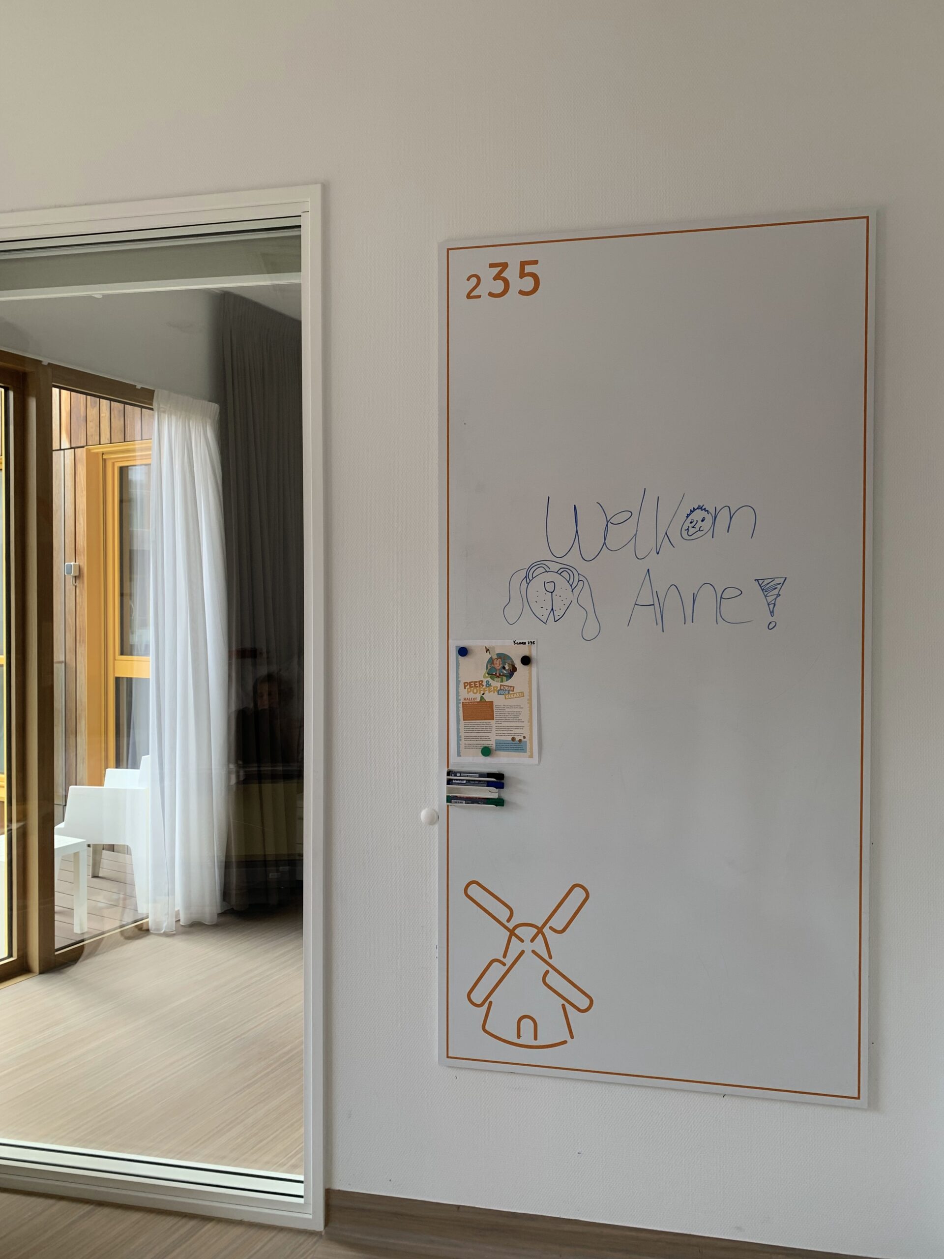Vrijdagmiddag om 14:00 uur moesten we in het ziekenhuis zijn. Anita was aan het werk dus ik ben met Anne gegaan. Omdat gordelroos besmettelijk is (kinderen die nog geen waterpokken hebben gehad kunnen dat hierdoor krijgen en in het PMC is dat een gevaarlijke combinatie) kregen we de isolatiekamer 235 op afdeling molen. Best een mooie kamer hoor maar niet fijn. Er is een ouderkamer maar in plaats van een glazen deur tussen beide kamers zit er 4-dubbel glas tussen en er kunnen geen ramen open. Best even wennen. Anne moet ook op haar kamer blijven. Het enige wat wel mag is dat ze naar buiten mag. Met mondkapje op rechtstreeks naar buiten is dus wel toegestaan en dat is wel heel fijn met dit mooie weer. In het ziekenhuis zal nu 3x per dag (om 6 uur, 14 uur en 22 uur) een uur lang de chemo worden stopgezet en dan krijgt ze een medicijn via het infuus voor de behandeling van gordelroos. Om toch voldoende chemo binnen te krijgen wordt de dosis van 5ml per uur verhoogd naar 6.1ml per uur.