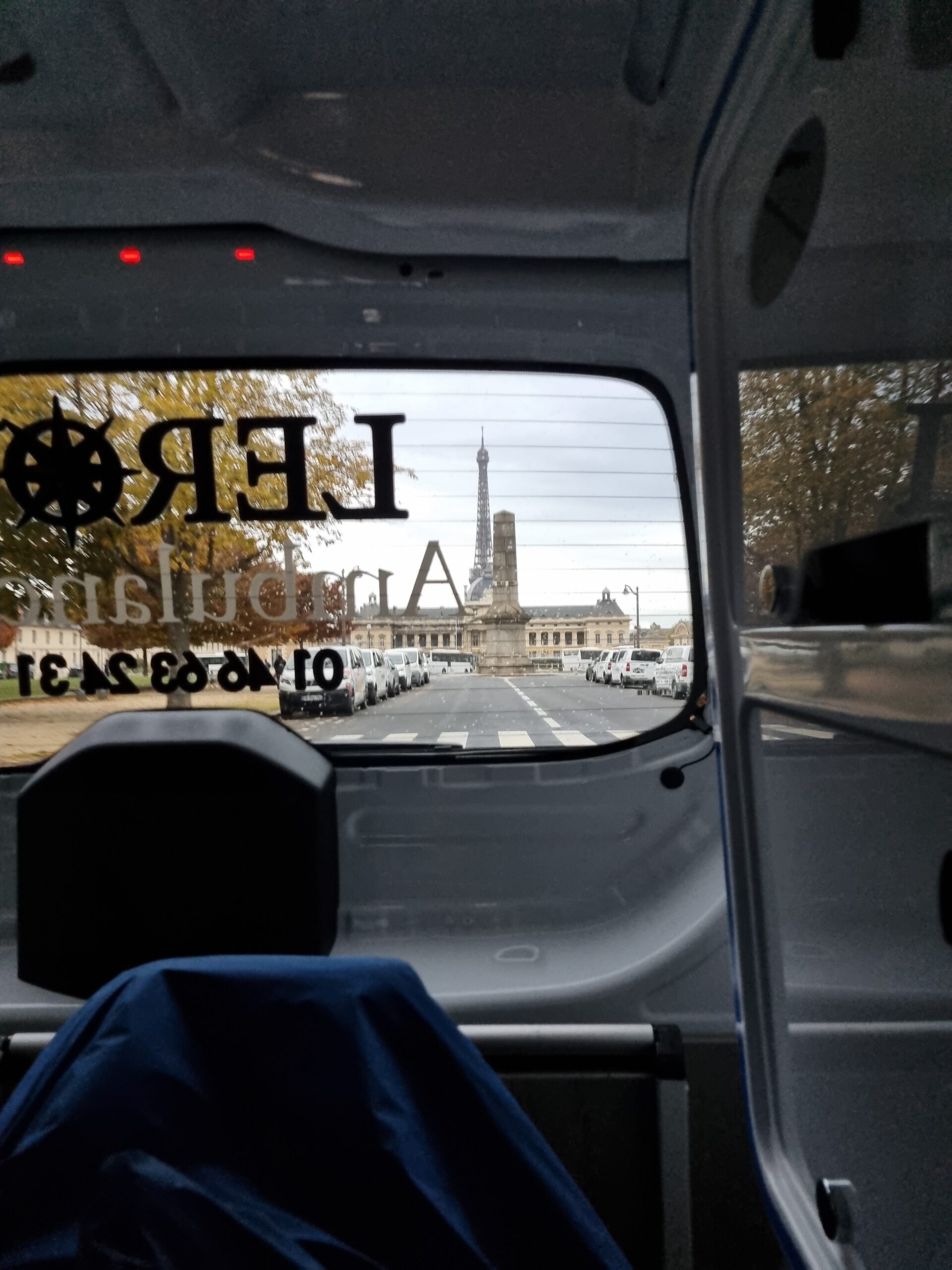 Om 7 uur komen ambulancebroeders Anne ophalen met een brancard en gaan we met de ambulance naar een gerenommeerd hartcentrum in Parijs. Daar wordt een echo gemaakt van het hart. De dokter legt uit dat deze echo hetzelfde beeld laat zien als de vorige keer. Er is geen verklaring te vinden in de echo voor de extreem hoge troponine waarde in het bloed. Het hart ziet er redelijk goed uit, hij noemt het sub normaal. De werking van het hart zit aan de onderkant van de grens maar nog wel binnen de grenzen van het acceptabele. Daarna gaan we met de ambulance terug naar het ziekenhuis. We blijken vlakbij de Eiffeltoren te zijn en vanuit de ambulance maakt Anne daar een unieke foto van. Onderweg stopt de ambulance bij een ongeval en verlenen ze eerste hulp. Tegen 10 uur zijn we weer terug op onze kamer in het ziekenhuis.