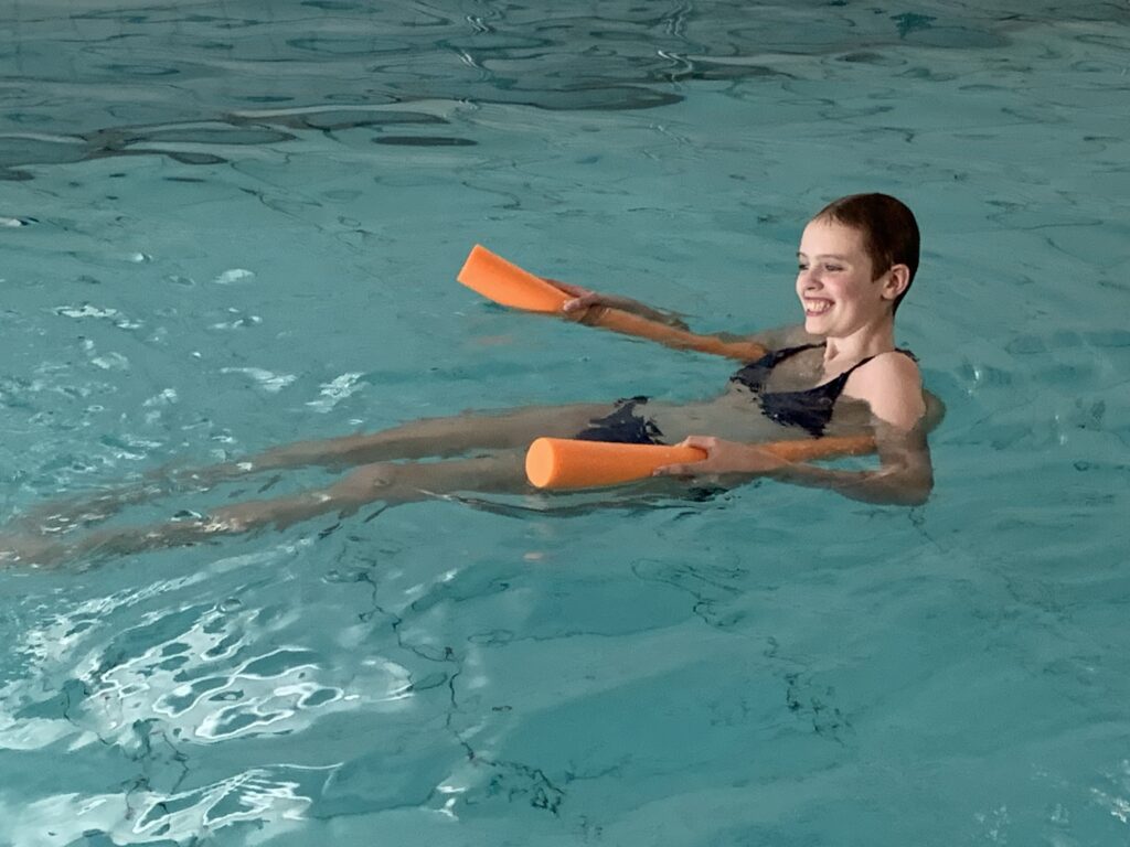 Ook al is het echt niet altijd allemaal even makkelijk voor Anne, ze doet het de afgelopen periode echt superstoer. Ze gaat nagenoeg iedere dag naar school (halve dagen), gaat 2x in de week naar de fysio en sinds afgelopen week proberen we ook 1x in de week te zwemmen in het revalidatiezwembad van het UMC waar ze dan hydrotherapie krijgt van de fysio van het PMC. Dat zwemmen is heel goed voor Anne maar belangrijker nog is dat ze er enorm van geniet en dat is in deze fase van heel veel waarde. Ze doet dus veel ondanks de ups en downs en dat is echt bewonderenswaardig en superfijn om te zien.