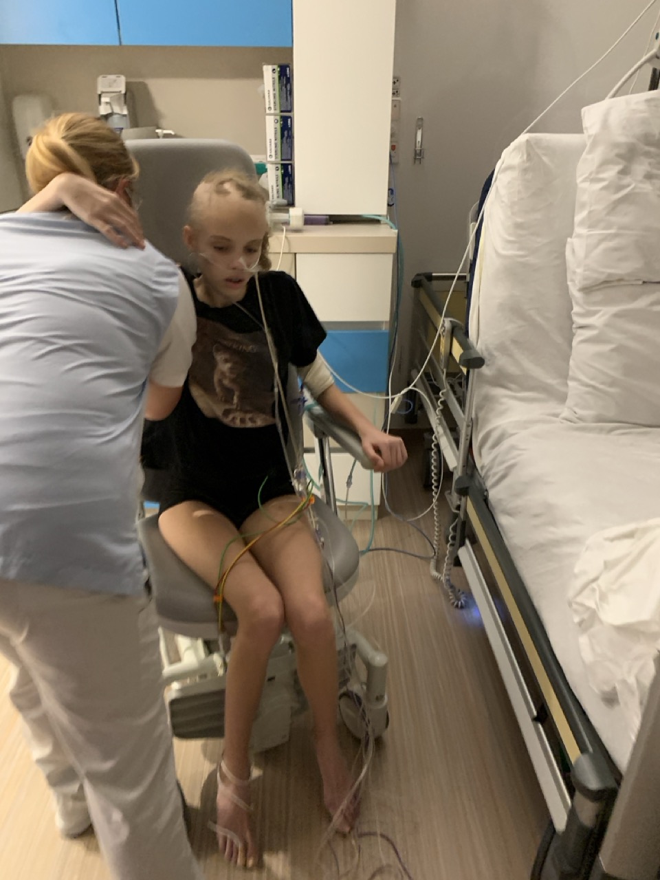 Anne heeft vandaag in een rijdende stoel een tochtje over de afdeling gemaakt en nog leuker we hebben een nieuwe kamer gekregen. De vorige kamer had een ‘saai’ uitzicht en de zusters hadden al beloofd uit te kijken naar een mooier uitzicht. Dat is gelukt en vanmiddag is Anne verhuisd naar kamer 293 (nog steeds afdeling boomhut). Morgen mogen we dus alle kaartjes en ballonnen weer gaan ophangen.