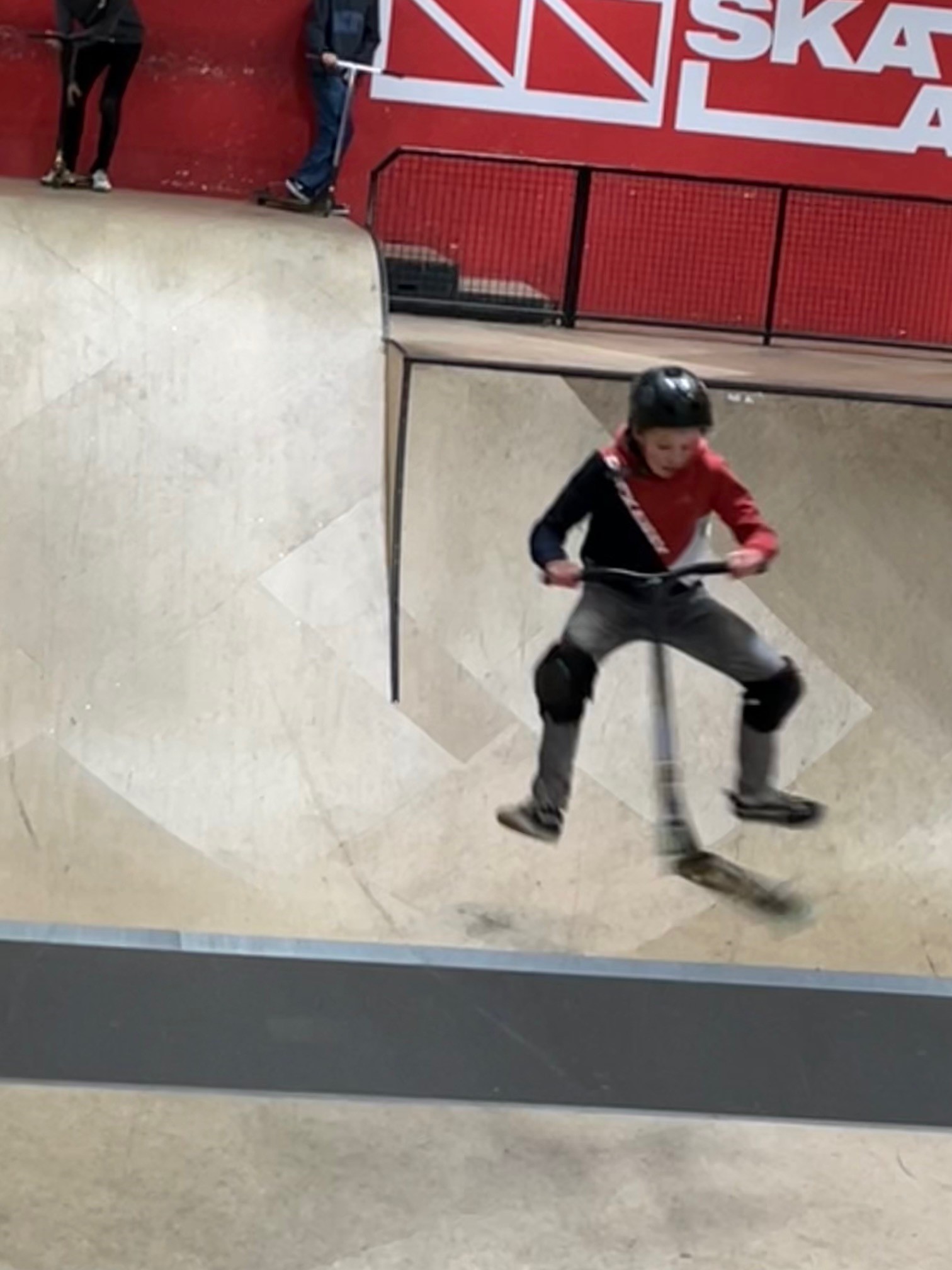 Stan vond dat wij er dan maar een ‘mannen’ dag van moesten maken en ook iets leuks moesten gaan doen. Wij zijn vanmiddag naar het overdekte skatepark in Rotterdam geweest. Voor Stan de gelegenheid om weer nieuwe trucks te leren met zijn step en voor mij leuk om te zien welke stappen hij heeft gemaakt.