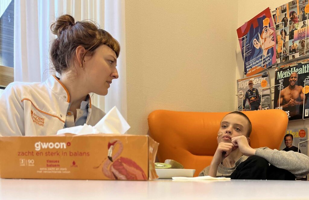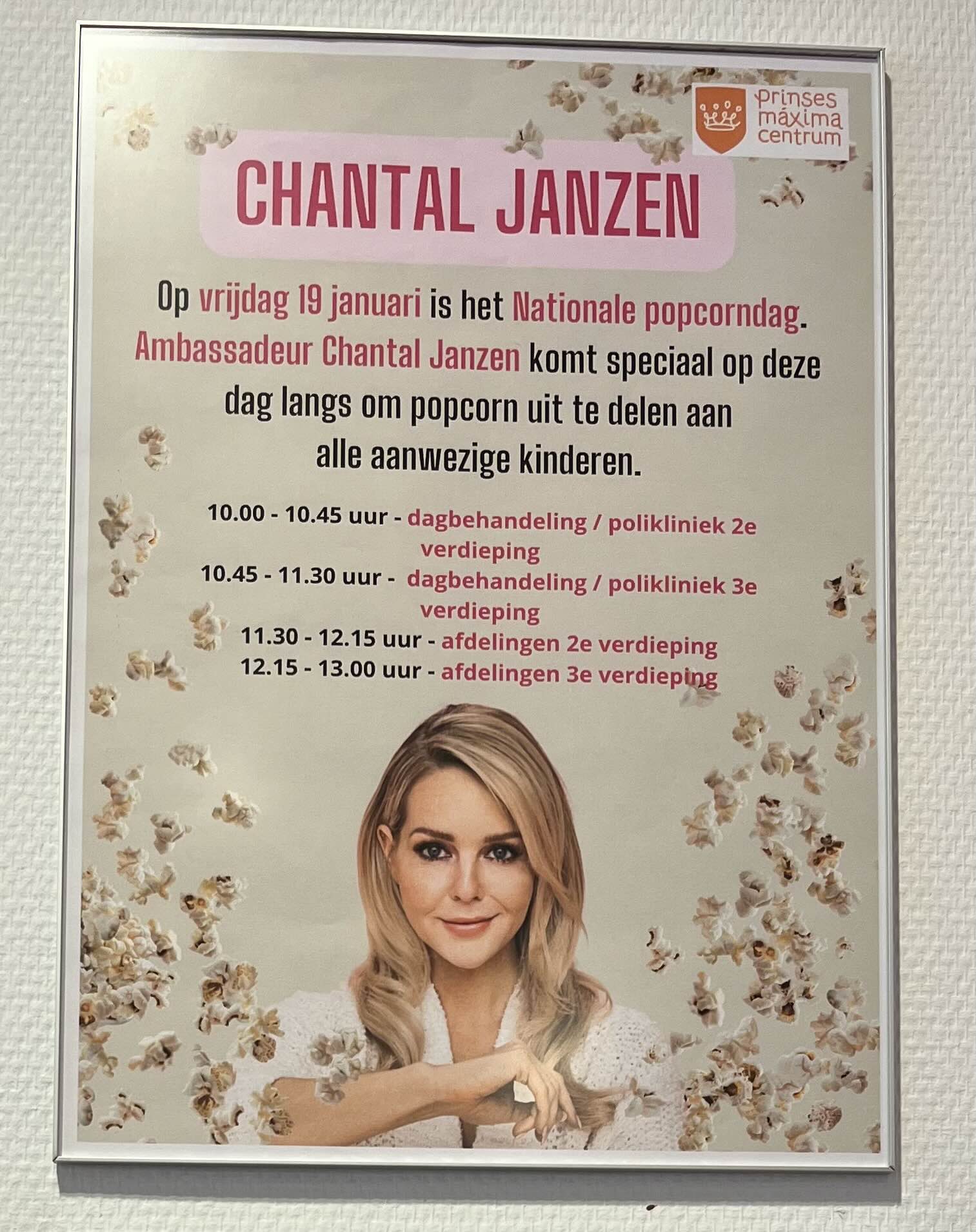 Vanuit het UMC gaan we met de auto naar het PMC en melden ons aan bij de balie op de 2e verdieping. We zijn drie kwartier te vroeg dus moeten even wachten. Het blijkt vandaag nationale popcorndag te zijn en daarom is ambassadeur Chantal Janzen vandaag aanwezig om alle kinderen persoonlijk een zak popcorn te overhandigen. Anne kan het niet zoveel interesseren maar Anita begon zich als een onrustige fan te gedragen. Uiteindelijk hebben we allemaal Chantal gezien maar vooral Anita was daar nogal enthousiast over 😊 Tijdens het wachten komt een bekende verpleegkundige van het VAS-team nog met Anne praten. Een hele aardige vrouw. Anne zit er niet altijd op te wachten maar vandaag was het echt een gezellig en mooi gesprek. Het ging over bakken, taarten maken en dat soort gedeelde interesses en dat was mooi om te zien. Ze kwam Anne ook nog bedanken voor de mooie kerstkaart. We hadden dit jaar maar 1 kaart gestuurd naar afdeling op de 2e etage van het PMC maar het lijkt wel alsof iedereen de kaart heeft gelezen. Bijna alle reacties eindigen met een voorzichtig “ik kreeg er kippenvel van” en daar krijg ik dan weer kippenvel van. Tijdens het wachten komt pedagogisch medewerker Amy ook al bij ons zitten om gewoon gezellig te praten met Anne. Klikt gelukkig weer goed en ondanks de moeheid wordt er toch vrolijk gekletst.