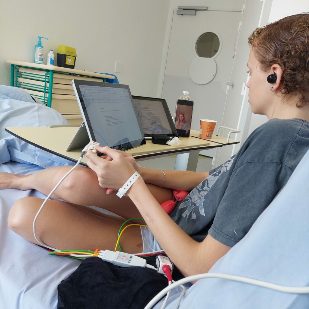 De pijndokters kwamen ook nog langs en Anne gaf aan dat het beter ging. De artsen willen wel dat Anne wat vaker uit bed op de stoel gaat zitten, al is het maar 5 minuten. Anne deed dat meteen nadat de dokter de kamer verlieten. Er kwam toen nog een mevrouw langs met de vraag of Anne misschien behoefte had aan wat relax ideeën maar Anne haar meteen weg. Geen behoefte aan. Wel komt morgen een psychologe met Anne praten.
