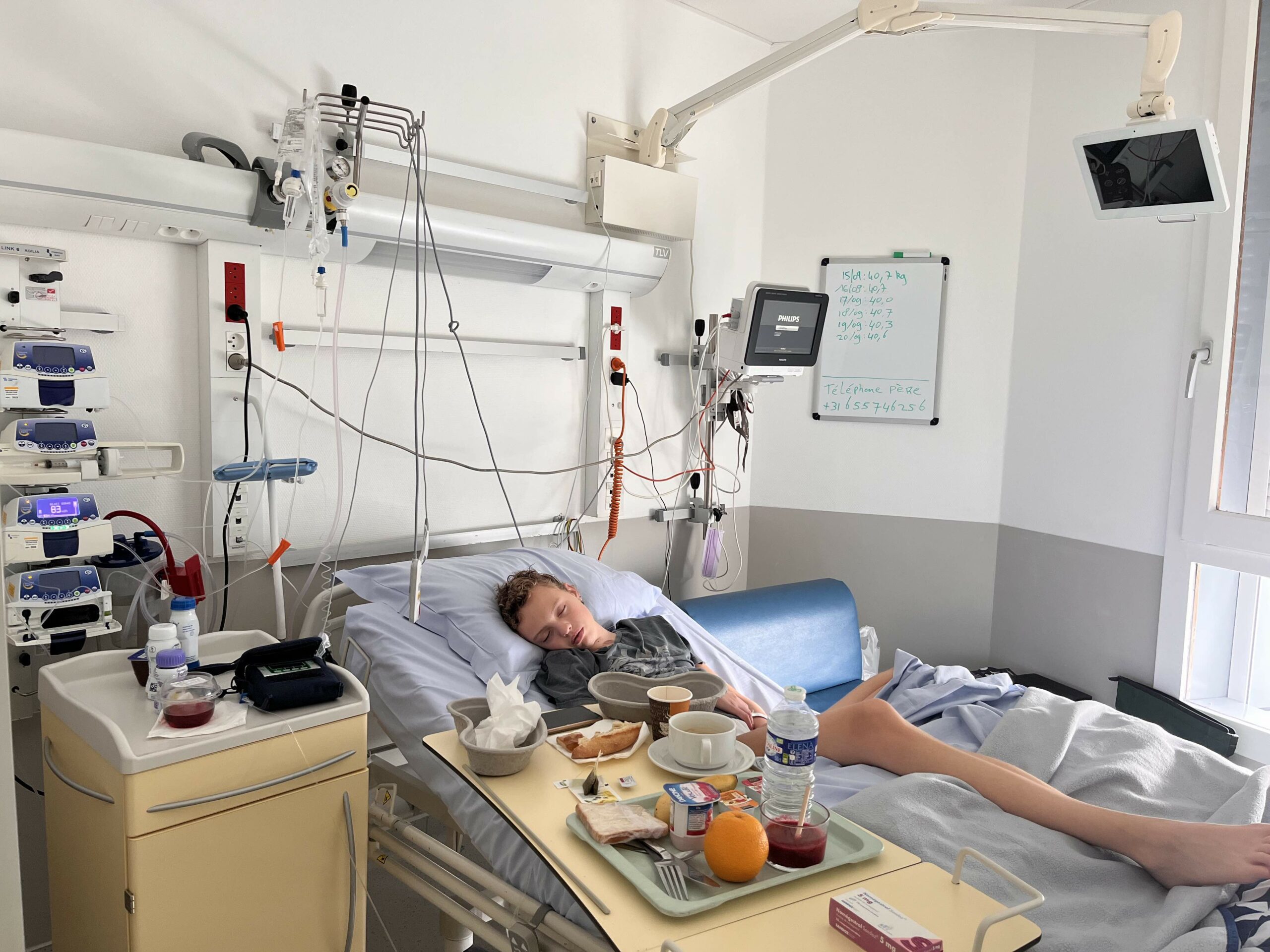 Al met al best wel een waardeloze dag maar tegelijkertijd zijn er ook geen hele vervelende dingen voorgevallen en eerlijk is eerlijk, zo’n chemo traject is zonder complicaties al pittig en omdat de weerstand heel laag is komt een complicerende factor zoals koorts al snel om de hoek kijken. Daar hoeven we ons ook niet meteen extreem veel zorgen over te maken maar het is natuurlijk wel heel vervelend voor Anne. Wat dat betreft hoop ik dat de bloedtransfusie morgen gaat zorgen voor een extra boost. En dan zou het helemaal mooi zijn als de misselijkheid weg is zodat er ook weer wat gegeten en gedronken kan worden. Dat is morgen, nu eerst een nacht goed slapen.