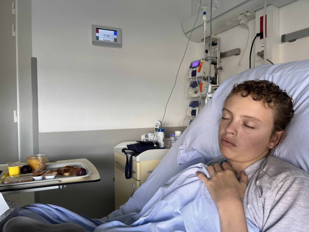Toen ik vanochtend bij het ziekenhuis aankwam zag Anne er best goed uit vond ik. Dokter Minard had daar een iets ander gevoel bij. Ze had Anne denk ik al ruim een week niet gezien en ze vond Anne er flets en erg vermoeid uitzien. Misschien had ze wel gelijk want na het gesprek kon Anne haar ogen niet meer open houden. Ze werd misselijk en heel moe. Ik heb de afgelopen dagen geloof ik het woord extreem al een paar keer gebruikt. Ik denk dat het gisteren extreem moe in het kwadraat was en ik denk dat je voor vandaag wel kunt zeggen extreem moe tot de 4e macht. Na het gesprek met dokter Minard viel Anne in slaap en om 3 uur werd ze wakker omdat de dokter met de diëtist kwam praten. Anne krijgt geen hap naar binnen en dat kunnen we niet volhouden dus wordt er gesproken over een voedingssonde via de neus. Daar wordt Anne niet blij van, ze kent de sonde nog maar al te goed en heeft daar geen fijne herinneringen aan. De dokter geeft aan dat ze er nog even over mag nadenken en dat ze dan morgenvroeg het antwoord aan de dokter moet geven. Dat is lief en verstandig van de dokter maar er is geen keuze. Vanavond bij het avondeten heeft Anne 2 muizenhapjes rijst gegeten en dat kostte enorm veel moeite. Ze werd er verdrietig van en zei toen “daarom wil ik die sonde wel, hoef ik niet zoveel moeite te doen om te eten, ik wil niet eten, ik wil slapen, snap je?!”. Dus de beslissing is wel genomen, vanaf morgen zal Anne voeding gaan krijgen via de sonde en ook al is dat niet fijn, het is wel heel verstandig want Anne zwakt steeds iets verder af (hoewel het gewicht, waarschijnlijk mede door vocht toediening mooi stabiel) en als ze sterker kan worden en weer energie kan krijgen door de sonde dan lijkt mij dat een goed plan.