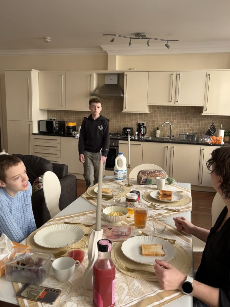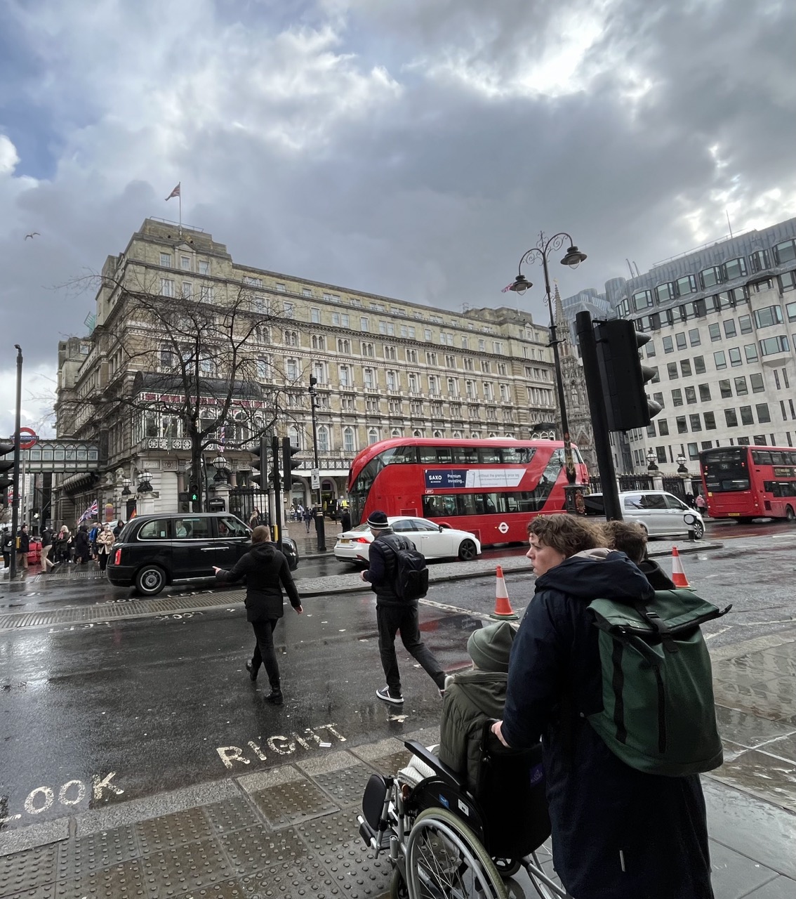 Na een niet al te beste nacht stond Anne vanochtend eigenlijk best redelijk goed op. Ze heeft wel overal pijn. Het matras is erg hard en comfortabel liggen lukte vannacht niet dus daar heeft ze wel echt last van maar verder is ze vrolijk en actief. In de ochtend maak ik eerst nog even een wandeling in de omgeving met Stan. Het is fris maar heerlijk weer. We lopen over Trafalgar’s square, door de wijk met alle ambassades die in werkelijk prachtige gebouwen zitten en doen nog even boodschappen voor het ontbijt. Samen met Stan maken we scrambled eggs en beginnen we samen deze dag best wel fijn.