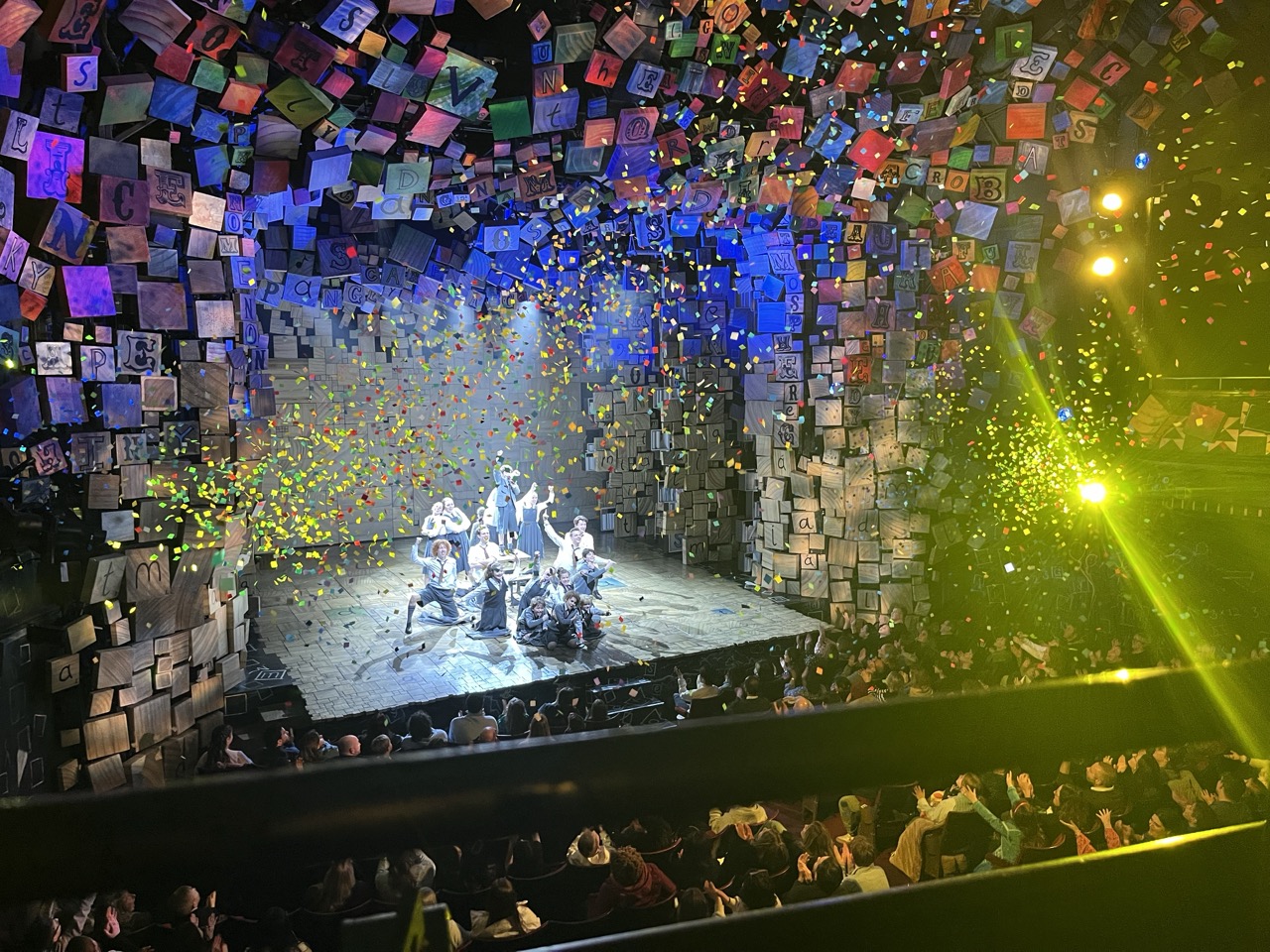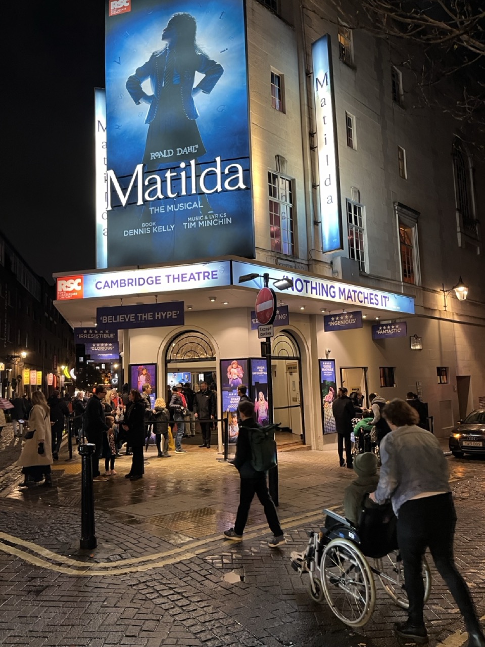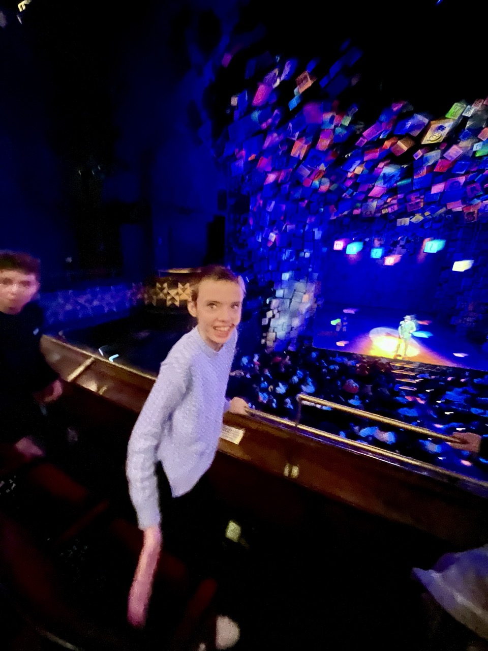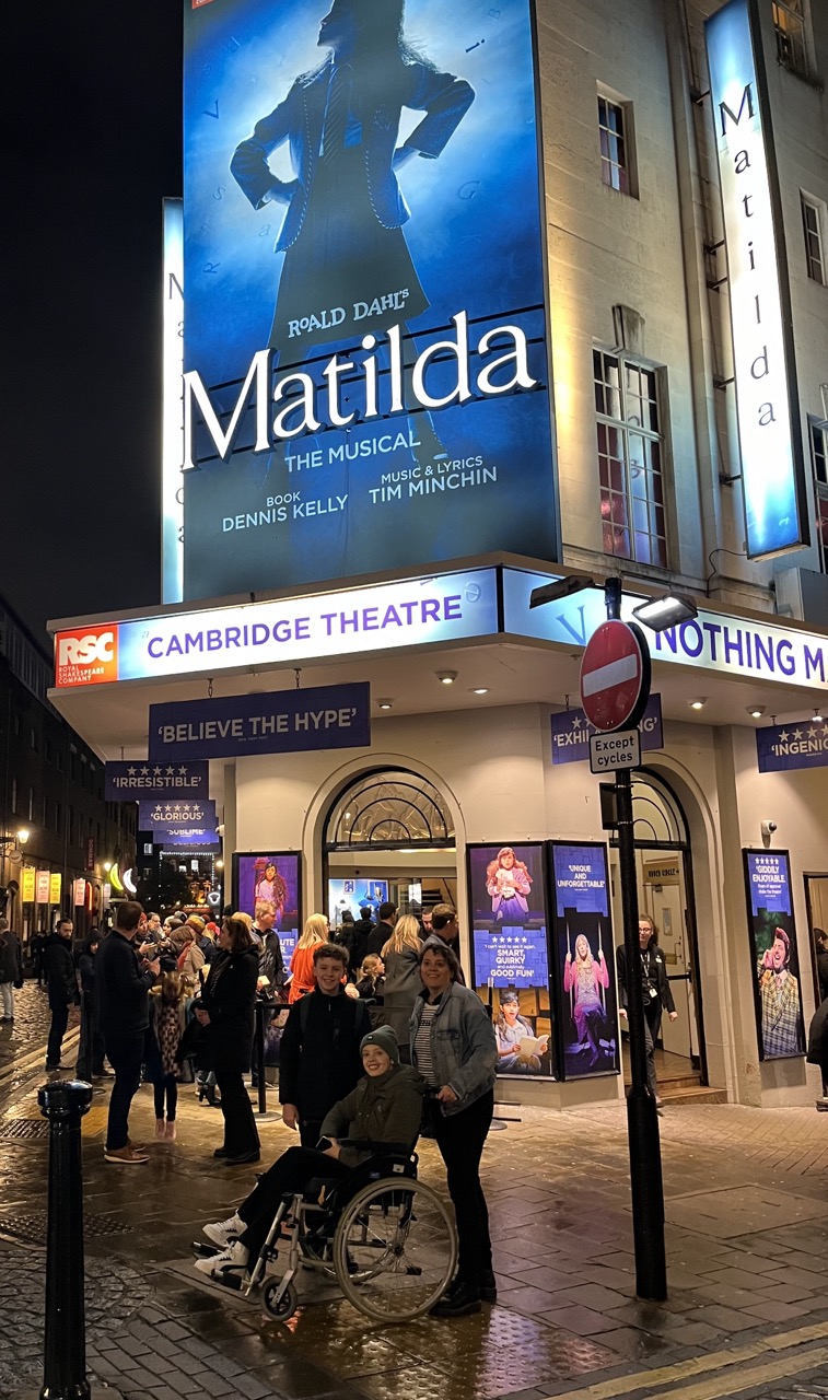 Als we allemaal weer een beetje wakker zijn hebben we niet echt trek dus besluiten lekker thuis te blijven en een broodje te eten om energie te besparen. Stan maakt heerlijke scrambled eggs en om half zeven gaan we de deur uit. Gelukkig is het droog en is het maar ongeveer 12 minuten lopen naar het theater. Als we daar aankomen schieten er meteen 3 mensen op ons af om ons te helpen. We hoeven niet in de rij te staan, we mogen meteen naar binnen en helpen ons naar onze zitplaatsen. Er is helaas geen lift, wel even balen voor Anne maar het gaat goed. We zitten op een prachtige plek, vooraan op het balkon met een perfect uitzicht op het podium. Het decor is prachtig en al snel zitten we er helemaal in. Het is wel heel moeilijk te verstaan maar uiteindelijk is het verhaal best wel goed te volgen. Anne geniet met volle teugen en dat doen wij dus ook. Na 2 uur en 40 minuten hebben we een prachtige musical gezien en een heerlijke avond met elkaar gehad. Voordat we het theater verlaten koopt Anne nog een klein aandenken aan de musical, leuk! Het is gelukkig nog steeds droog en met een kwartiertje zijn we weer terug in ons appartement. Al met al best wel een geslaagde 1e dag Londen achter de rug.