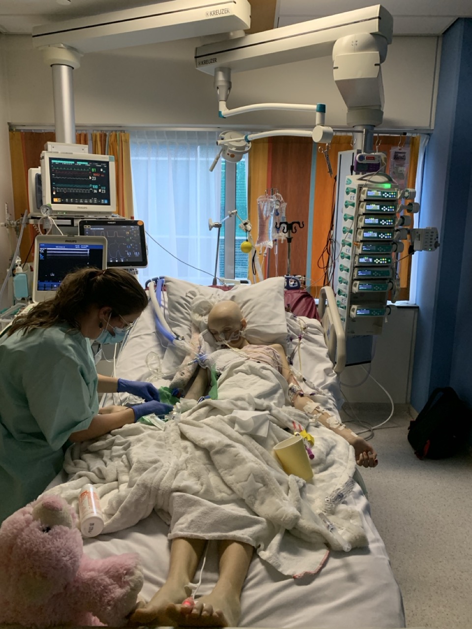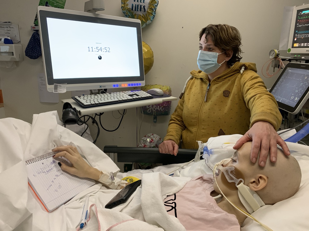 Anne heeft een goede nacht gehad. Anita en ik zijn vanochtend rond 10 uur naar het ziekenhuis gegaan terwijl Stan nog lekker lag te slapen. Anne kreeg vandaag een nieuw (nog beter) bed en matras en ook een nieuwe grotere kamer op de IC met daglicht. Dat is natuurlijk wel fijn. De verhuizing ging best goed, Anne heeft zelfs even op de stoel gezeten. Ze is wel erg zwak en flink afgevallen. Daarna kwam de (kno) arts met ons praten over het plaatsen van de canule en het hele verhaal er omheen. Gezien de situatie wil hij het liefst z.s.m. de canule geplaatst hebben. Het is een operatie en hij wil het liefst dat de wond genezen is voor het einde van de week, het moment waarop Anne vermoedelijk qua weerstand op het dieptepunt zal zitten. Ze hebben Anne op de spoedlijst voor morgen gezet maar dat is nog geen garantie dat het morgen ook gaat gebeuren (we hopen allemaal van wel want het zal voor Anne een stuk comfortabeler zijn).