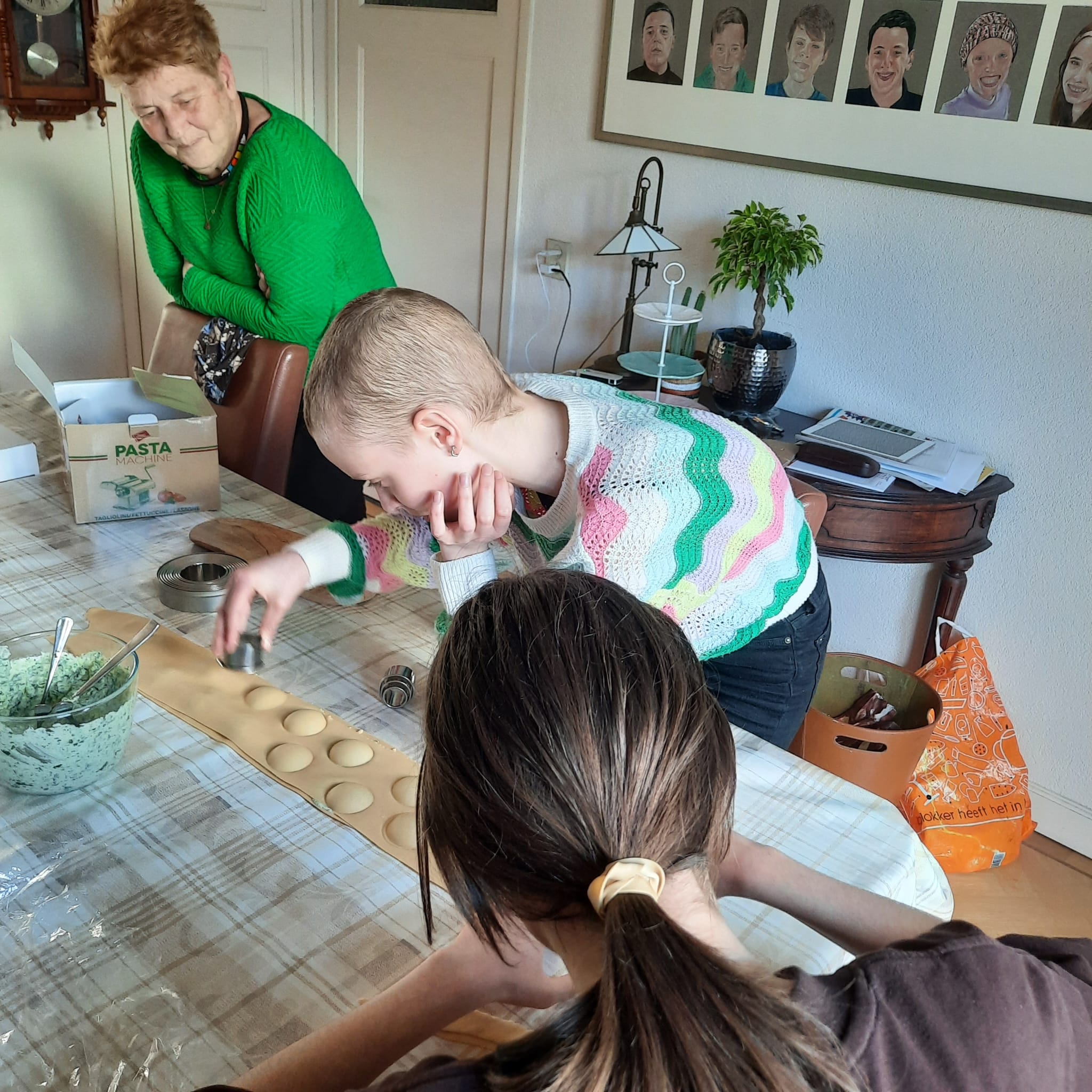 Met Anne gaat het over het algemeen gelukkig heel goed. Ze heeft duidelijk meer energie en zin om leuke dingen te doen. Het is deze week en volgende week vakantie maar is ze is al aardig bezig geweest. Afgelopen zaterdag 2 verjaardagsfeestjes waarbij ze samen met Eva een prachtige taart voor Christian heeft gemaakt, dinsdag heeft ze samen met Eva en oma pasta gemaakt voor de familie, woensdag met Ilva gezellig gaan shoppen en eten in Utrecht (sinds lange tijd een spontane actie, heerlijk!), donderdag op de vrijmarkt in Alphen spulletjes verkopen en vandaag de hele dag samen met Stan creatief bezig geweest dus dat is fantastisch. Er zit echter ook een keerzijde aan; Anne heeft de laatste tijd veel meer pijn, soms zelfs echt heftige pijn en daarbij moeite met ademhalen. Dat is niet alleen heel vervelend (slaapt daardoor ook slecht) maar het maakt Anne ook angstig, bang dat de verkeerde cellen groeien en de veroorzaker zijn van de pijn. We proberen het nu wat rustiger aan te doen om te kijken of dat helpt en volgende week hebben we opnieuw contact met het pijnteam van het PMC om te kijken wat er eventueel nodig is en gedaan kan worden.