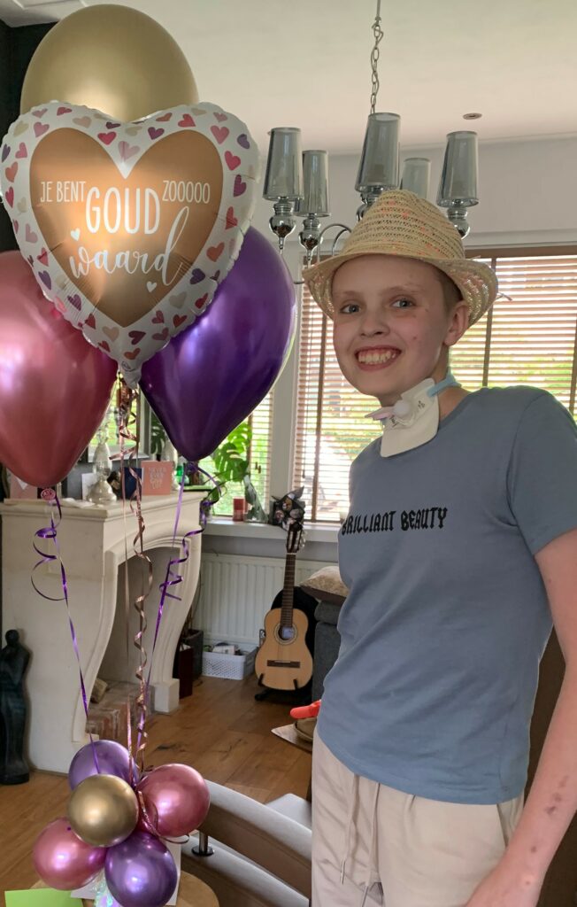 Vorige week donderdag is de maagsonde er eindelijk uitgegaan. Superfijn natuurlijk en een veel mooier gezicht. Wel moeten nu alle medicijnen geslikt worden en dat was in het begin nog best lastig maar dat gelukkig gaat steeds beter. Het eten is wel een probleem. Afgelopen dagen de hele dag misselijk en overgeven en geen trek. Daarom donderdag besloten om toch weer aan de dexamethason te gaan om het voor Anne wat comfortabeler te maken. Qua eten zijn we nu een beetje aan zoeken naar wat lekker en gezond is. Daarnaast heeft ze nu ook flesjes met calorie- eiwitrijk voedsel (drankjes). Niet dat het lekker is maar wel absoluut noodzakelijk op dit moment.