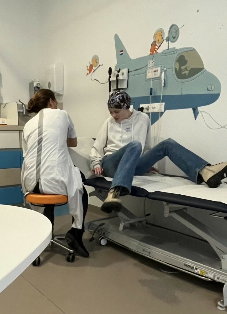 Vandaag moest Anne weer naar het PMC voor de start van opnieuw een chemokuur van 12 dagen. Dit is alweer de 7e chemokuur nadat de ziekte is teruggekomen. Niet iets waar Anne naar uitkijkt en dat is begrijpelijk. Anne heeft eerst uitgeslapen omdat ze erg moe was en ook slecht had geslapen door pijn en piekeren. School daarom maar even gelaten voor wat het is.