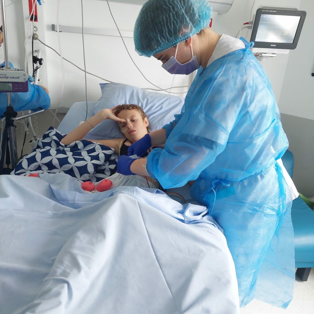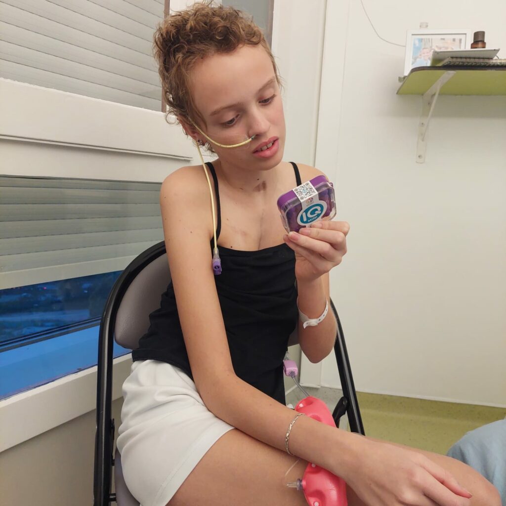 Vannacht had Anne koorts, was vanmorgen nog 38.2 maar bleek aan het begin van de middag gelukkig naar 37.7 gezakt te zijn. De dokter gaf aan dat ze zwaardere voeding gaan geven zodat Anne meer energie krijgt. Deze nieuwe voeding is vanmiddag aangekoppeld nadat 2 verpleegkundigen alle lijnen hadden vernieuwd en aangesloten. Ook de infuuslijn naar de PAC werd vervangen. Daar zag Anne wel een beetje tegenop omdat ze dit gingen doen zonder eerst met emla te verdoven maar gelukkig ging dat best goed. Van al dit gedoe was Anne wel erg moe geworden. Ze moest naar de wc maar daar werd ze zo naar van dat ze opnieuw moest overgeven. Gelukkig niet heel veel. Volgens Anne kwam het door de lucht op het toilet, die moeten ze ook gewoon op tijd legen. Daar is de ene verpleegkundige beter en netter in dan de andere.
