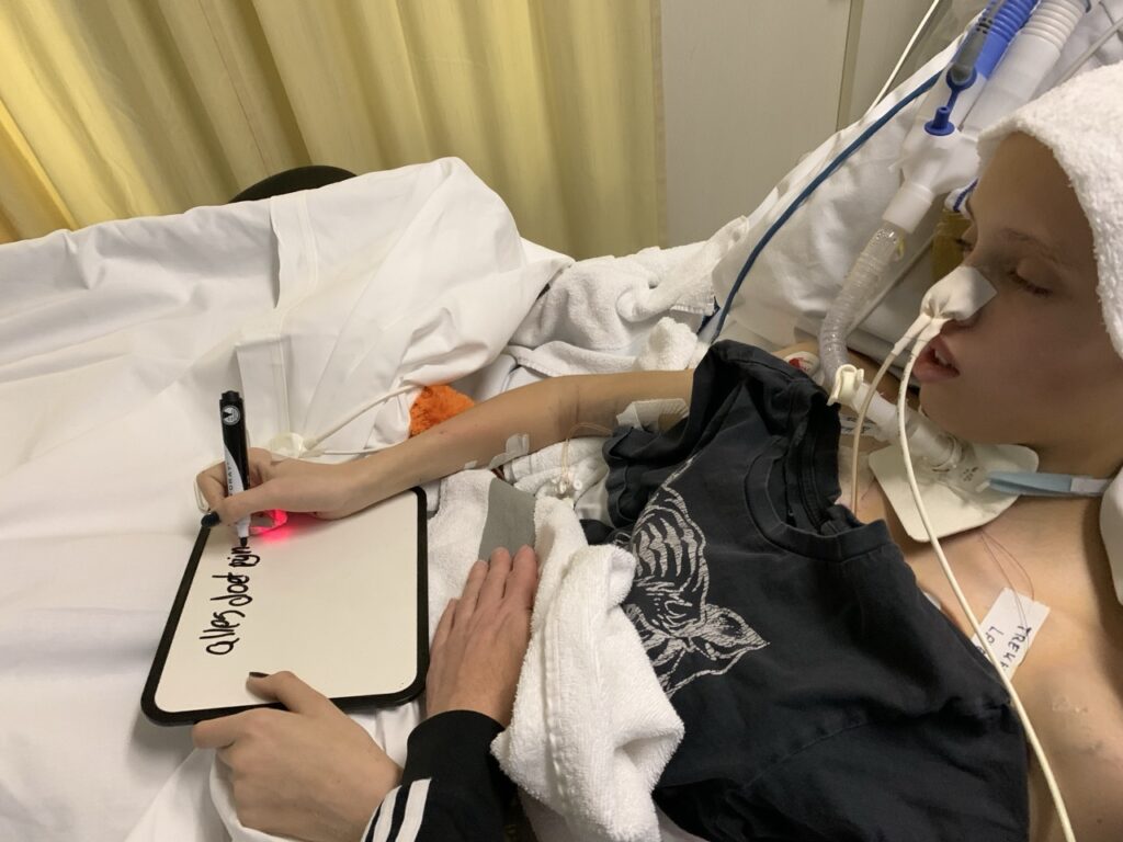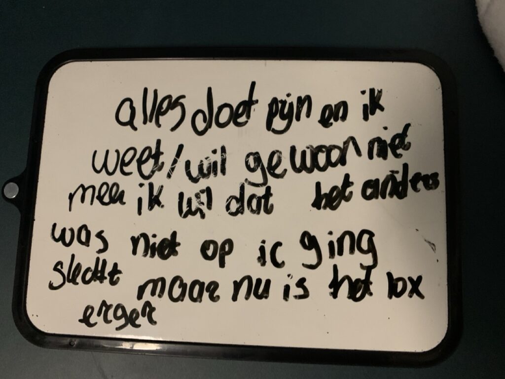 Ook vandaag heeft Anne meerdere keren opgeschreven dat ze een papegaai (zo’n triangel boven je bed waaraan je je kunt optrekken) wil. De verpleegkundigen gingen er weer achteraan maar het kon niet. Dat was niet acceptabel voor Anne (en ons), dan maar een ander bed. Er stonden op dat moment zo’n 6 mensen om haar heen en iedereen zag de lol van deze felheid en duidelijkheid wel in. Gelukkig was Anne’s favoriete verpleegkundige Roy aanwezig en hij heeft toen samen met Gertrude geregeld dat er een nieuw bed kwam met een papegaai (en een afstandsbediening voor het bed wat ook een wens/’eis’ van Anne was). Dit was natuurlijk best intensief om van het ene bed naar het andere bed te gaan maar uiteindelijk was dat wel het lichtpuntje van vandaag en heel fijn voor Anne. Met dank aan Roy en Gertrude ♥️