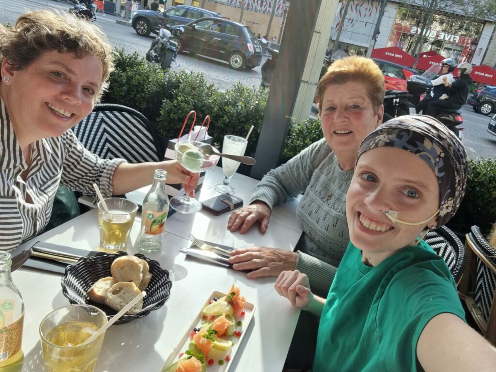 We hebben toen een heel stuk over de Champs Elysee gelopen naar Sephora, de winkel waar Anne graag naar toe wilde. Samen met Anita de winkel in waar Anne heel mooi werd opgemaakt. Toen nog een mooie kaart gekocht en neergestreken op een terras. Anne zag wat lekkers langskomen en wilde dat ook wel, maar uiteindelijk maar met ons gedeeld.