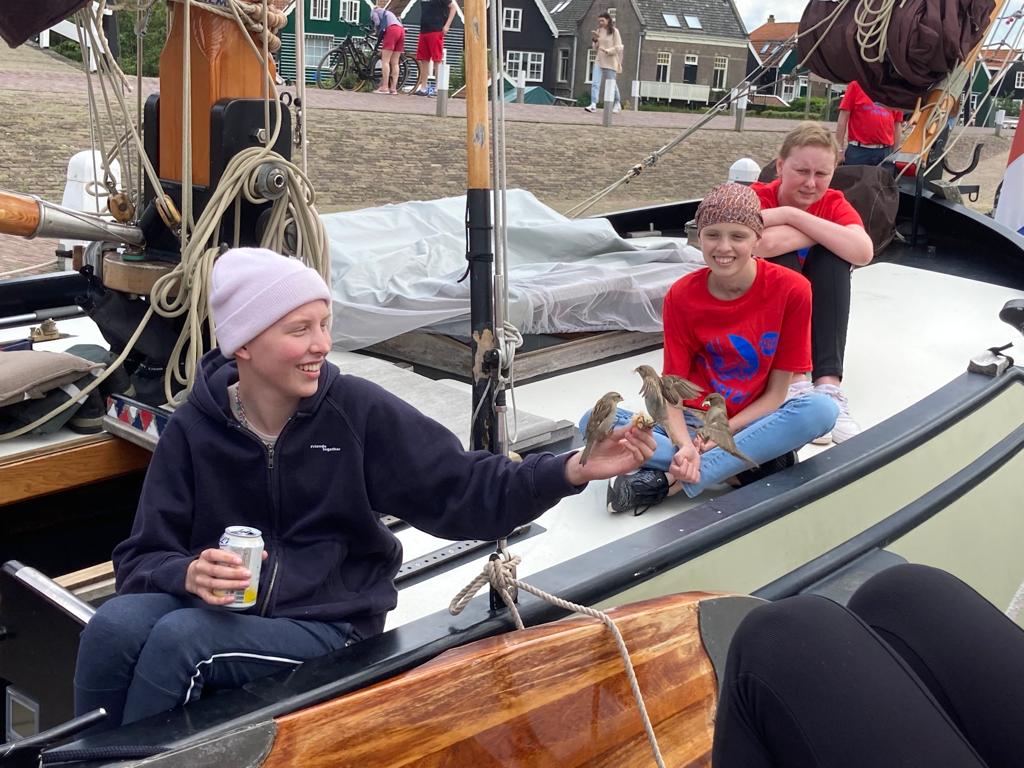 We moeten naar de 1e verdieping van het havengebouw waar alle jongeren, schippers en begeleiding aanwezig zijn. Als we Anne zien valt het meteen op hoe goed ze er uit ziet, een minder ingevallen gezicht, een kleurtje op haar gezicht (voor het eerst sinds lange tijd) en een heerlijke lach op haar gezicht en straalt een en al energie uit. Eigenlijk precies het tegenovergestelde van wat we verwacht hadden na een week van minder slapen maar we zijn er meer dan blij mee. Ze begint meteen enthousiast te vertellen en aan alles merk je dat dit een fantastische week is geweest waar best wel eens een moeilijk moment is geweest maar die vooral heel goed voor Anne is geweest. Zo blij mee en dankbaar voor, heerlijk!!
